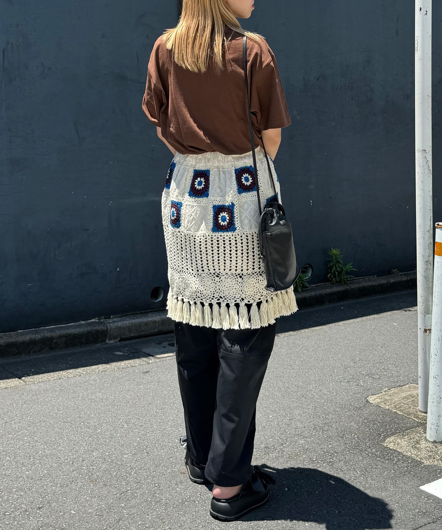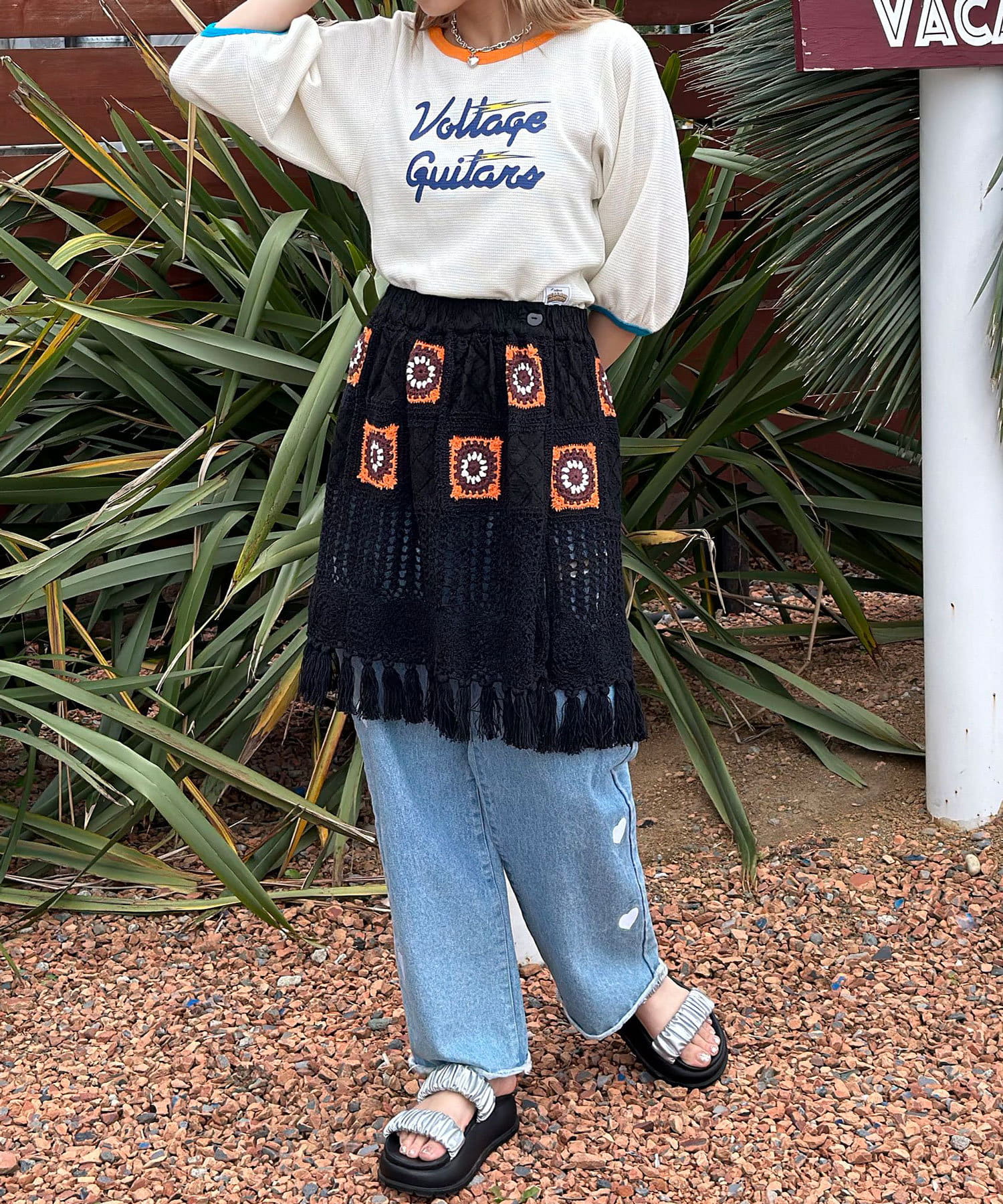 古着ライクなクロシェ編みが可愛らしい巻きスカート