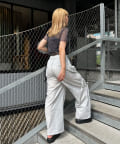 コンパクトなサイズ感なので、ワイドパンツ合わせでメリハリのあるコーデに決まります。