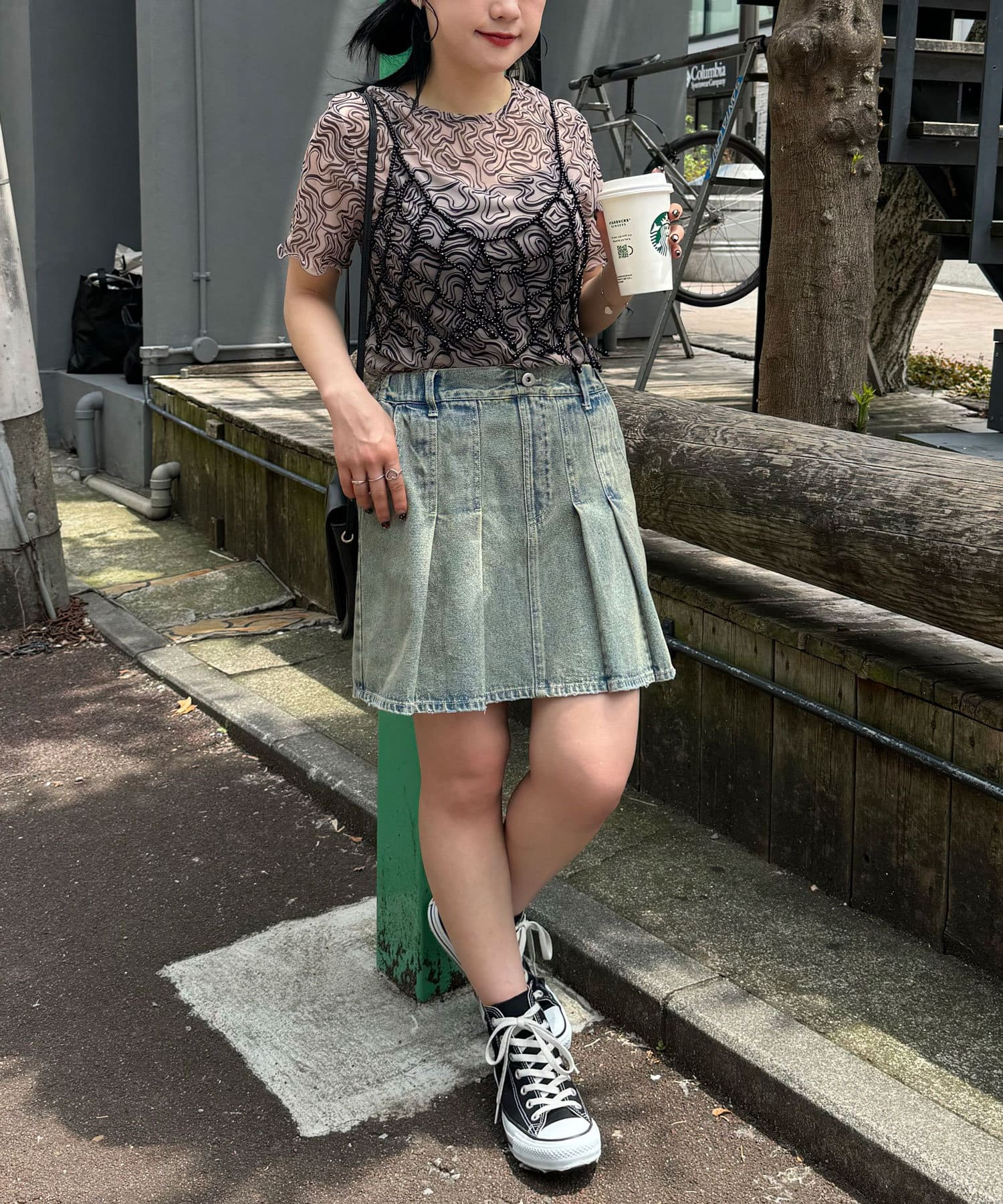 透け感のあるシアー素材が様々なスタイリングに馴染みます。