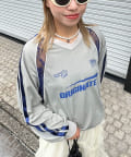 フットボールのユニフォームやゲームシャツをモチーフにレースを加えレディライクに仕上げたトップス。