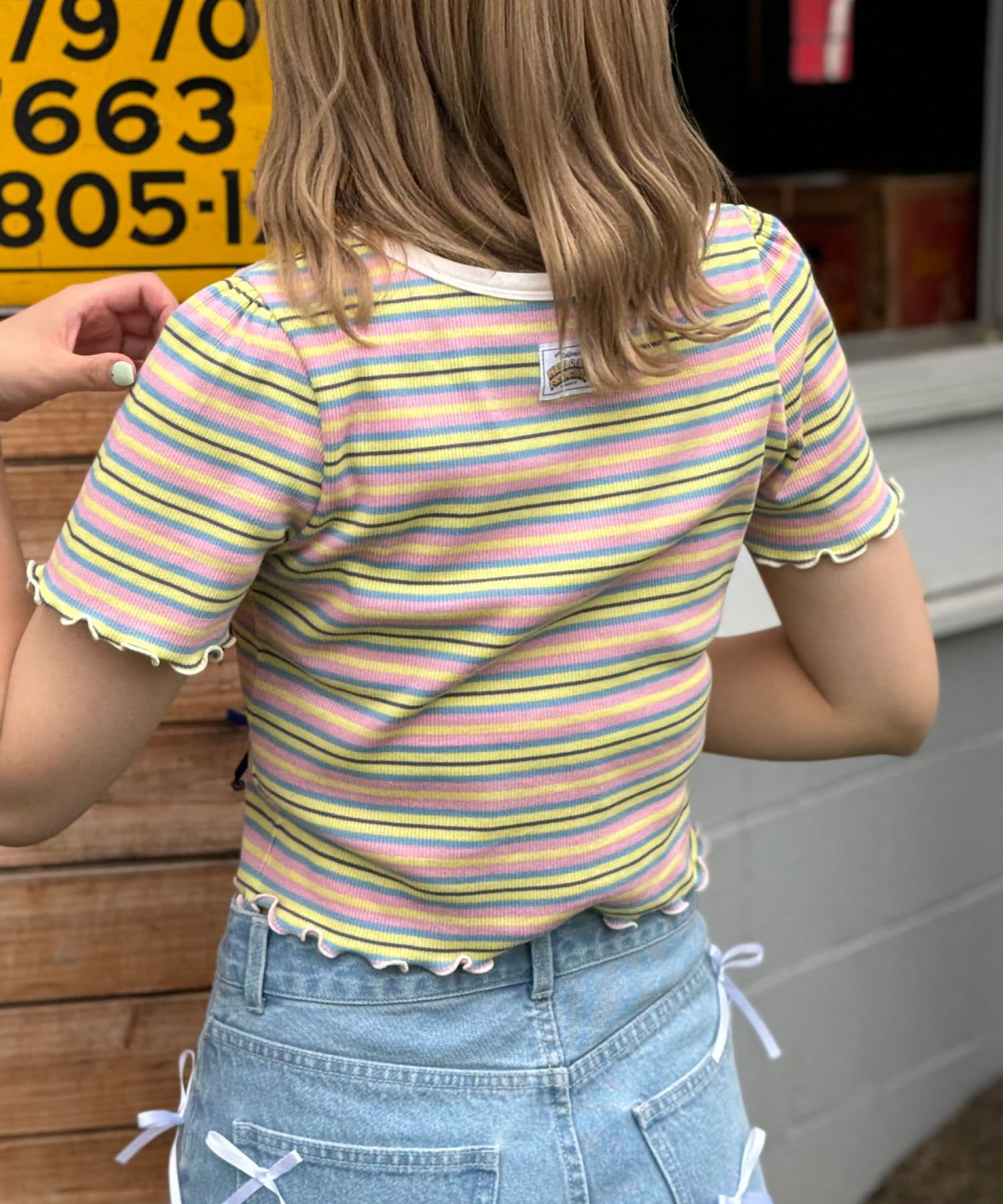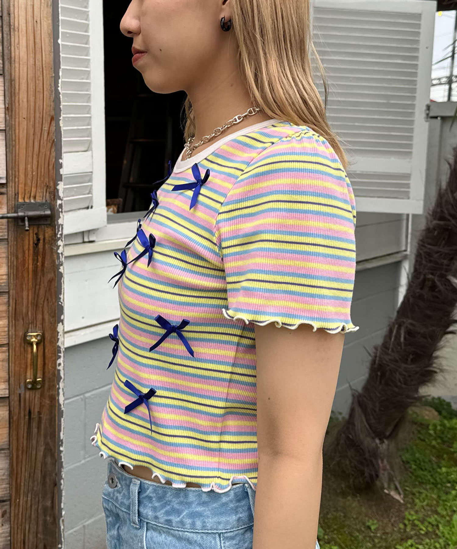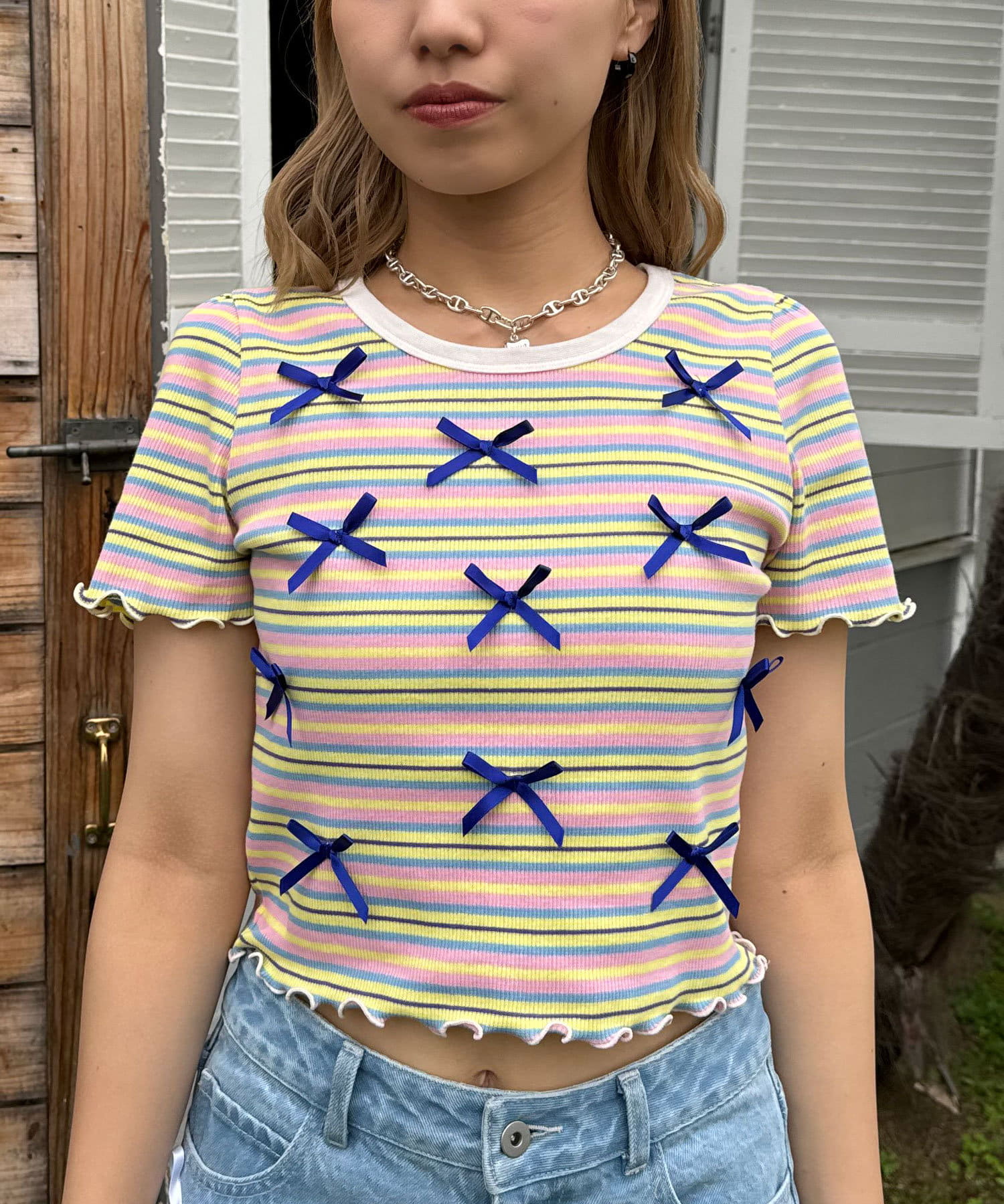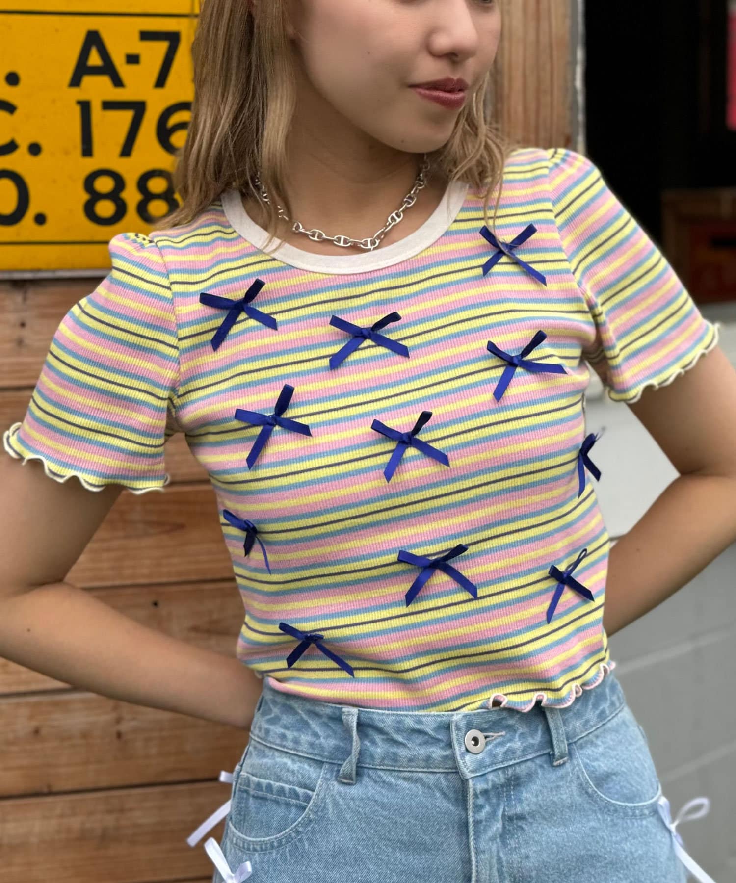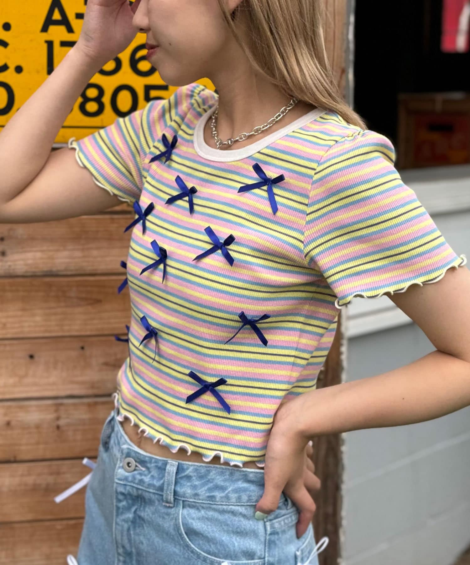 “リボン×マルチボーダー”でカジュアルガーリーが決まるTシャツ