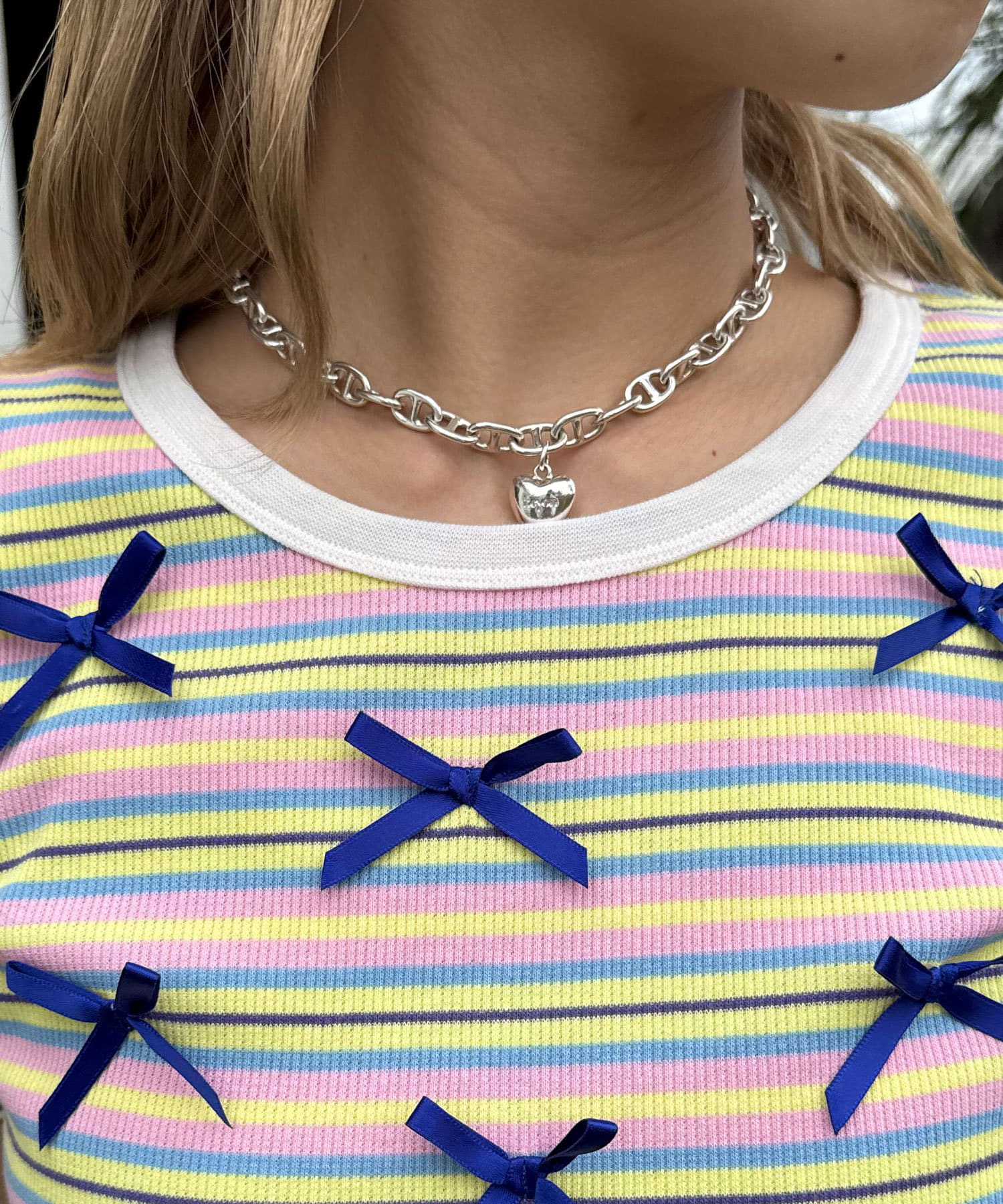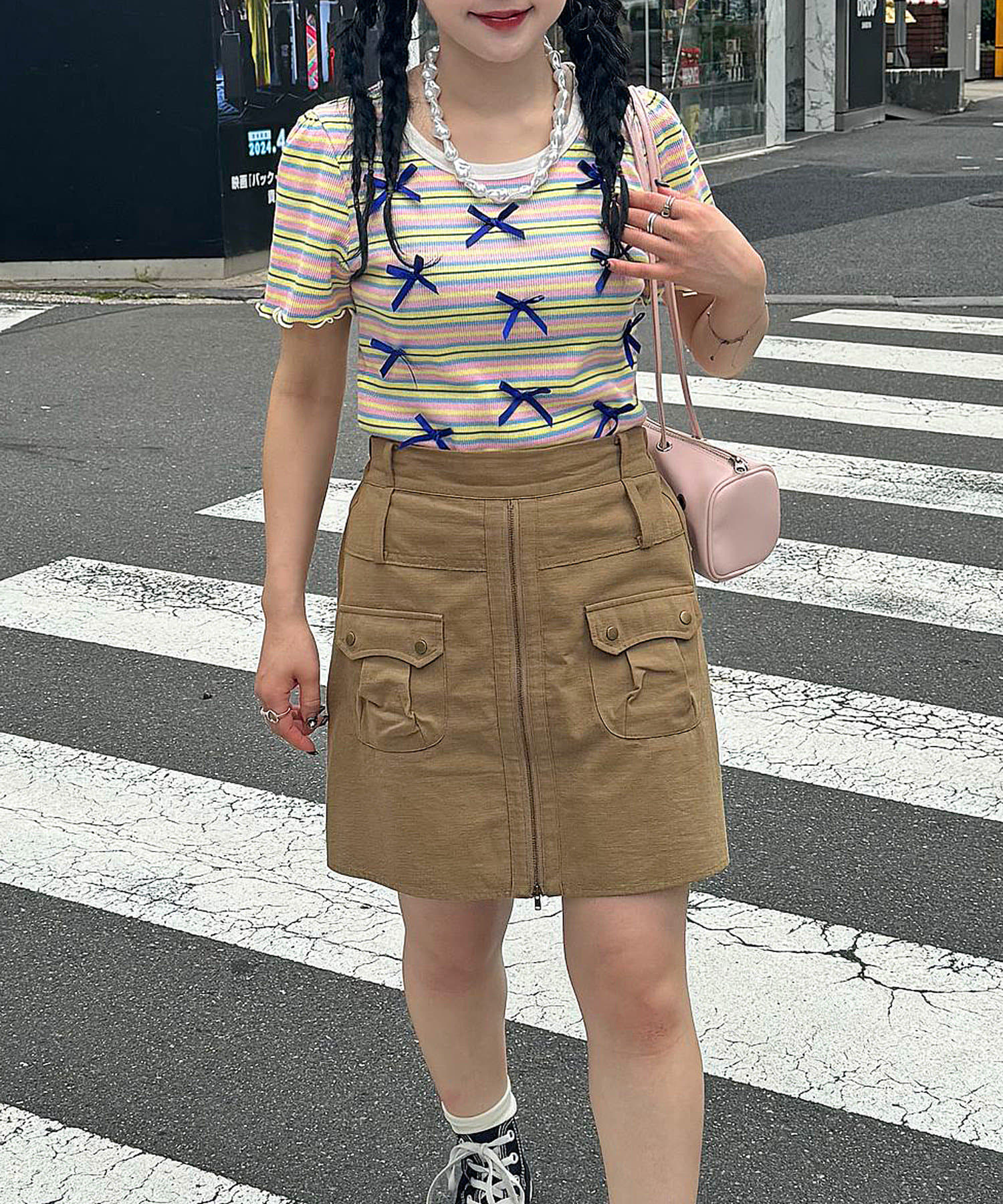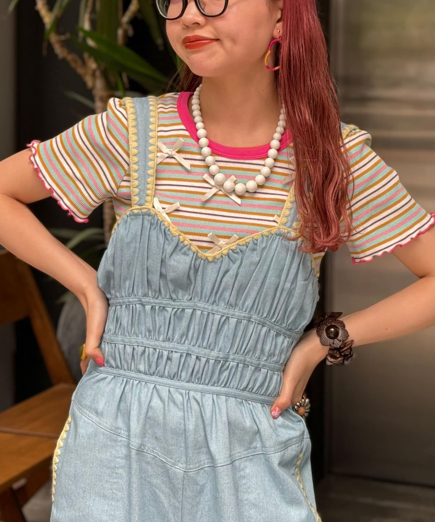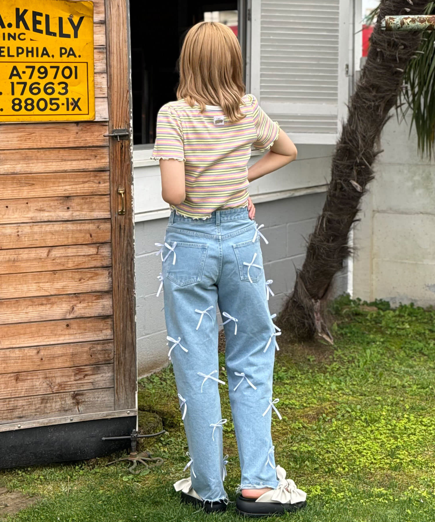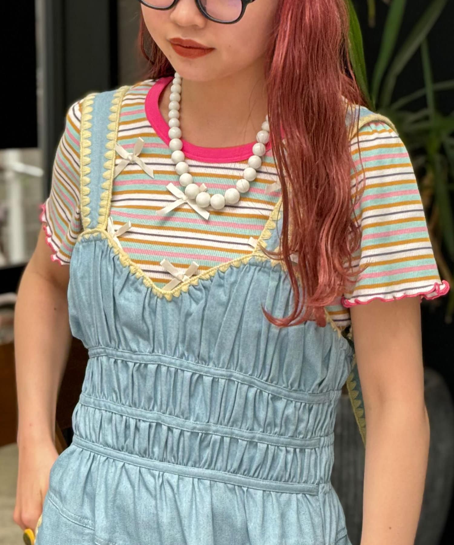 “リボン×マルチボーダー”でカジュアルガーリーが決まるTシャツ