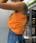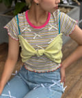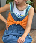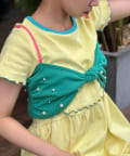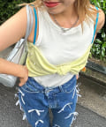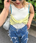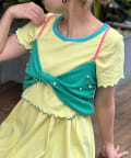 全体に散りばめられたカラフルなパールが印象的なリボンキャミソール。