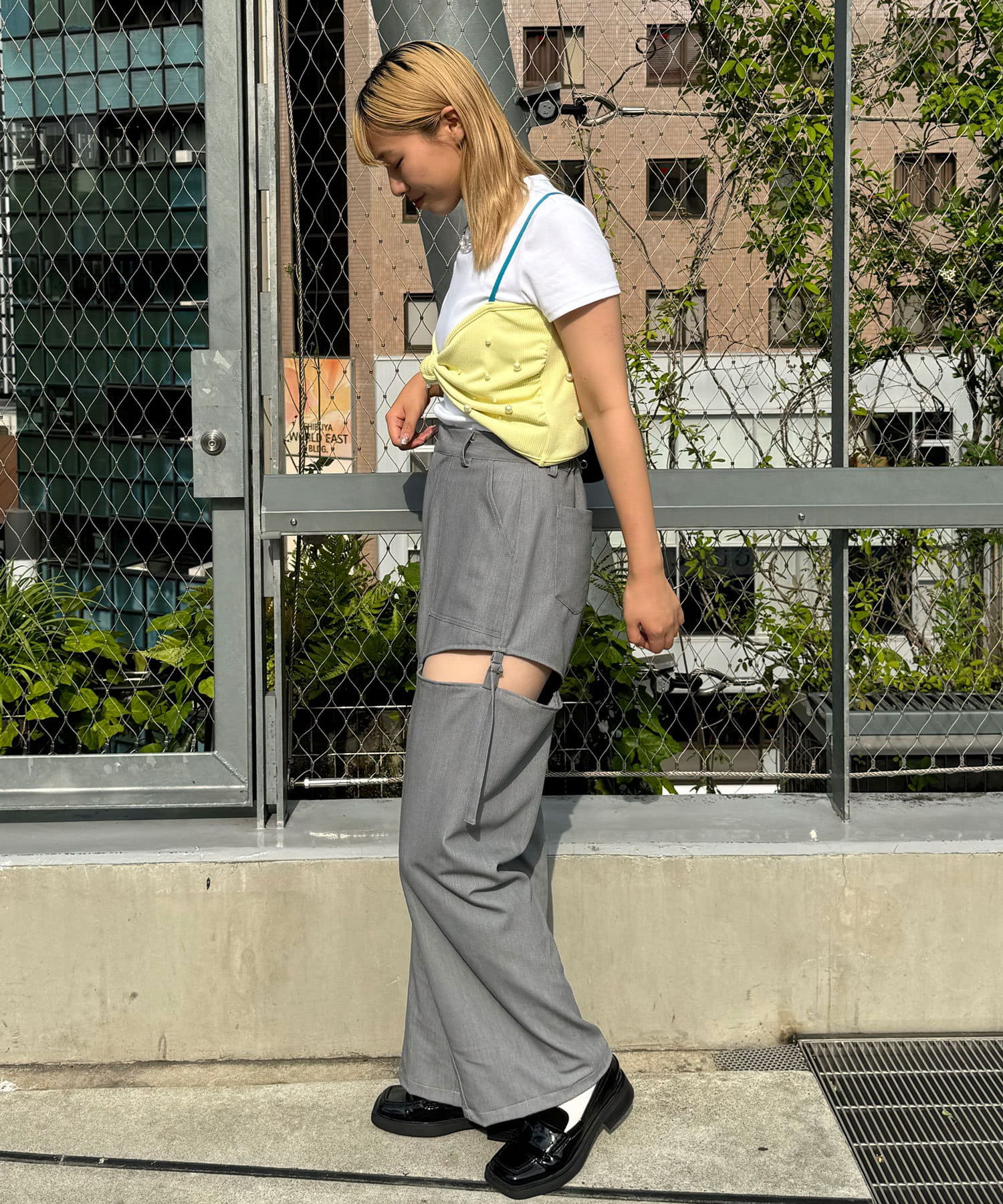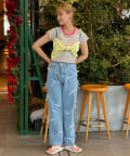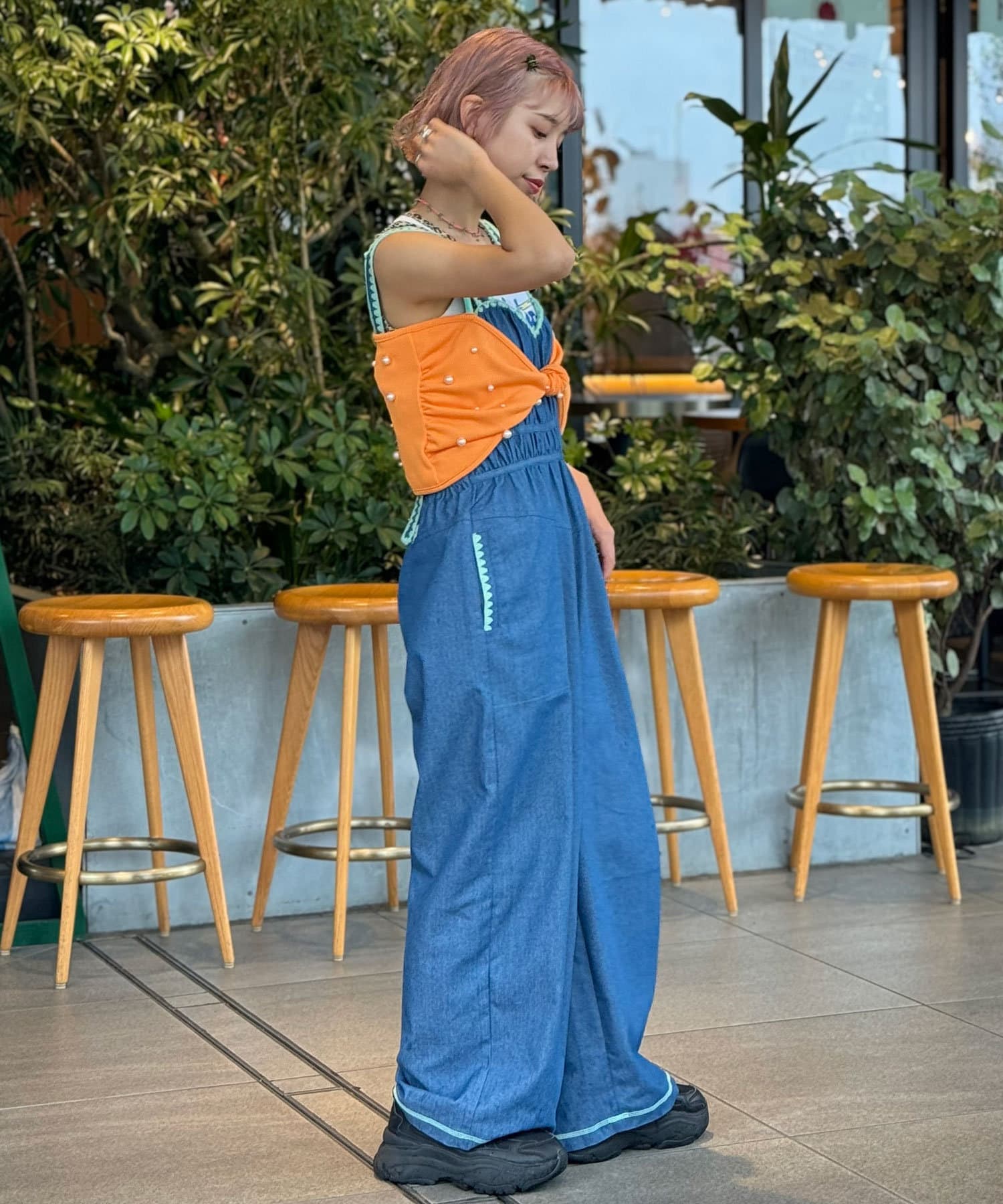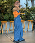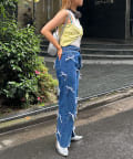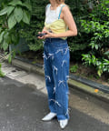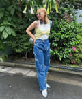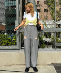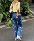 ボトムスはデニムやワイドパンツ、カーゴパンツなどのアイテムを合わせたカジュアルミックスなスタイリングがおすすめです。