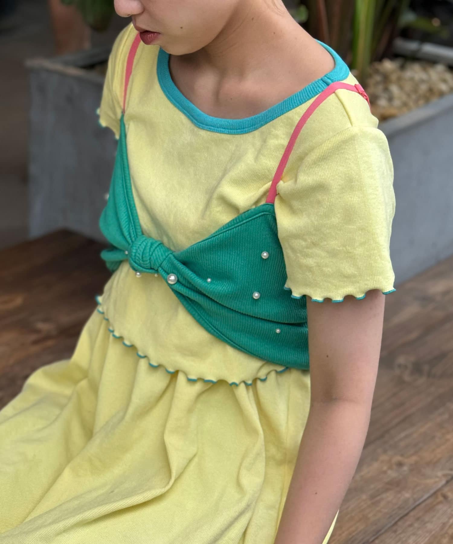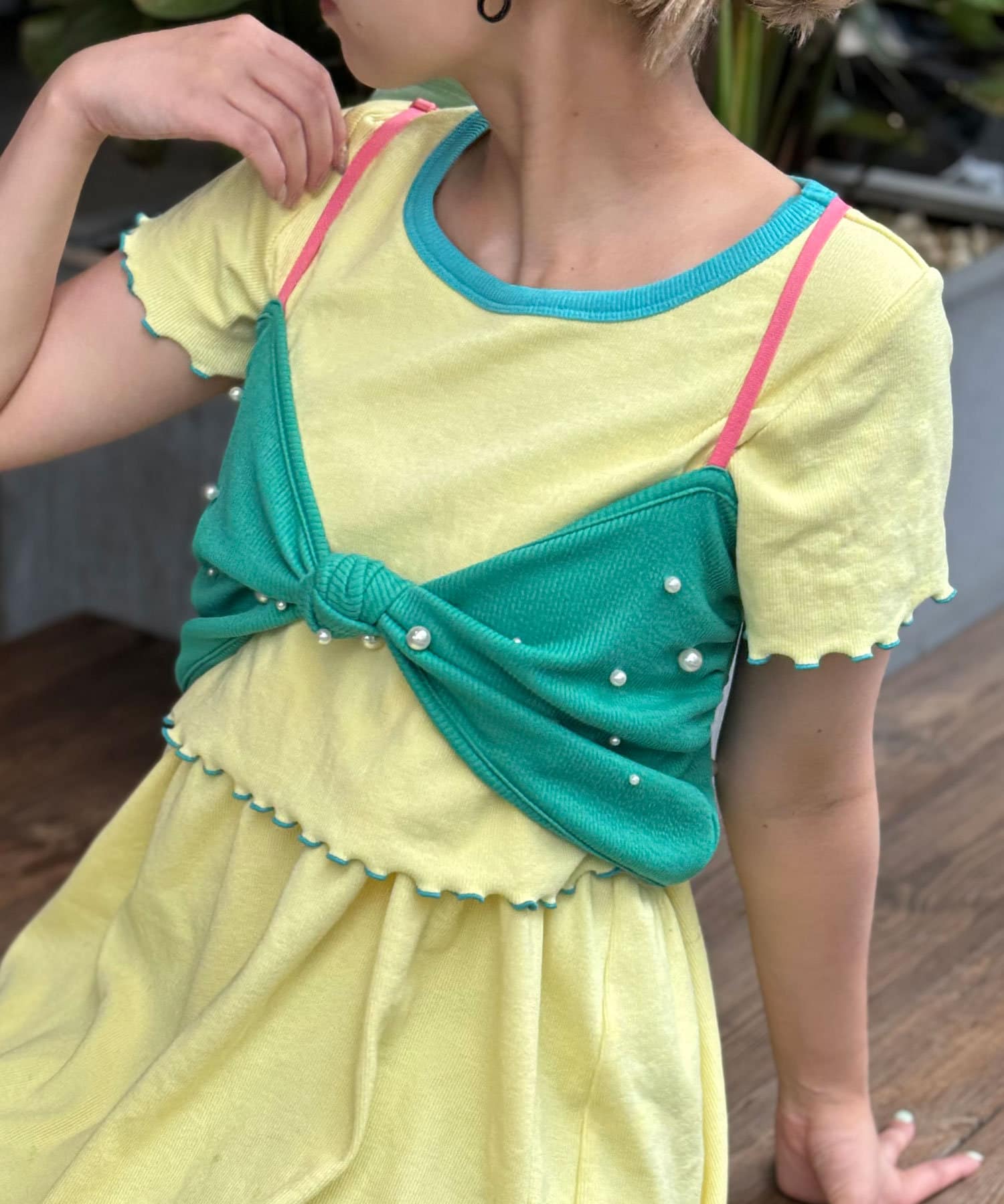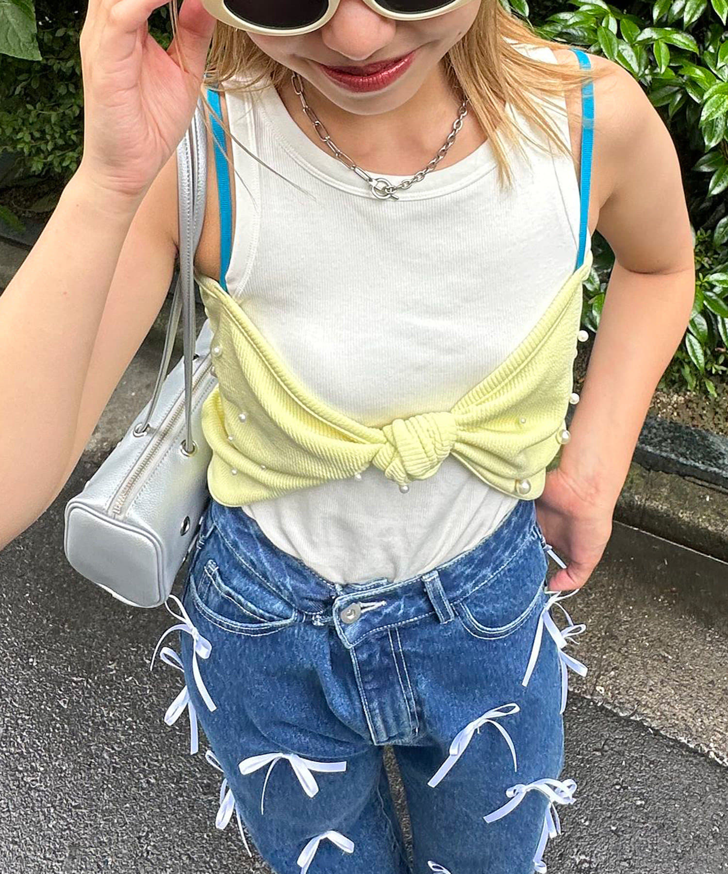 リボンデザインが目を惹くレイヤードキャミソール