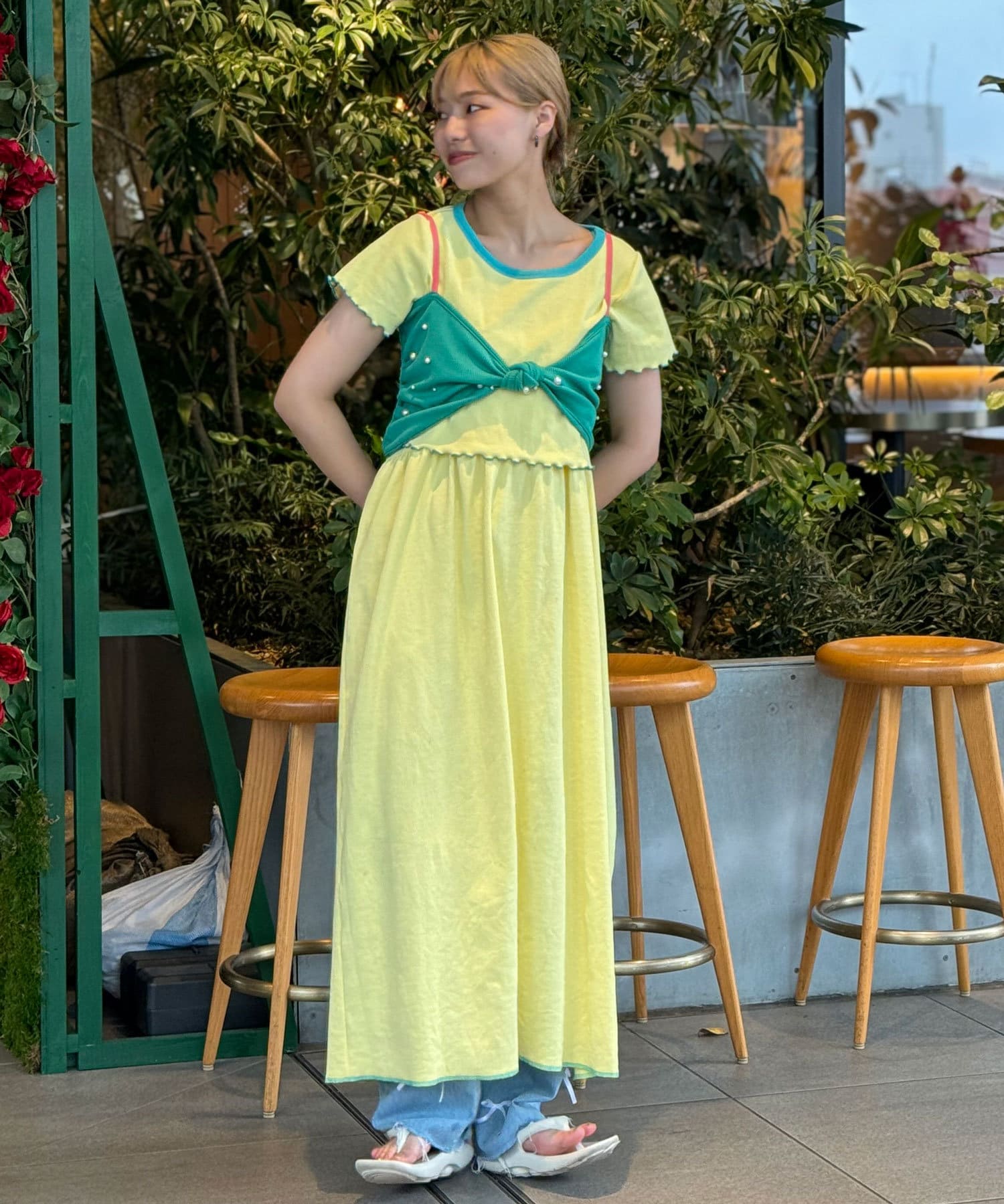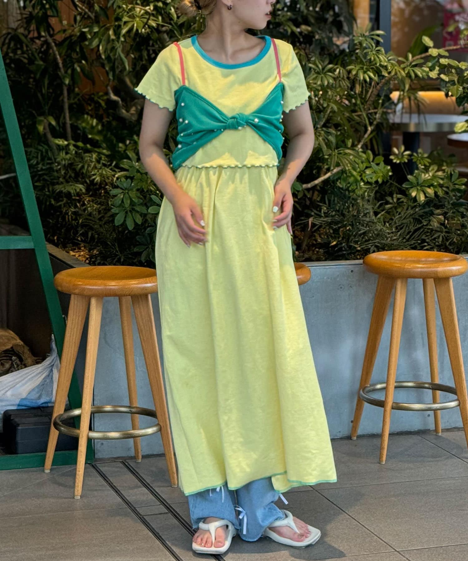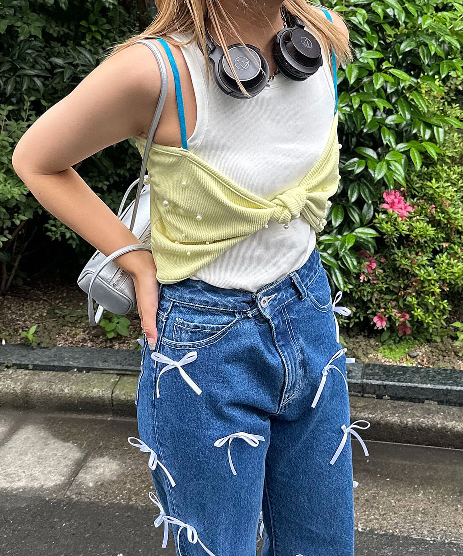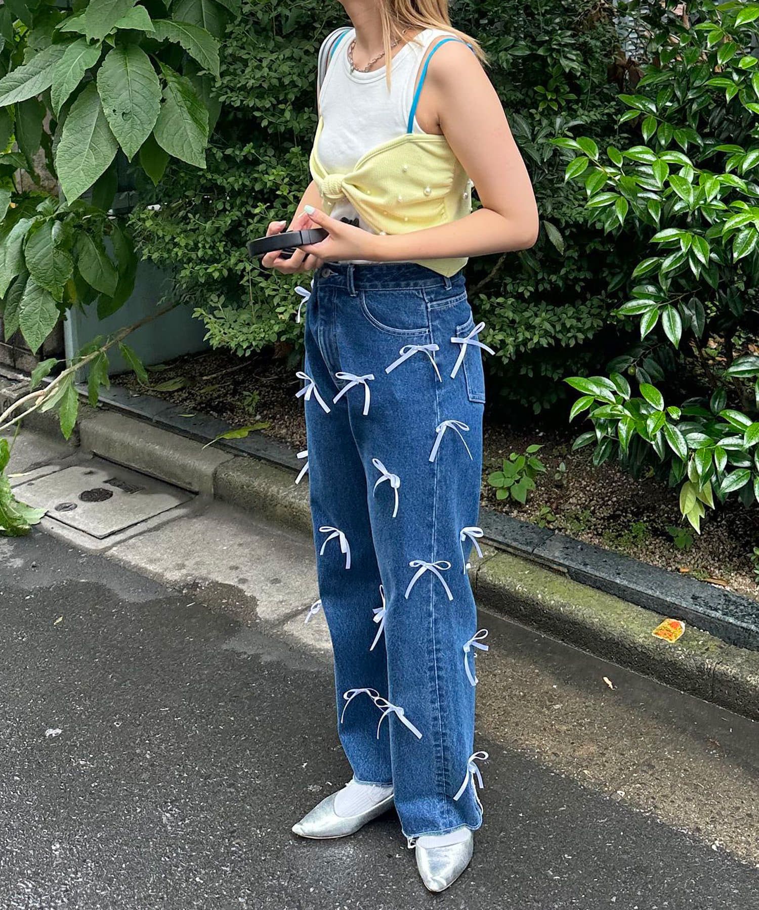 リボンデザインが目を惹くレイヤードキャミソール