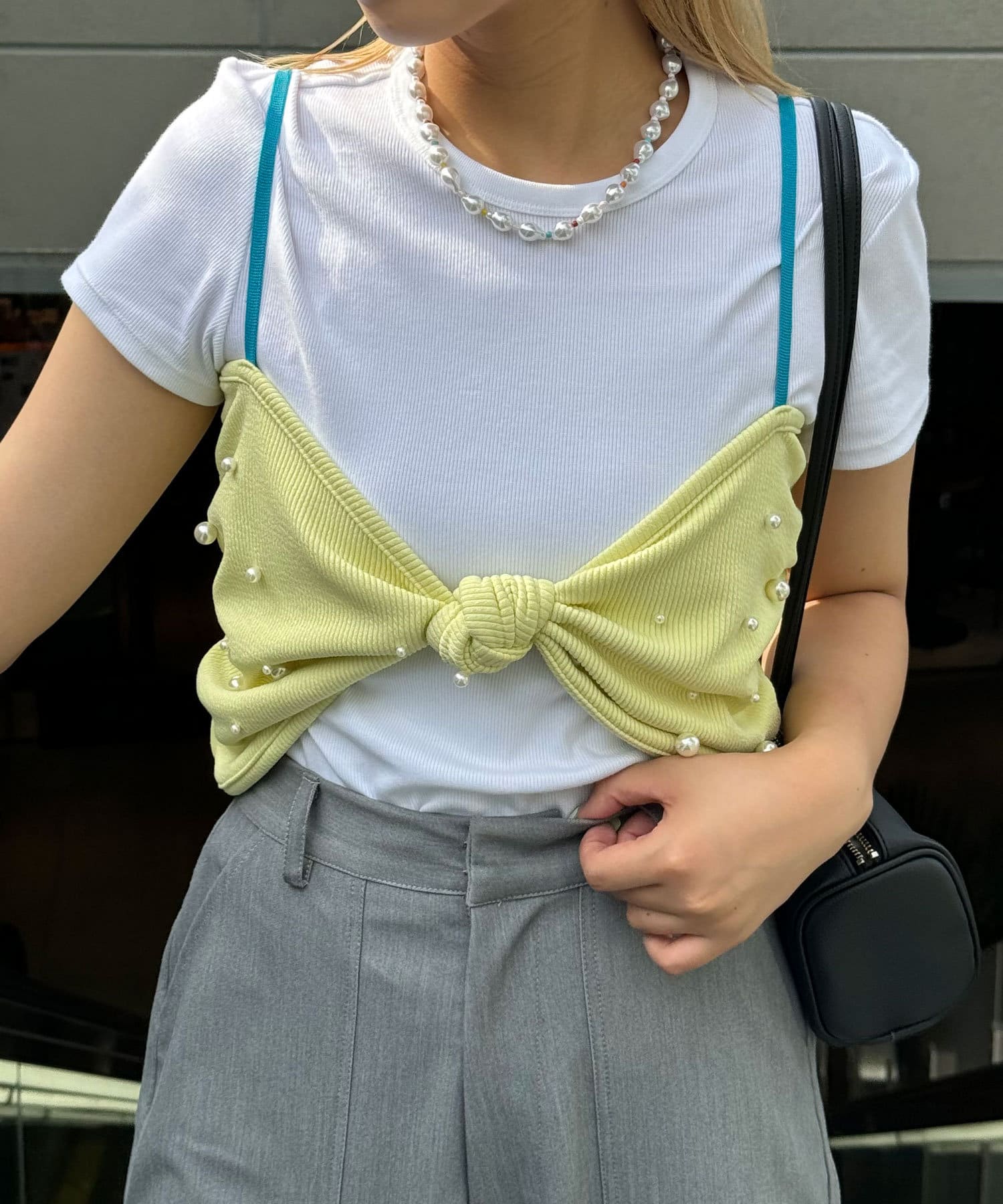 【HELLO.SANFRANCISCO/ハローサンフランシスコ】パール付リボンブラキャミ