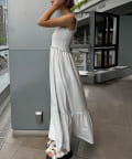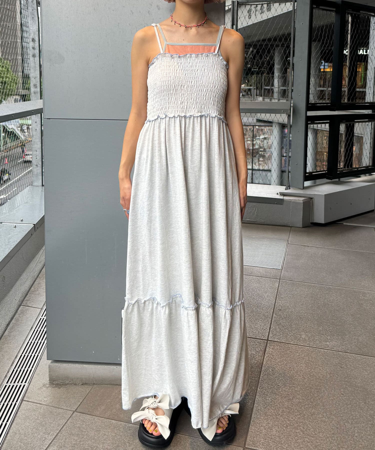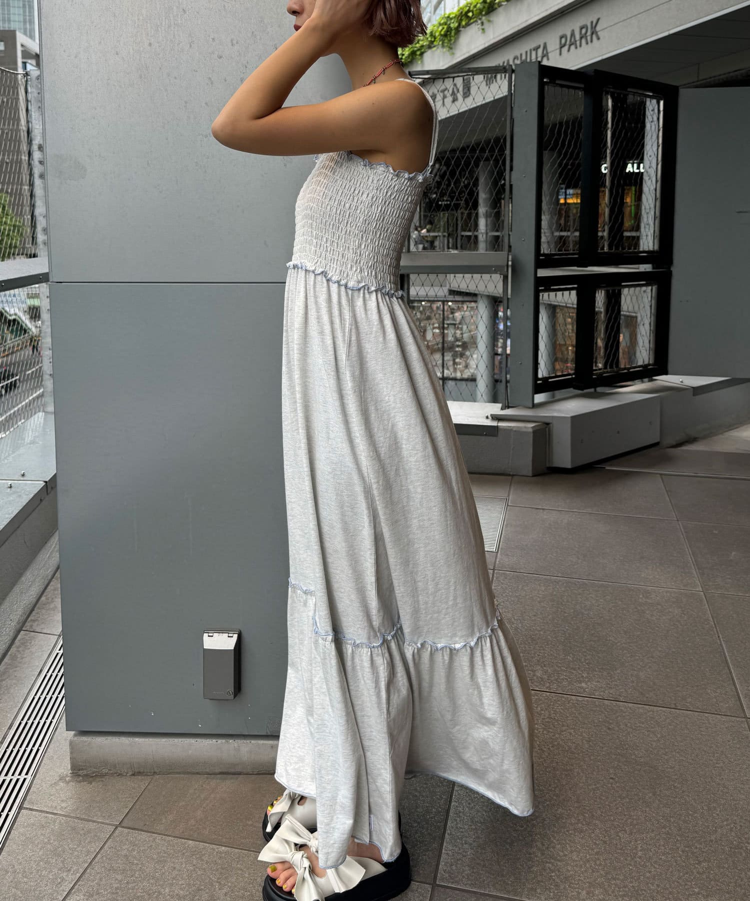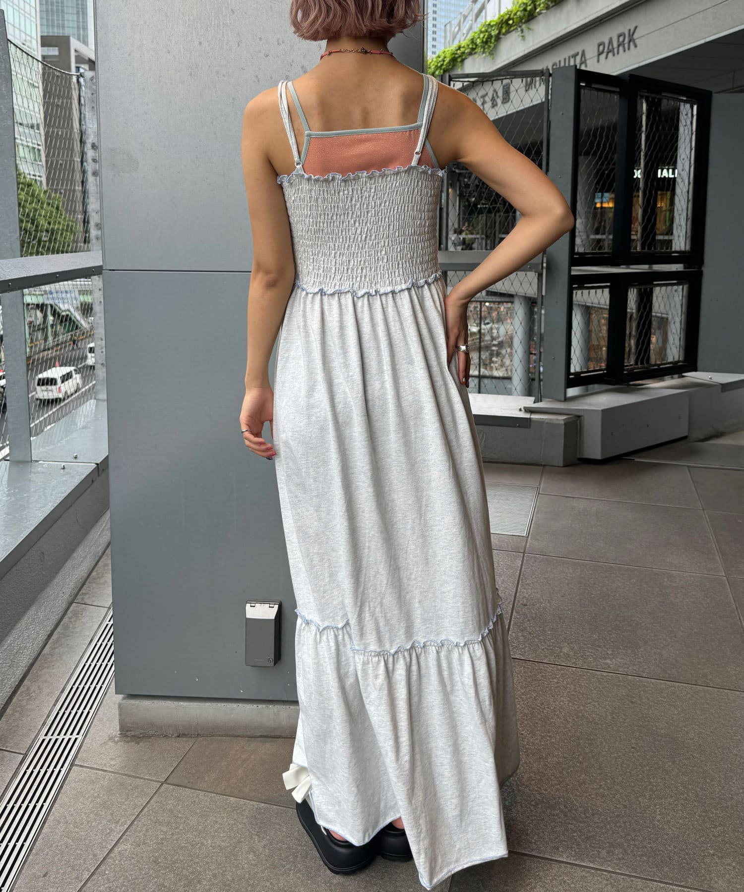 キャミワンピはシャーリング×切替デザインでこなれた印象を与えてくれます。