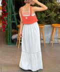 Tシャツ合わせはもちろんですが、タンクトップを合わせてヘルシーな肌見せが可愛いです。