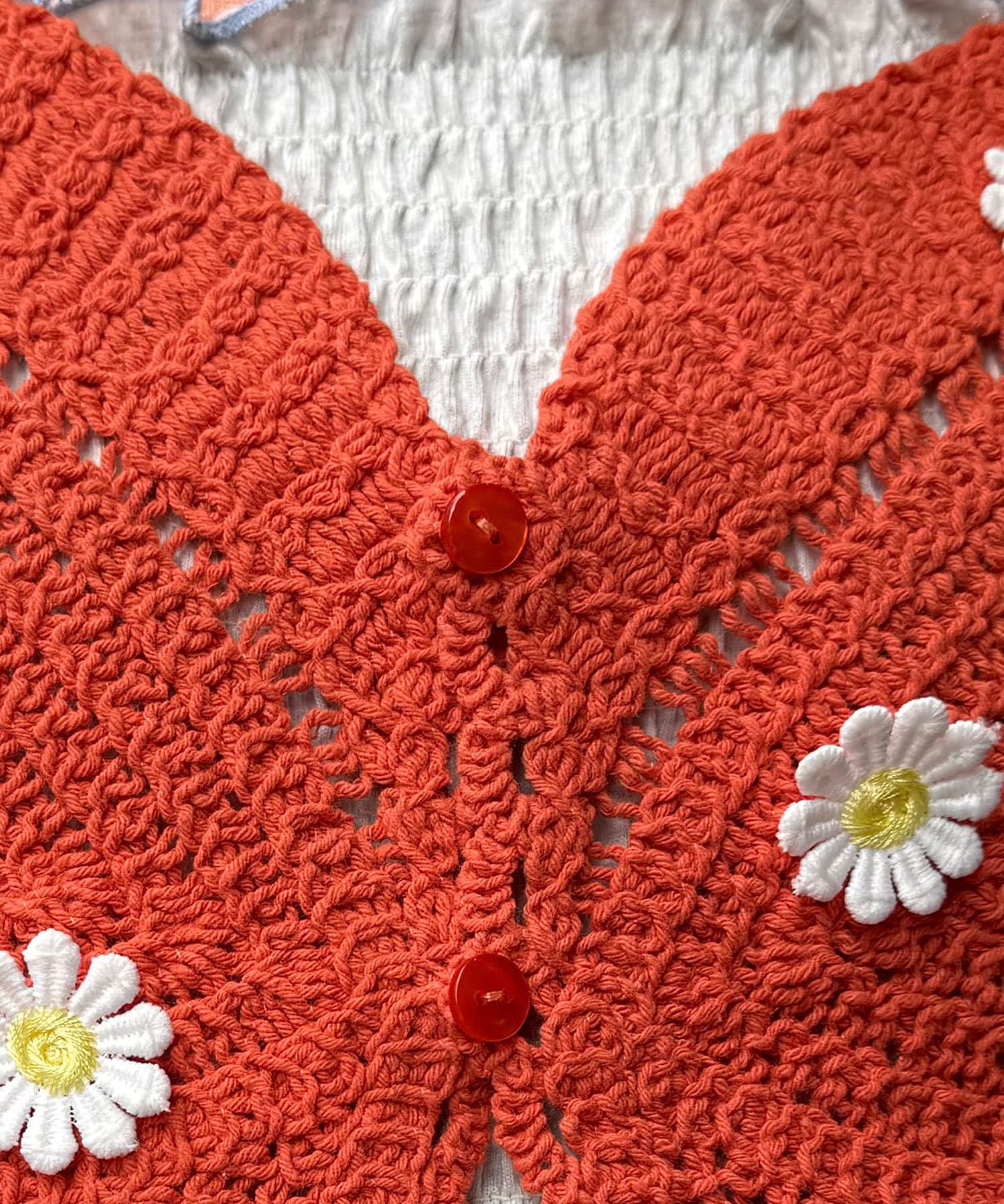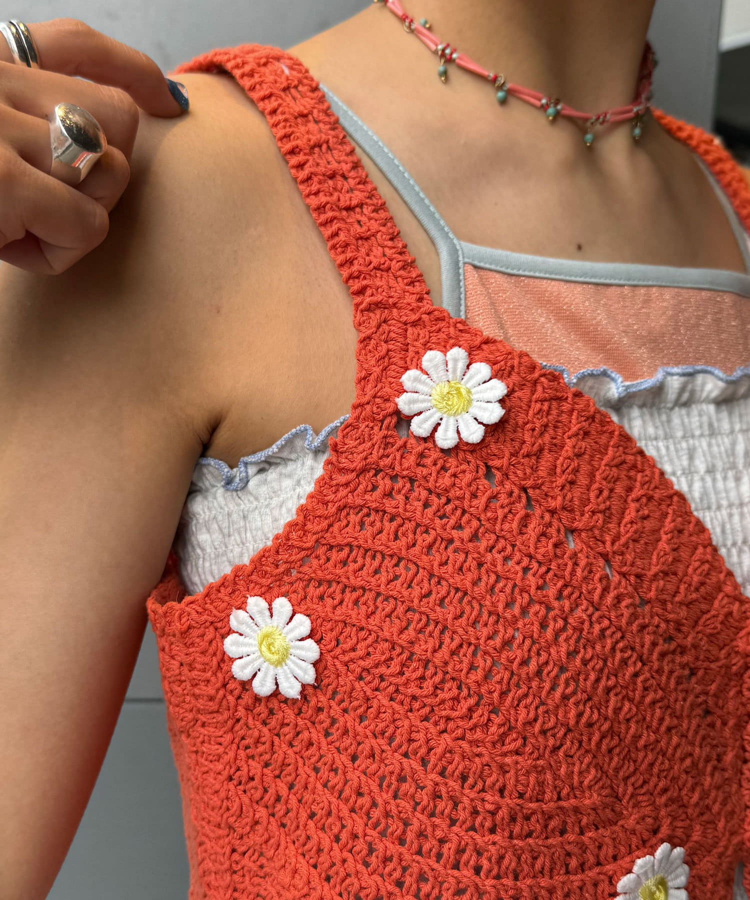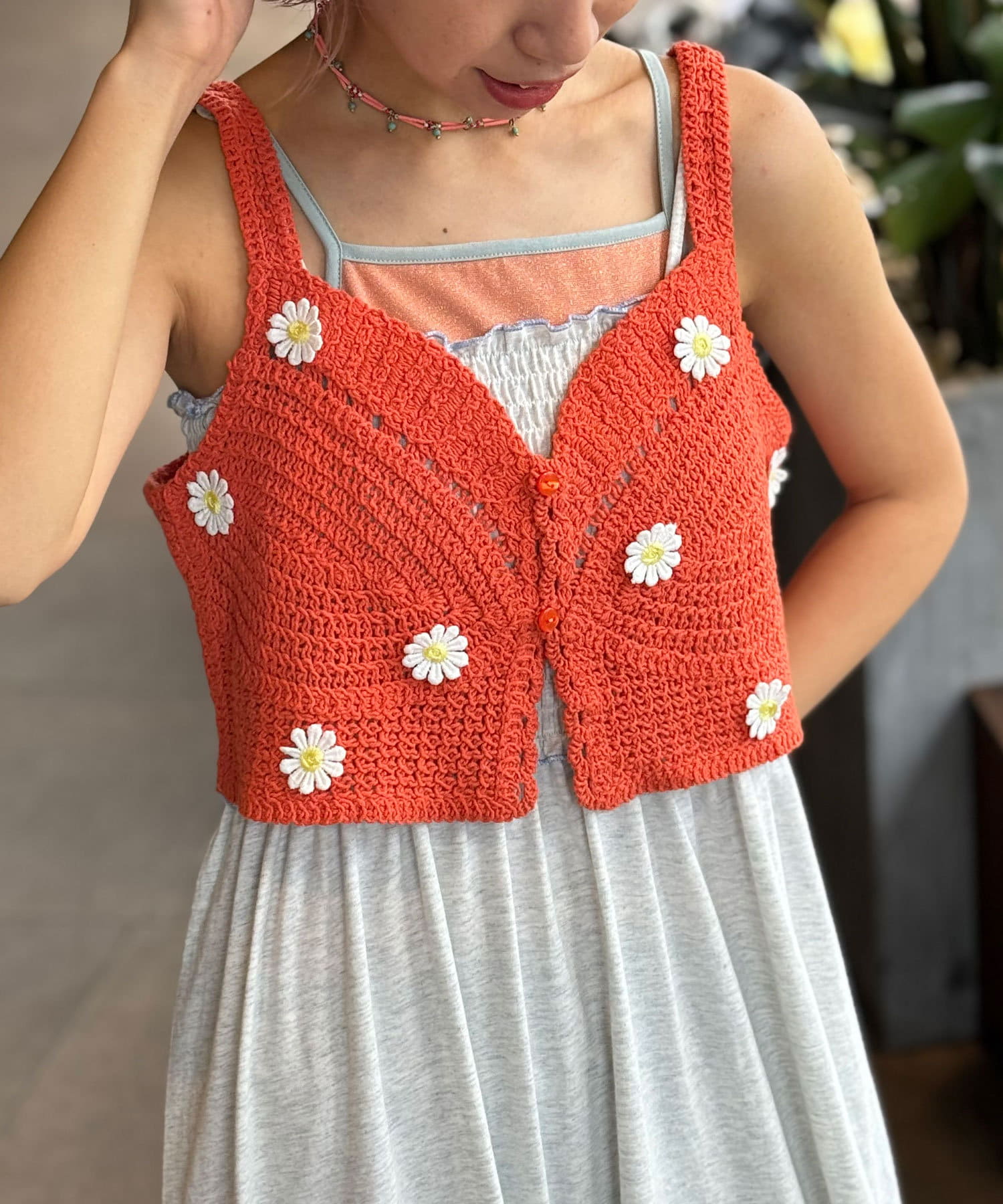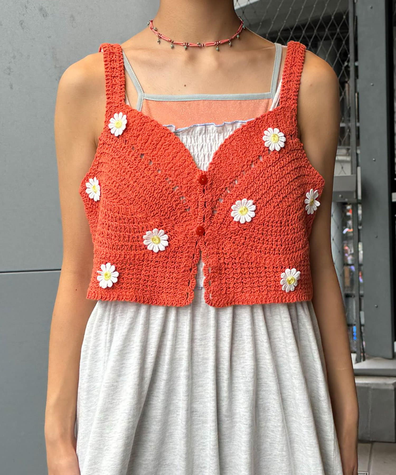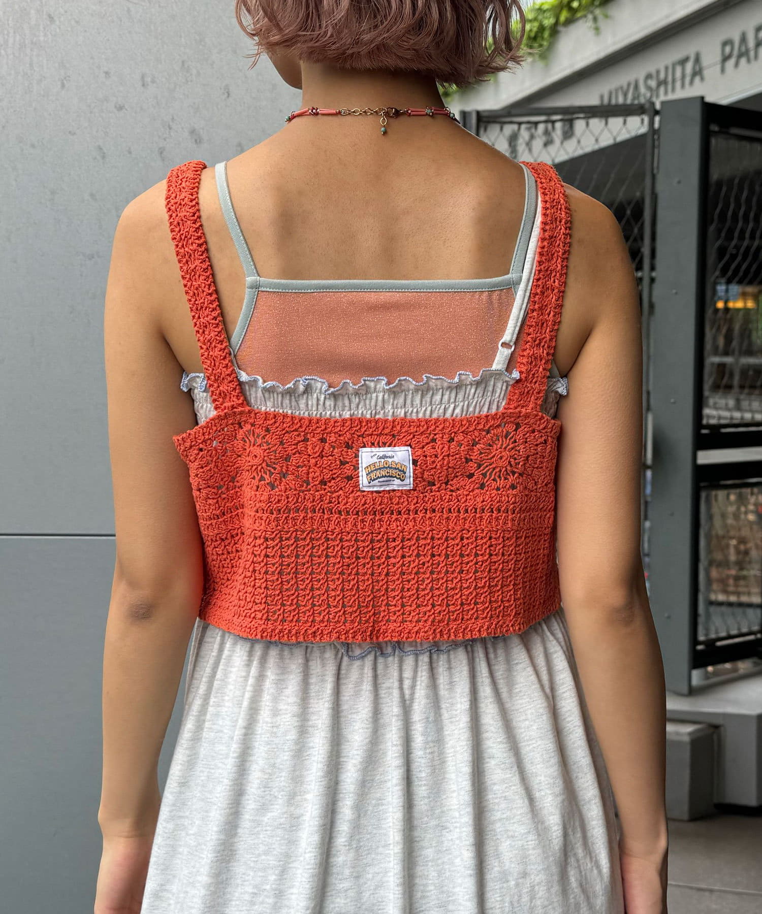 トレンドのビスチェはレトロ感溢れるクロシェ編みでハロサン仕様に◎