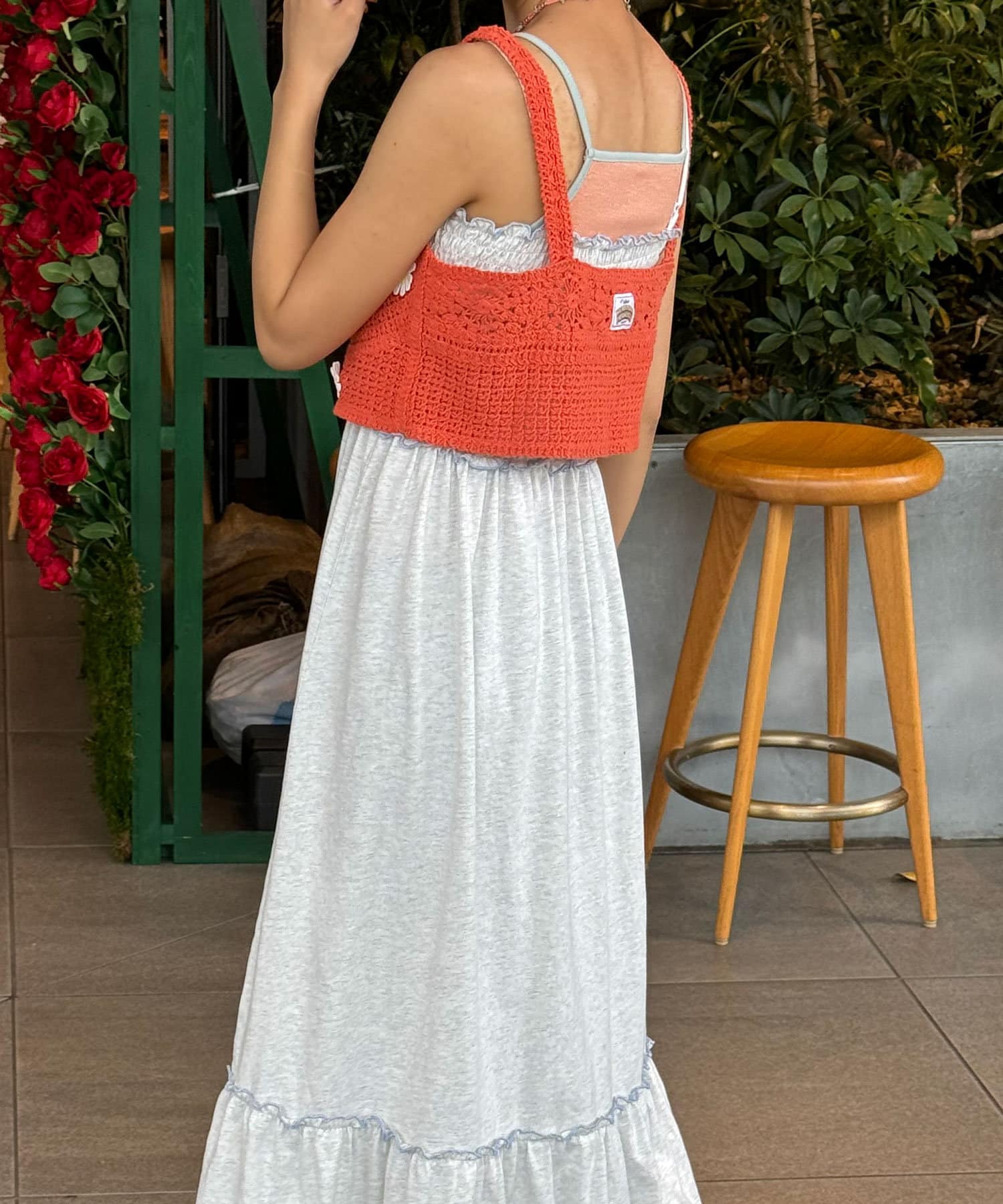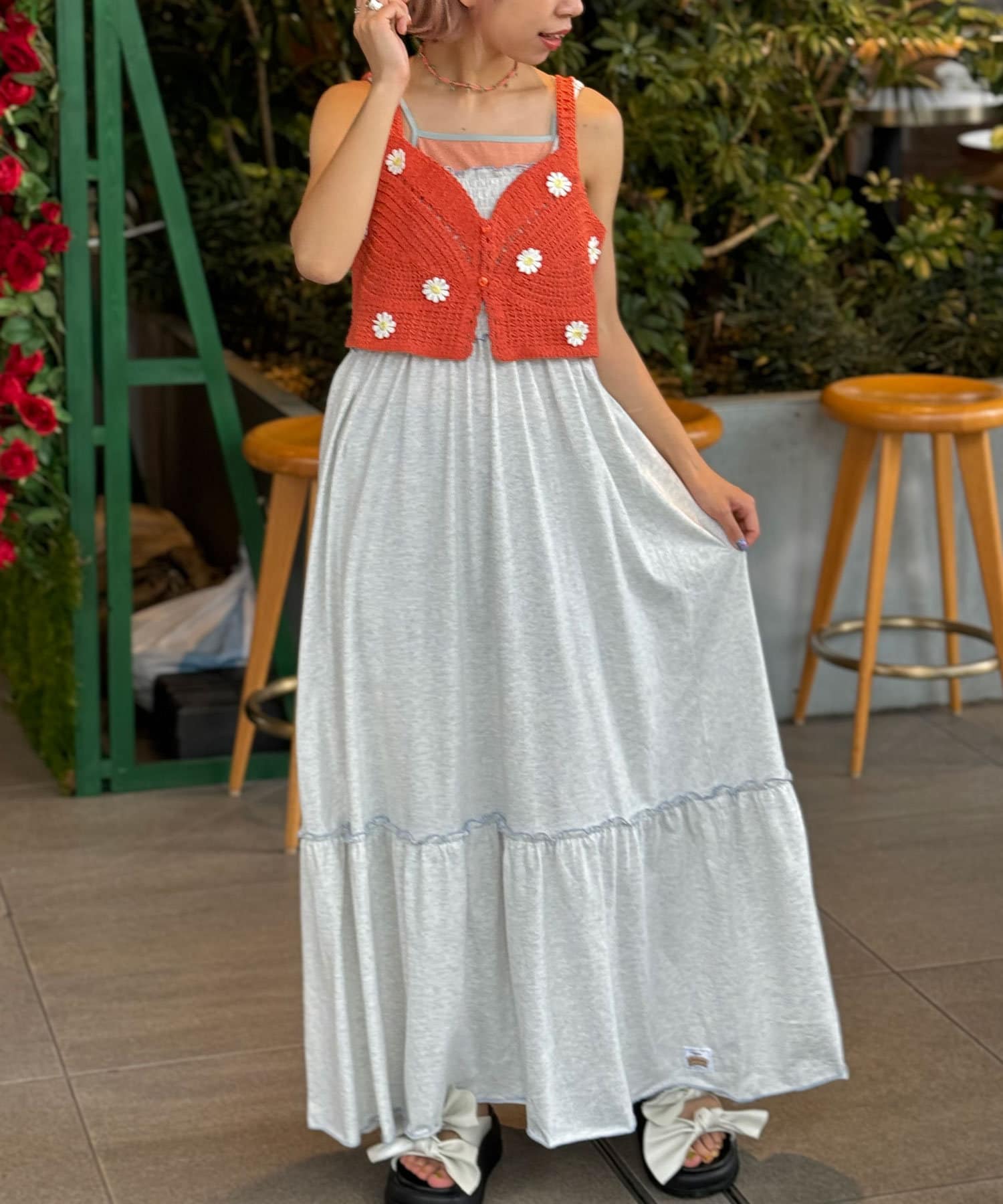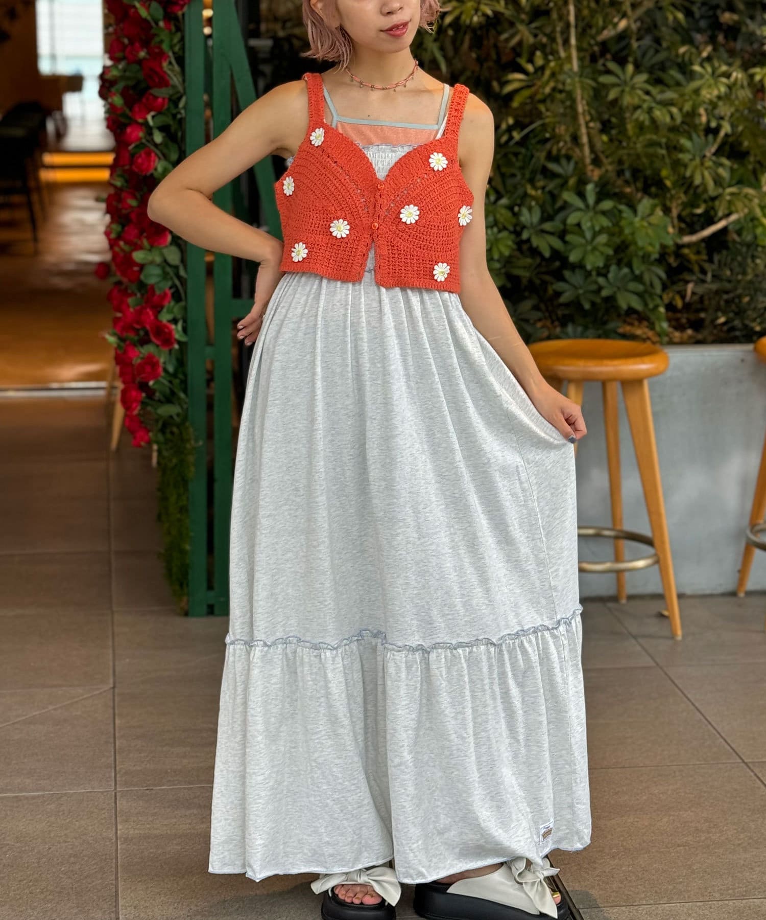 レトロなクロシェ編みが可愛い“キャミワンピ+ビスチェ”