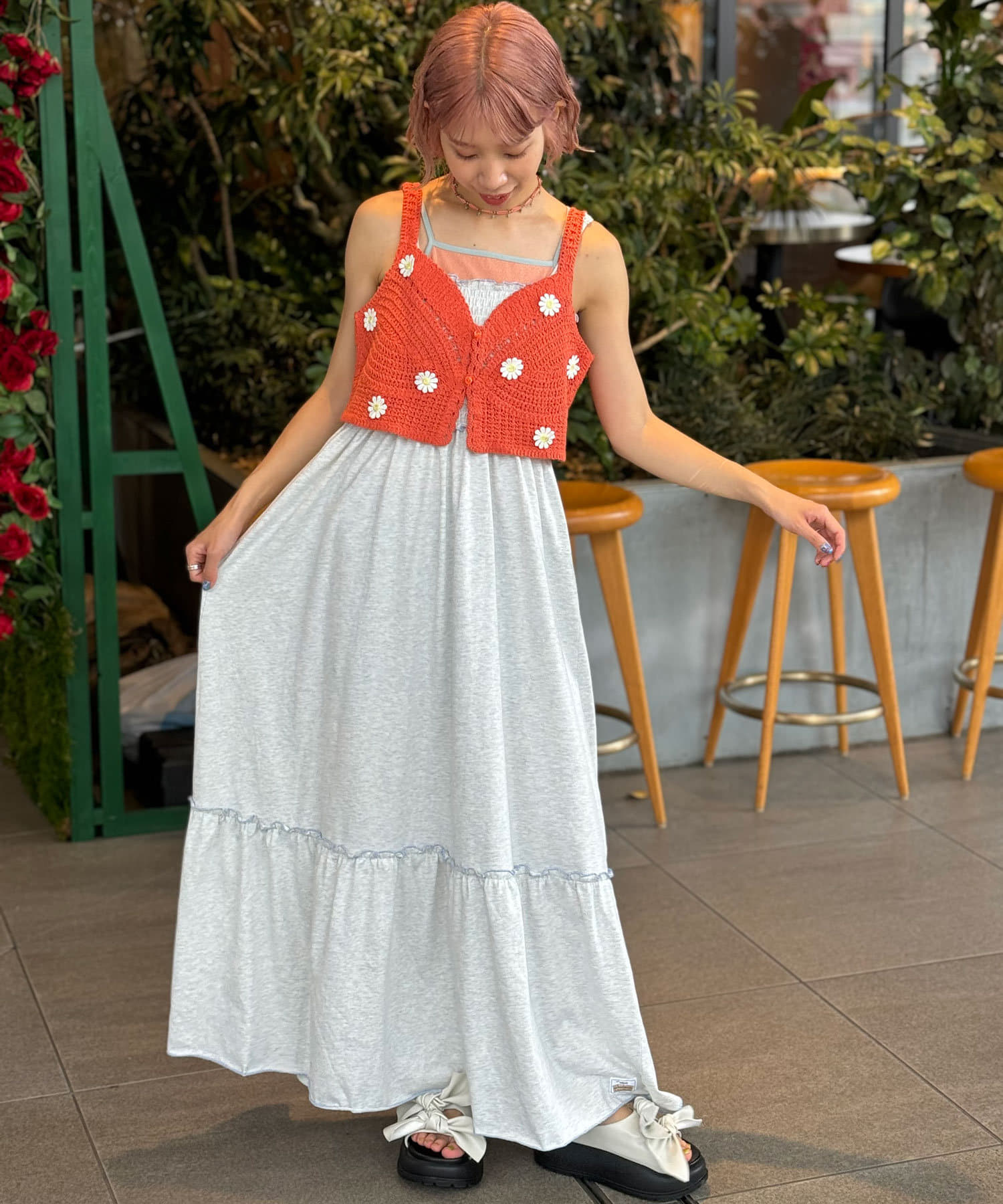 【HELLO.SANFRANCISCO/ハローサンフランシスコ】クロシェビスチェ付シャーリングキャミワンピ