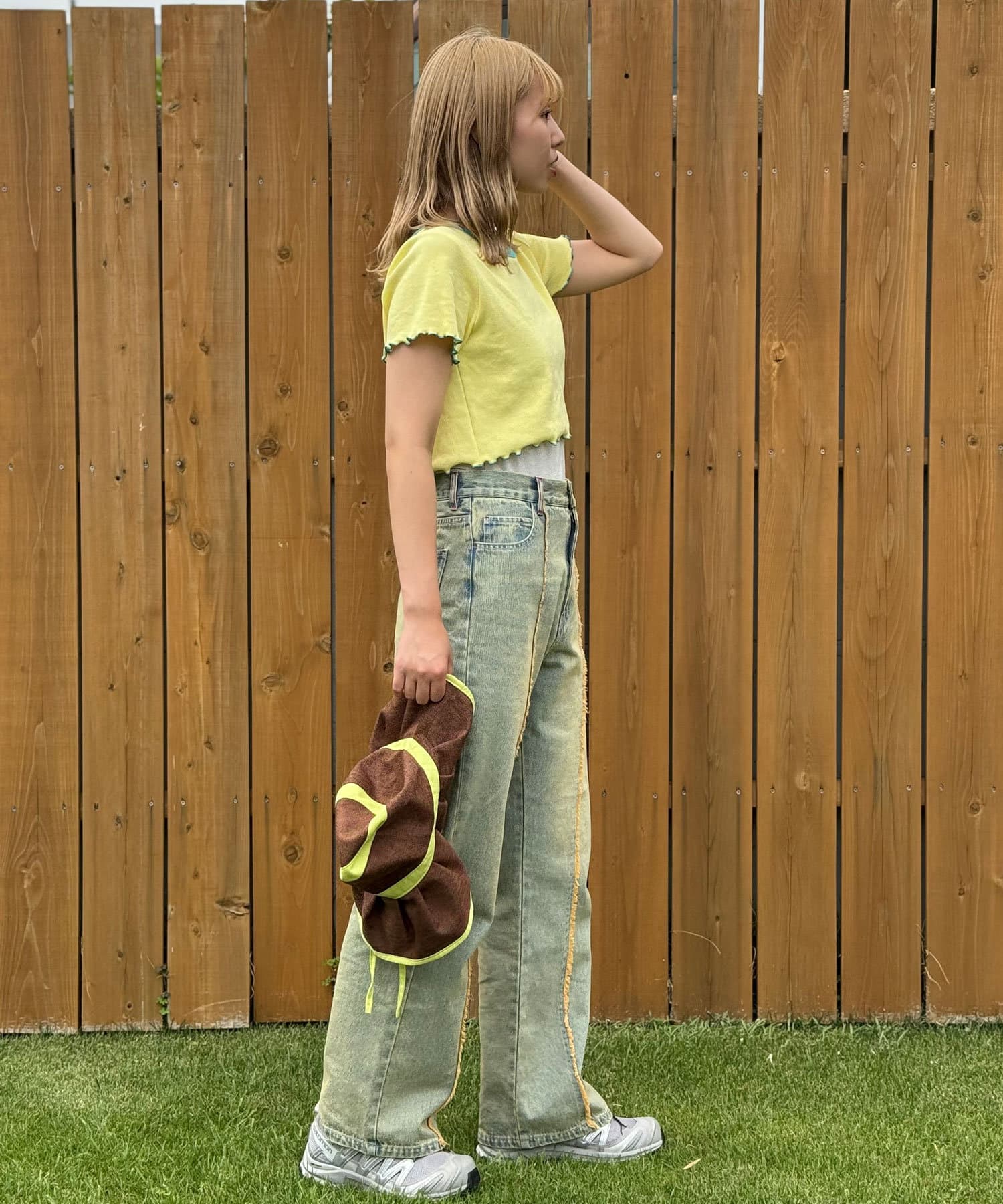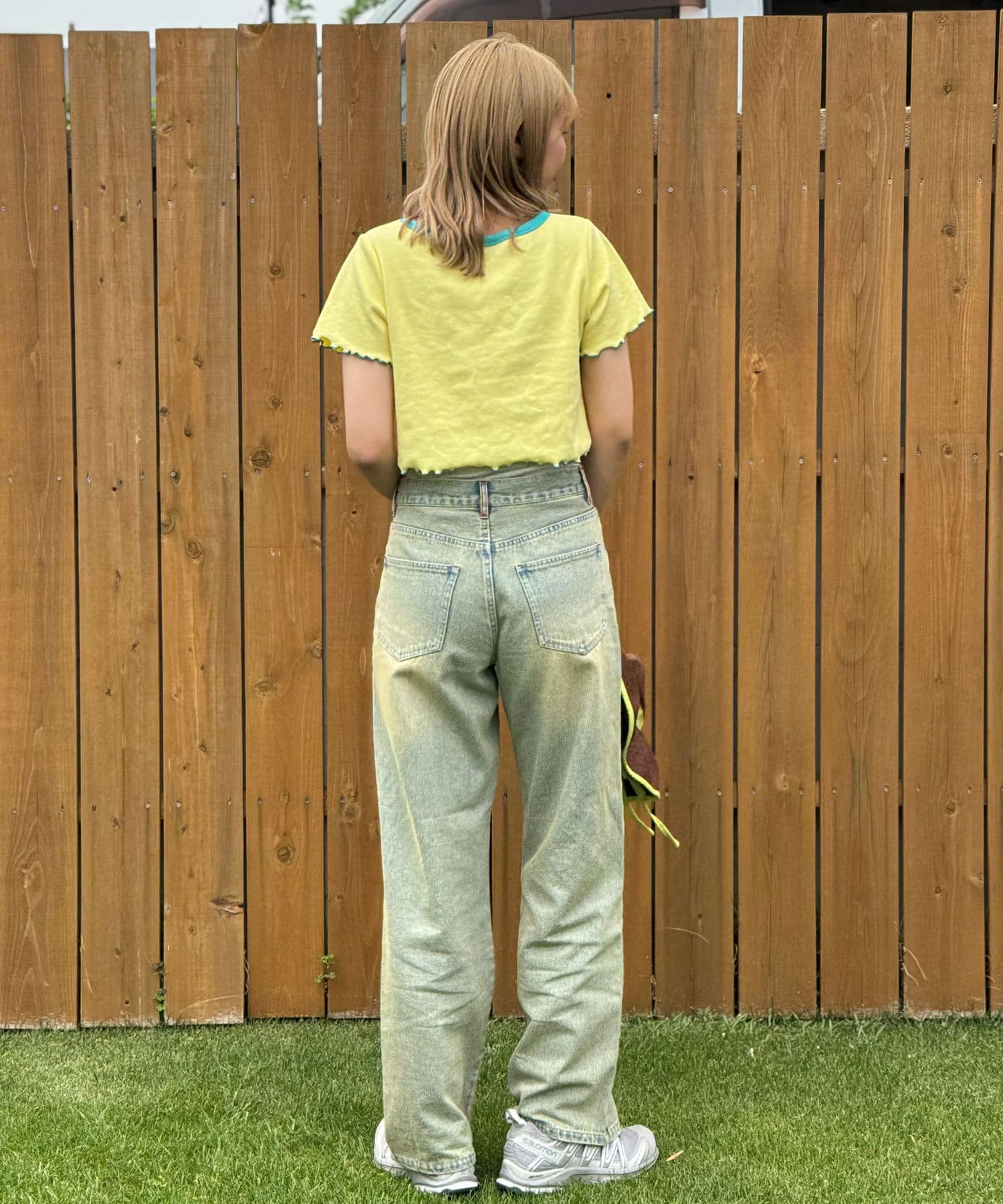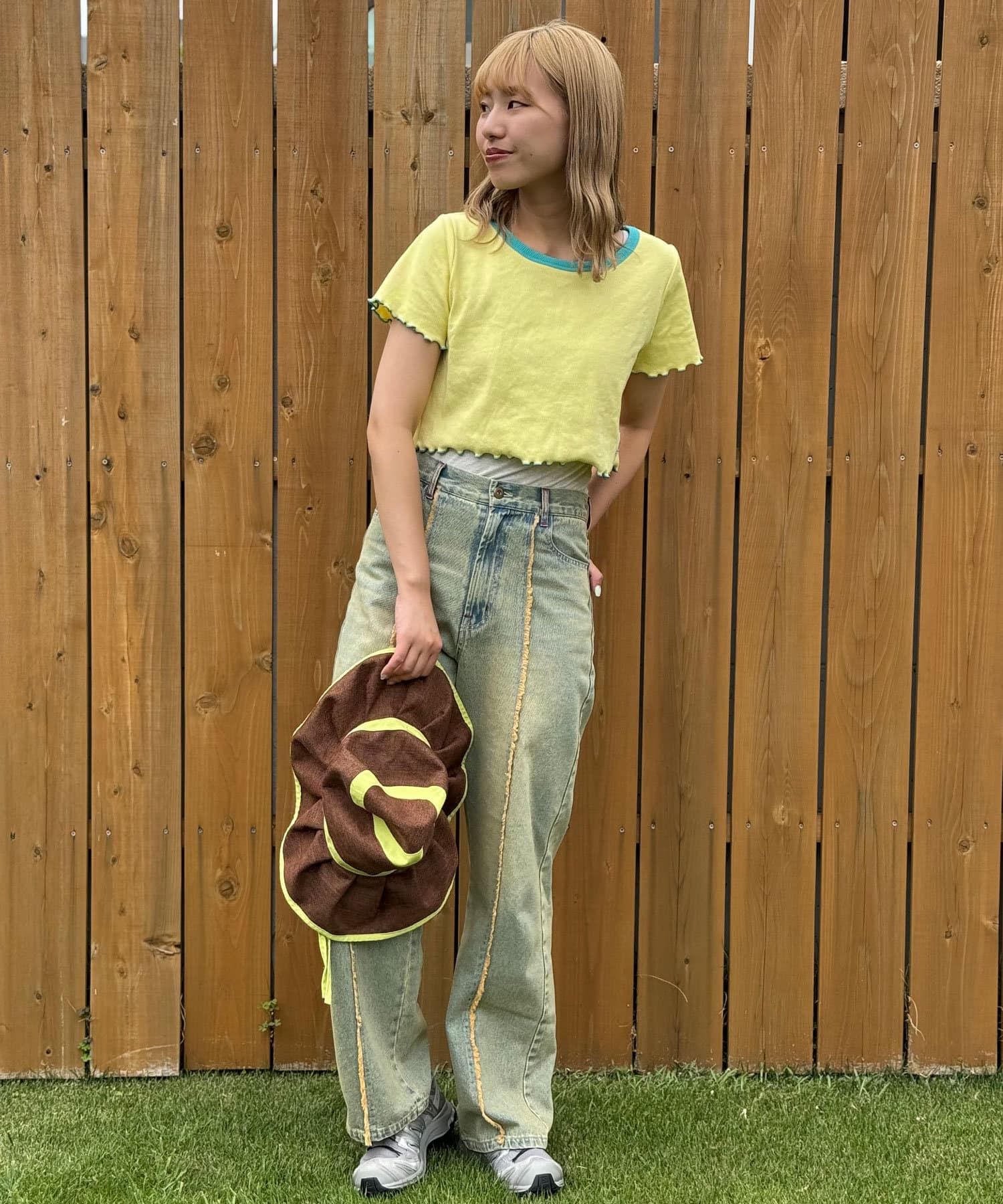 カットソーはクロップド丈でトレンド感をプラスしてくれます。