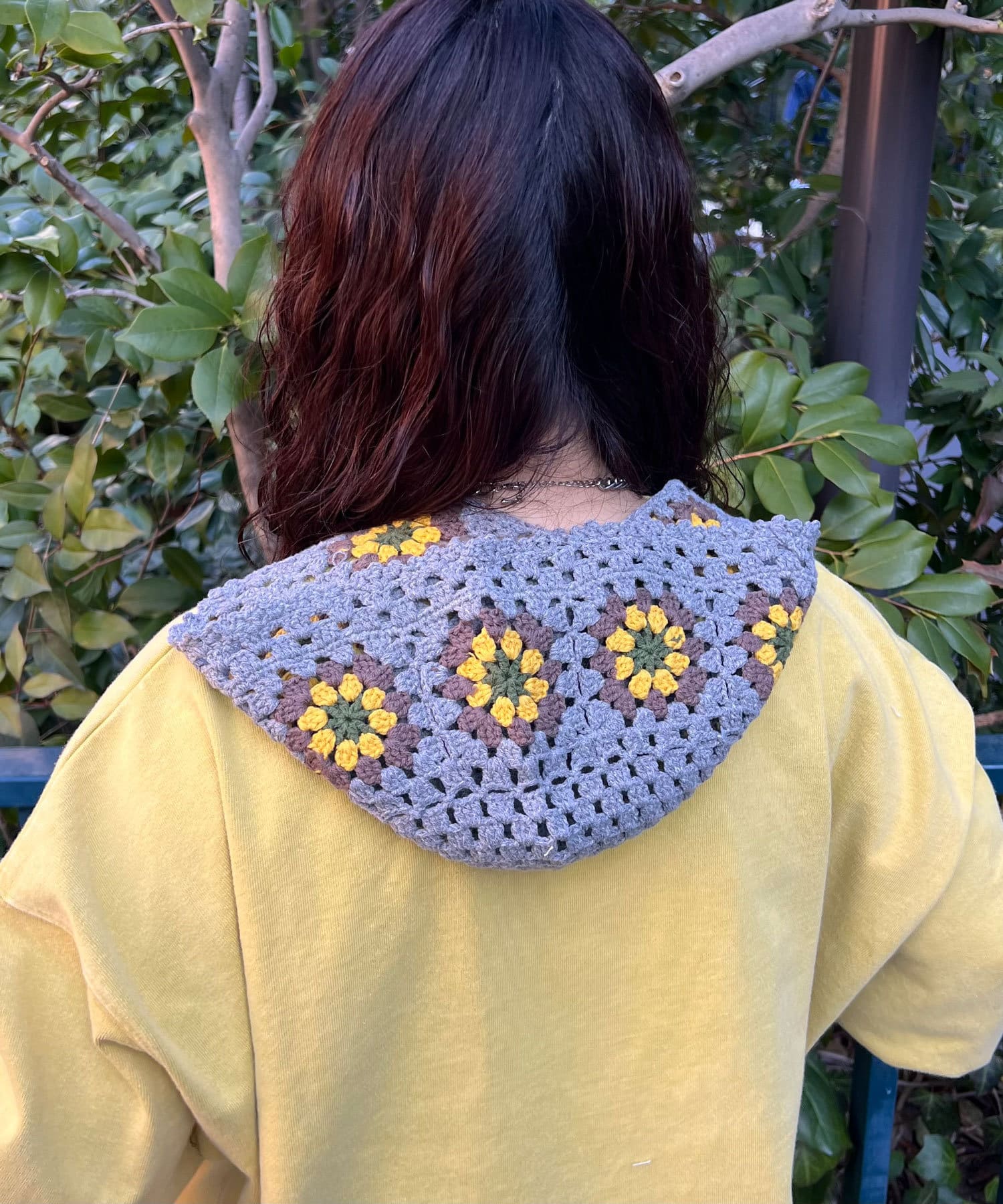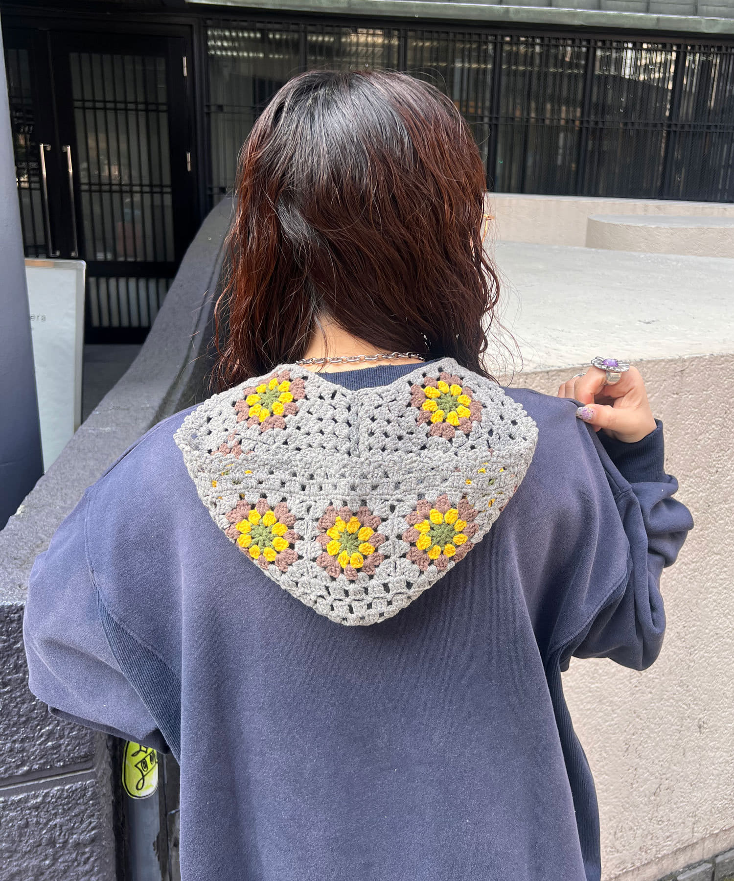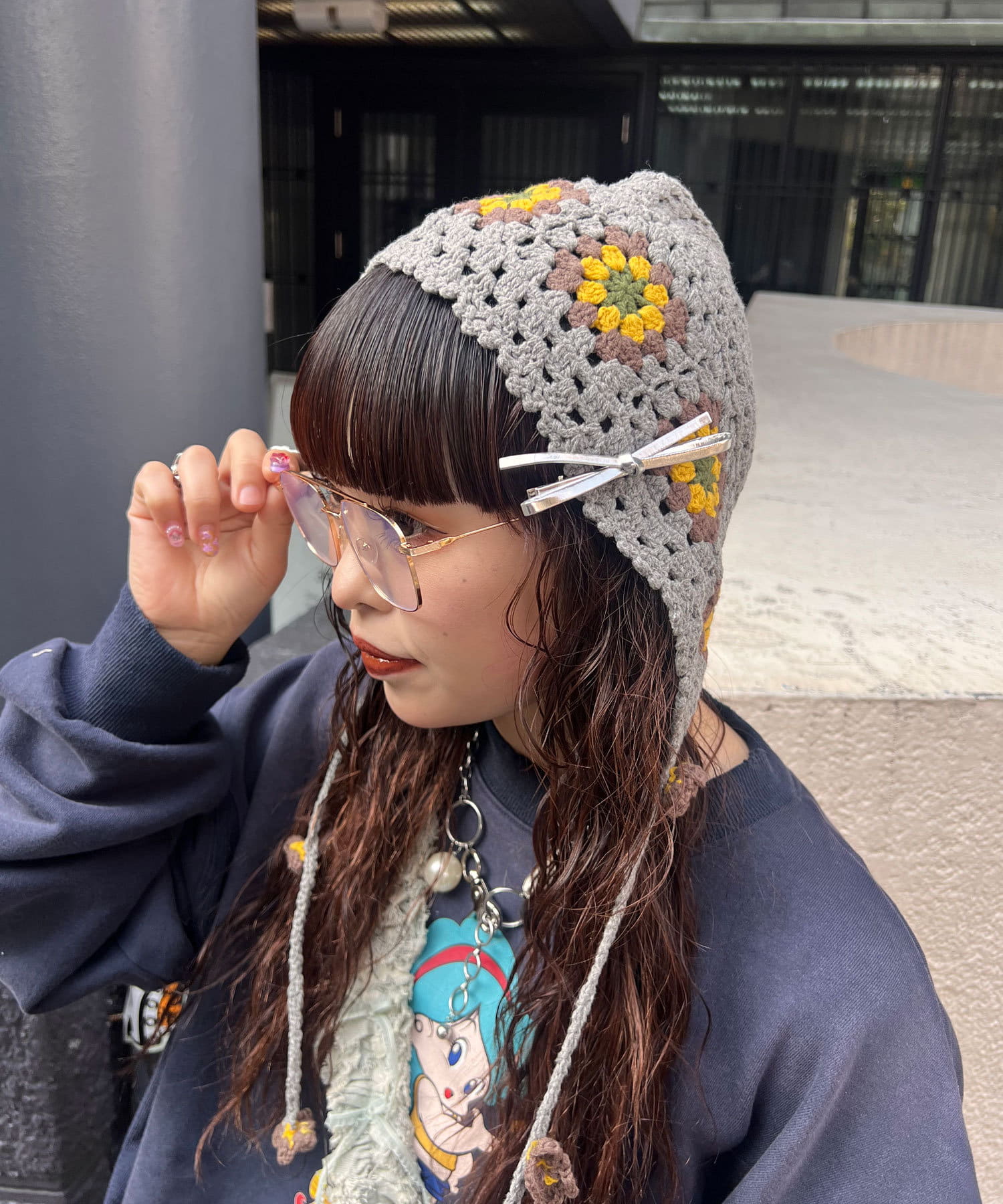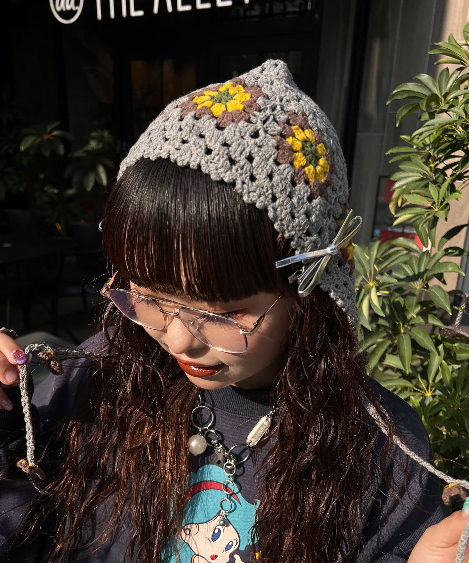 クロシェ編みのフラワーモチーフが目を惹くボンネット帽
