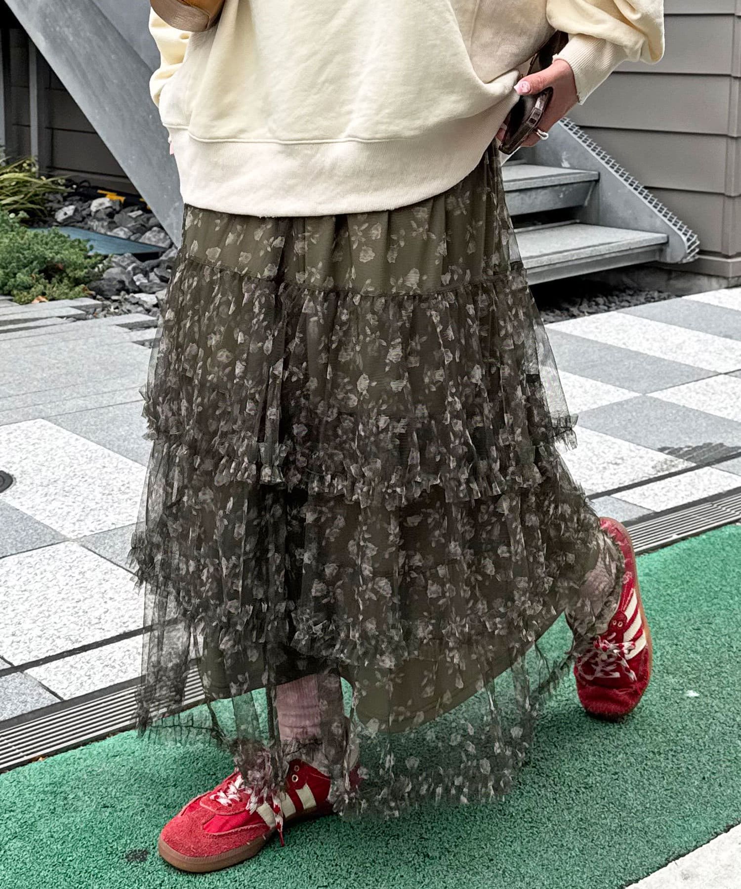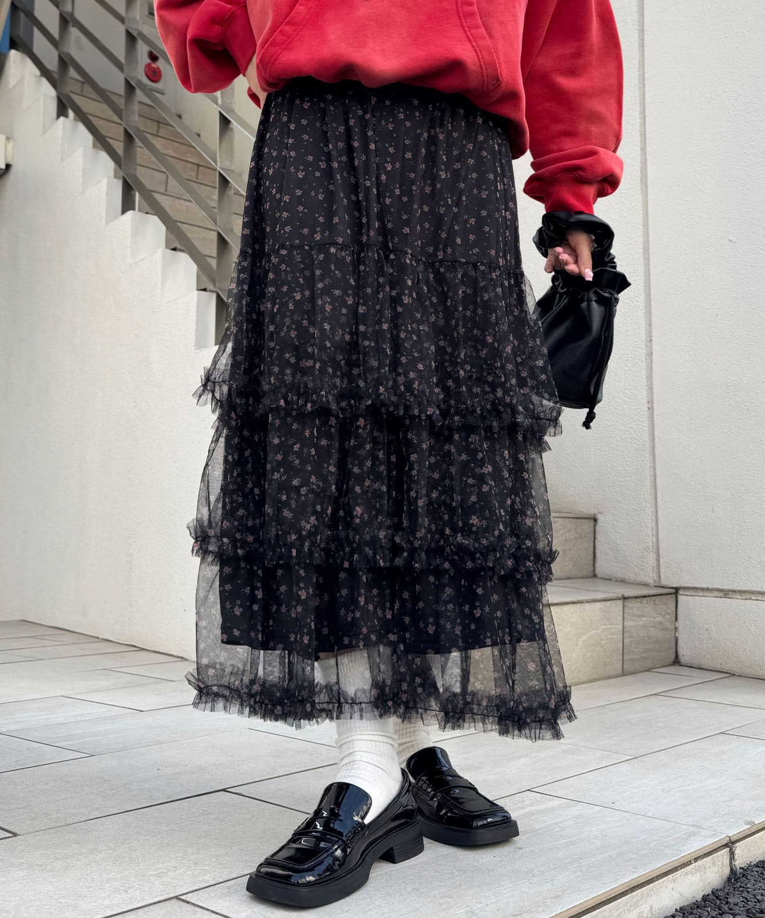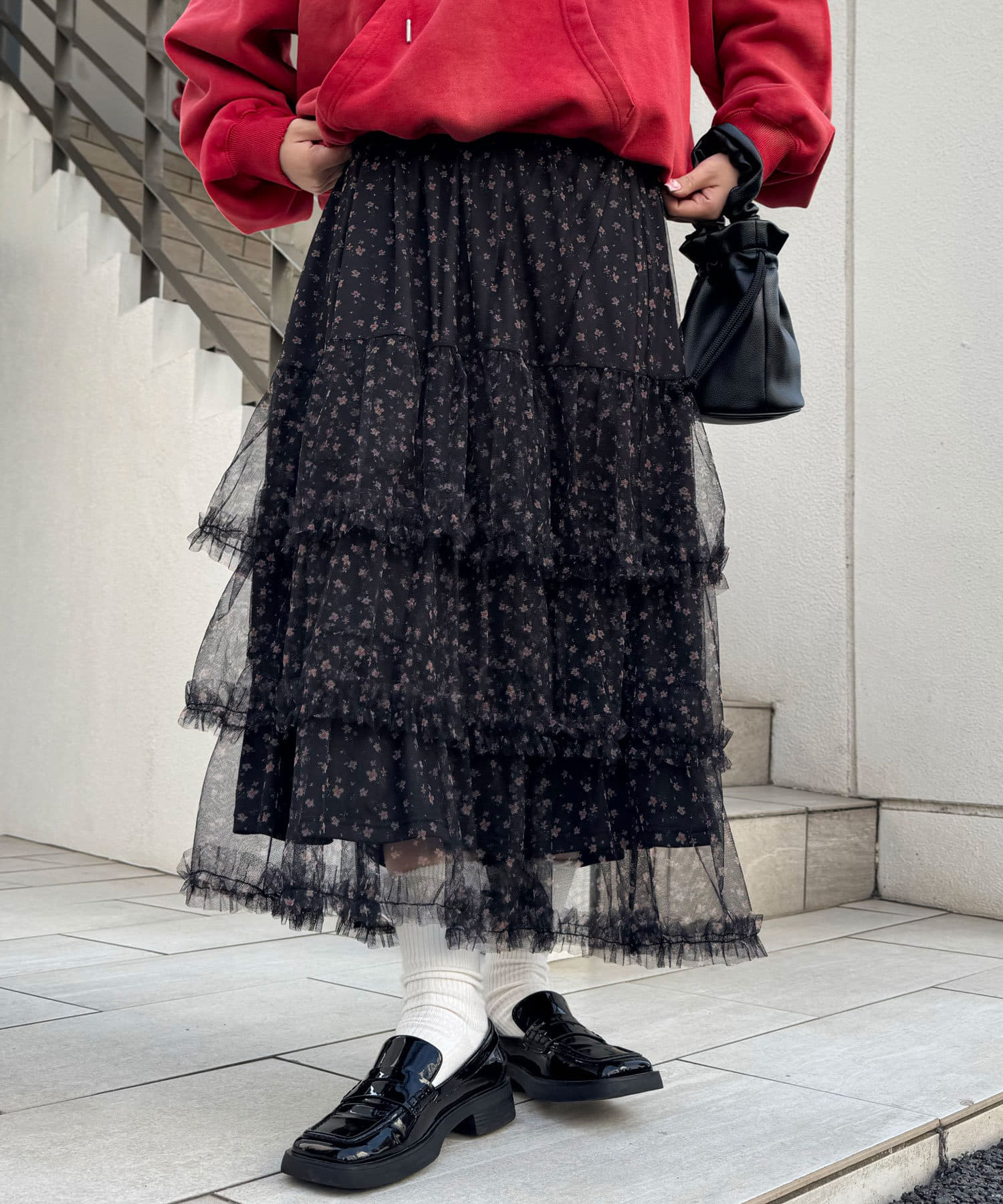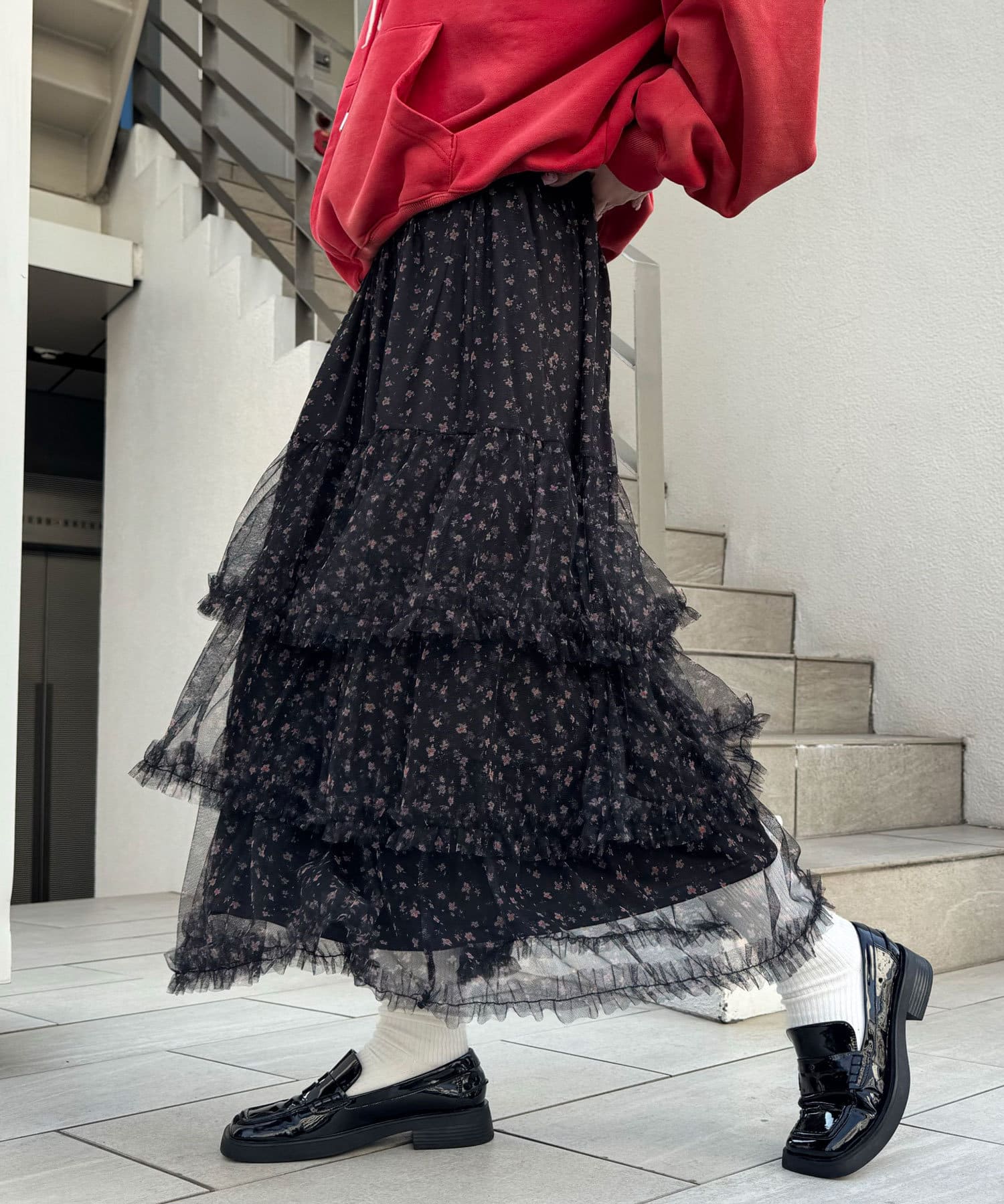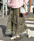 歩くたびにふわっと広がるチュールティアードスカート