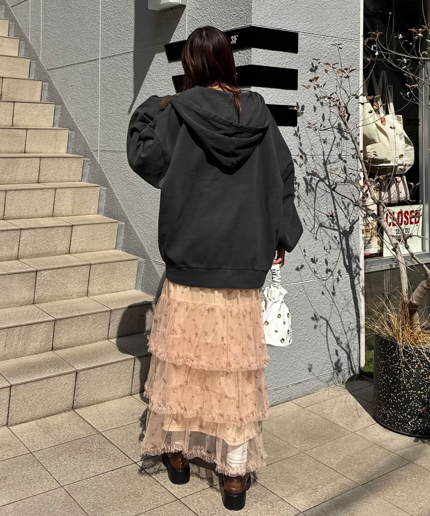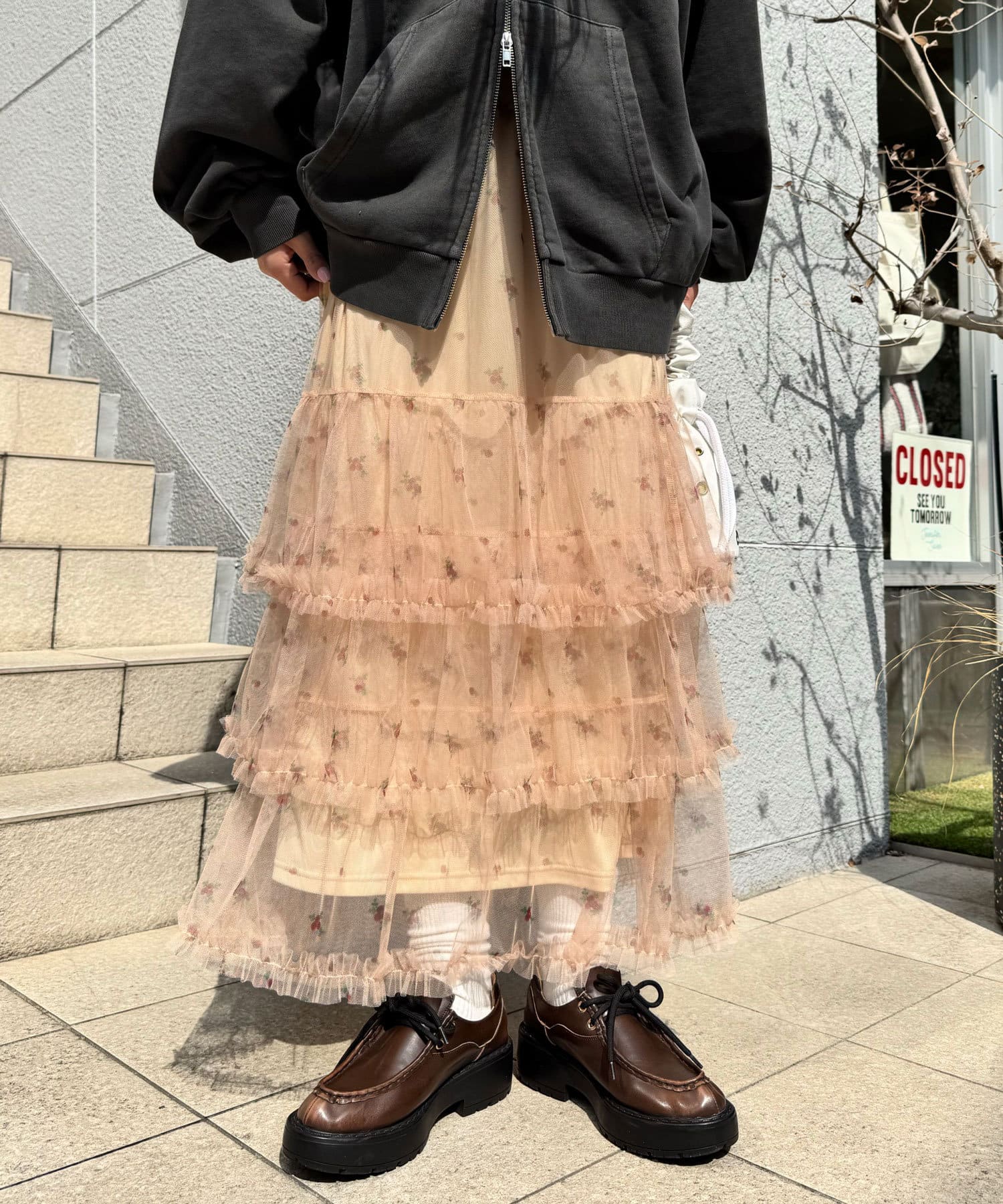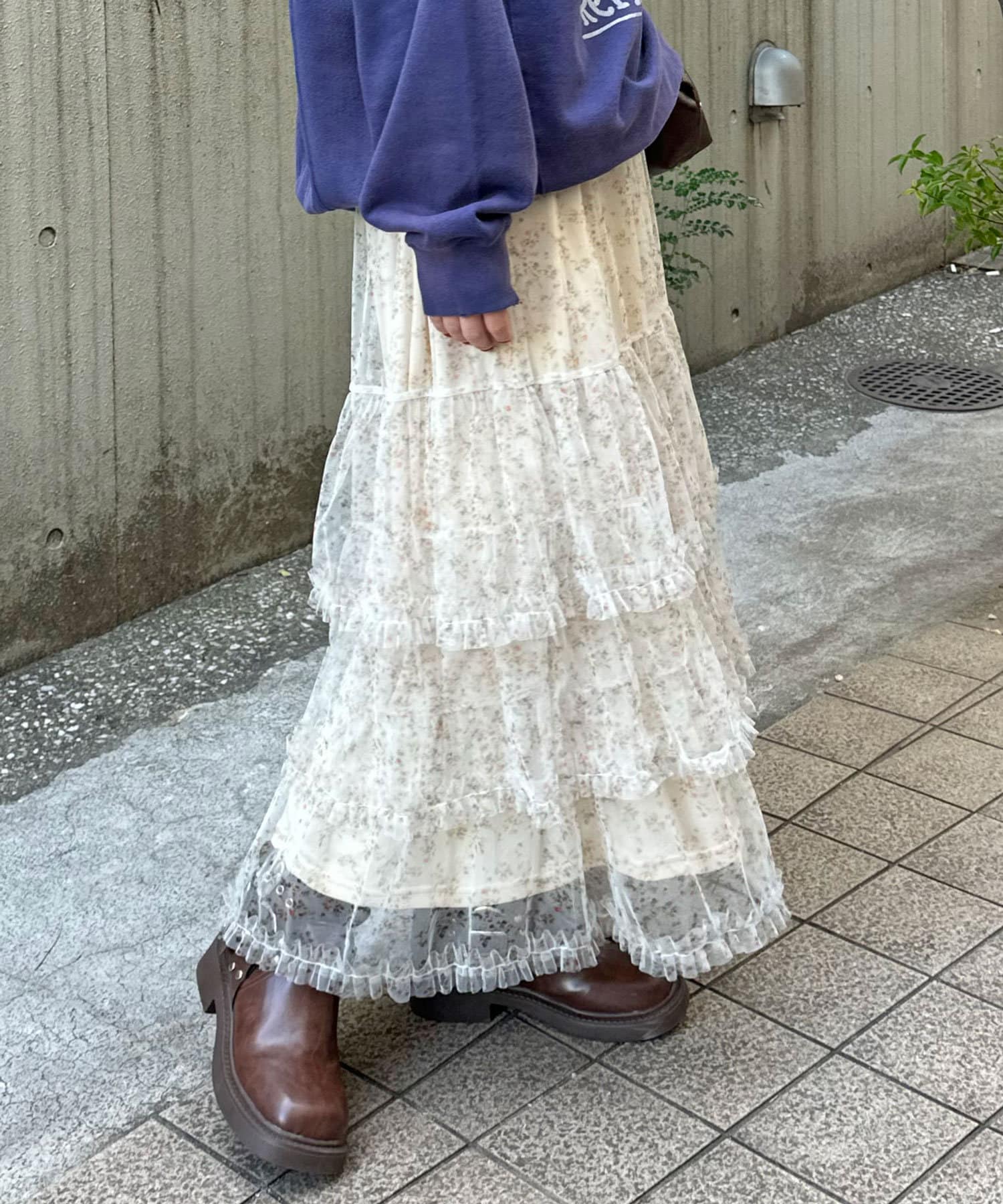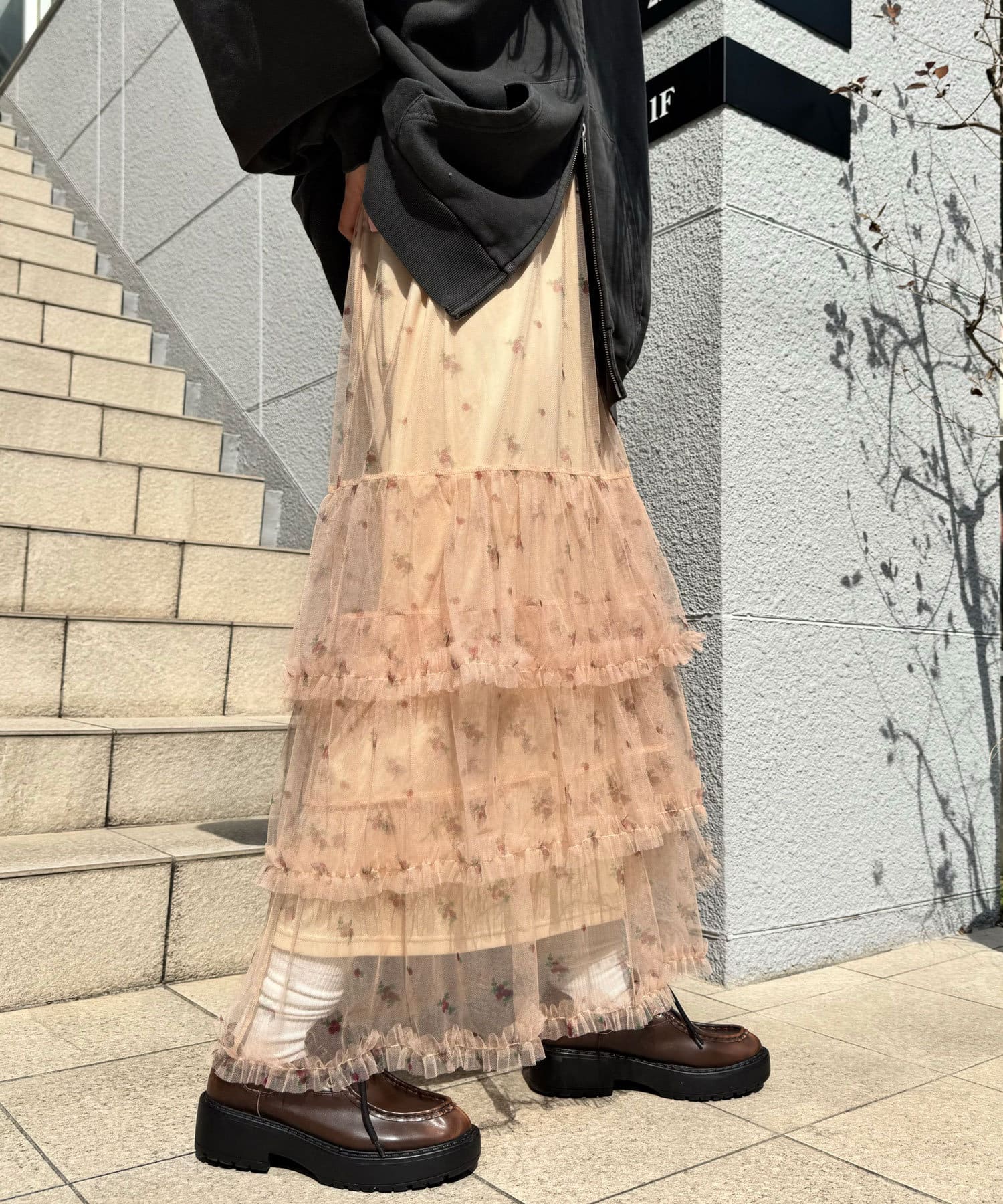 歩くたびにふわっと広がるチュールティアードスカート