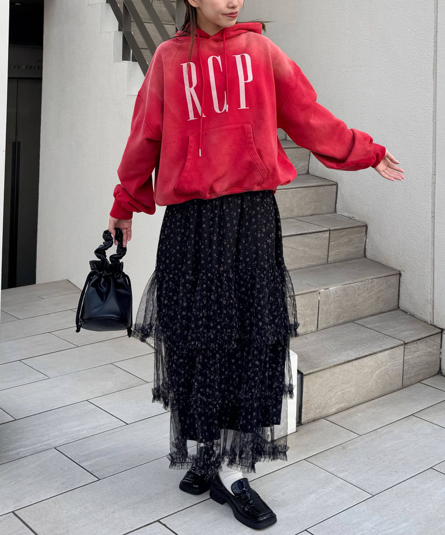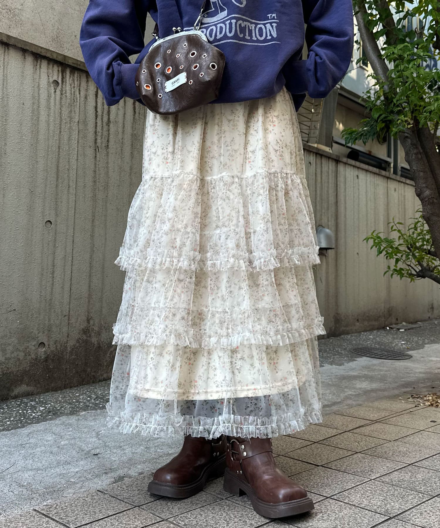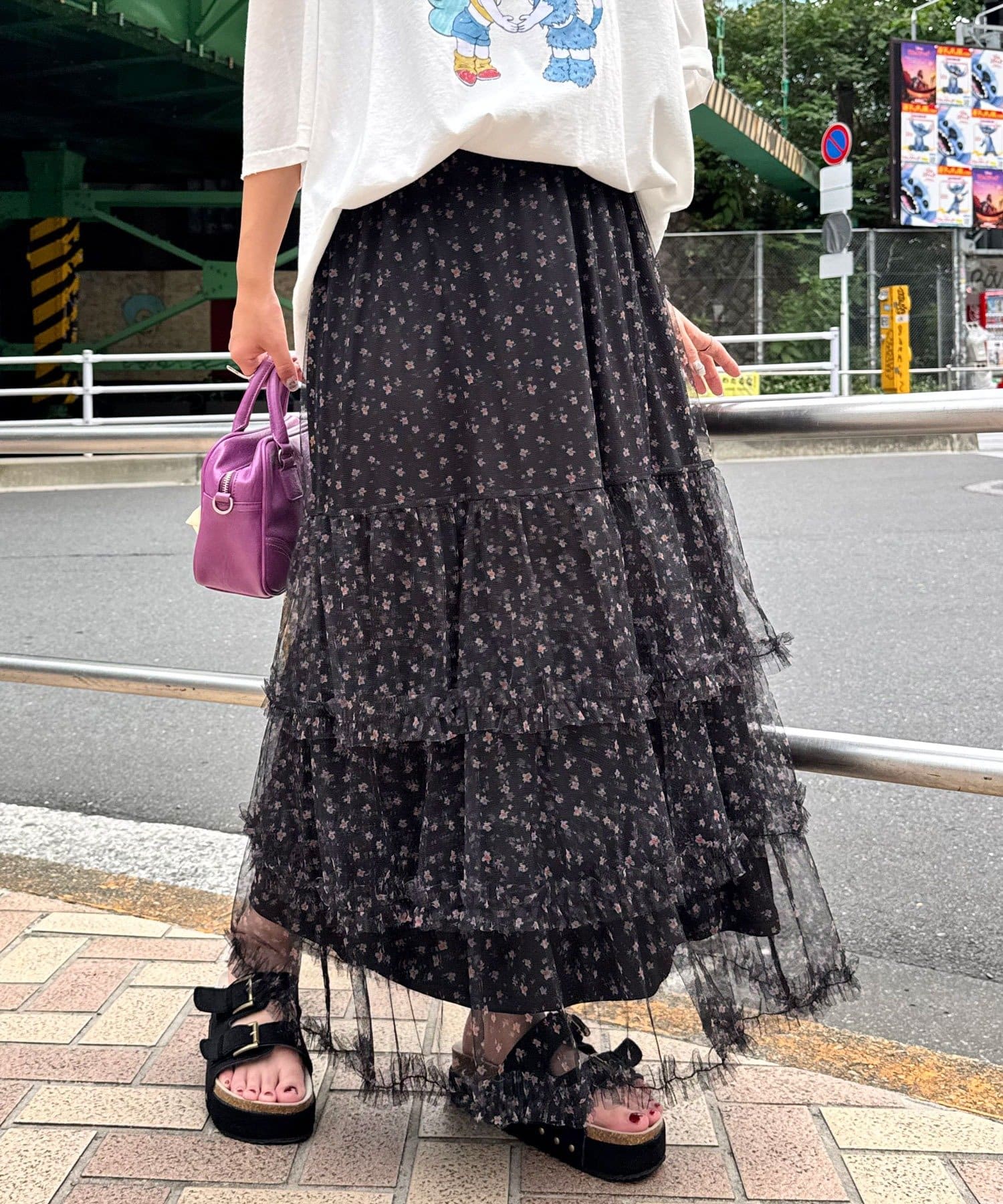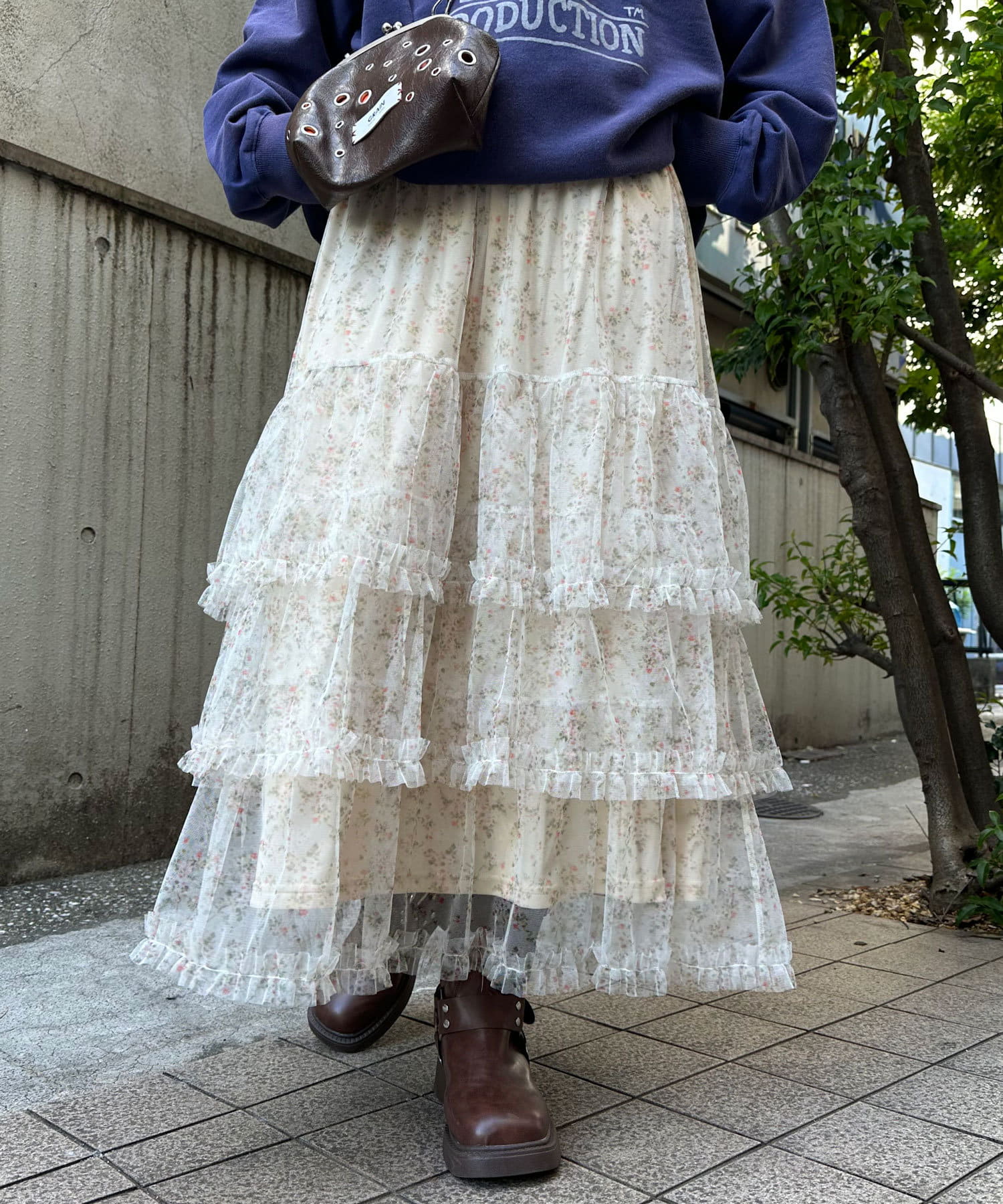歩くたびにふわっと広がるチュールティアードスカート