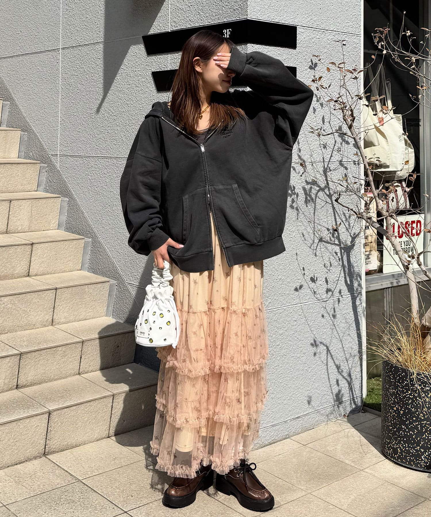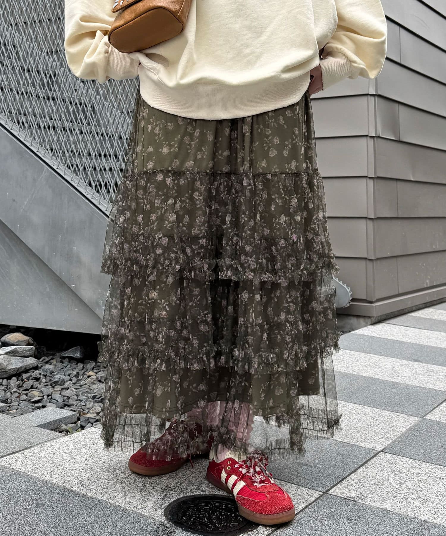 裾にかけて広がるティアードスカートはインスタイル・アウトスタイルどちらでも決まる着回し抜群なアイテムです。