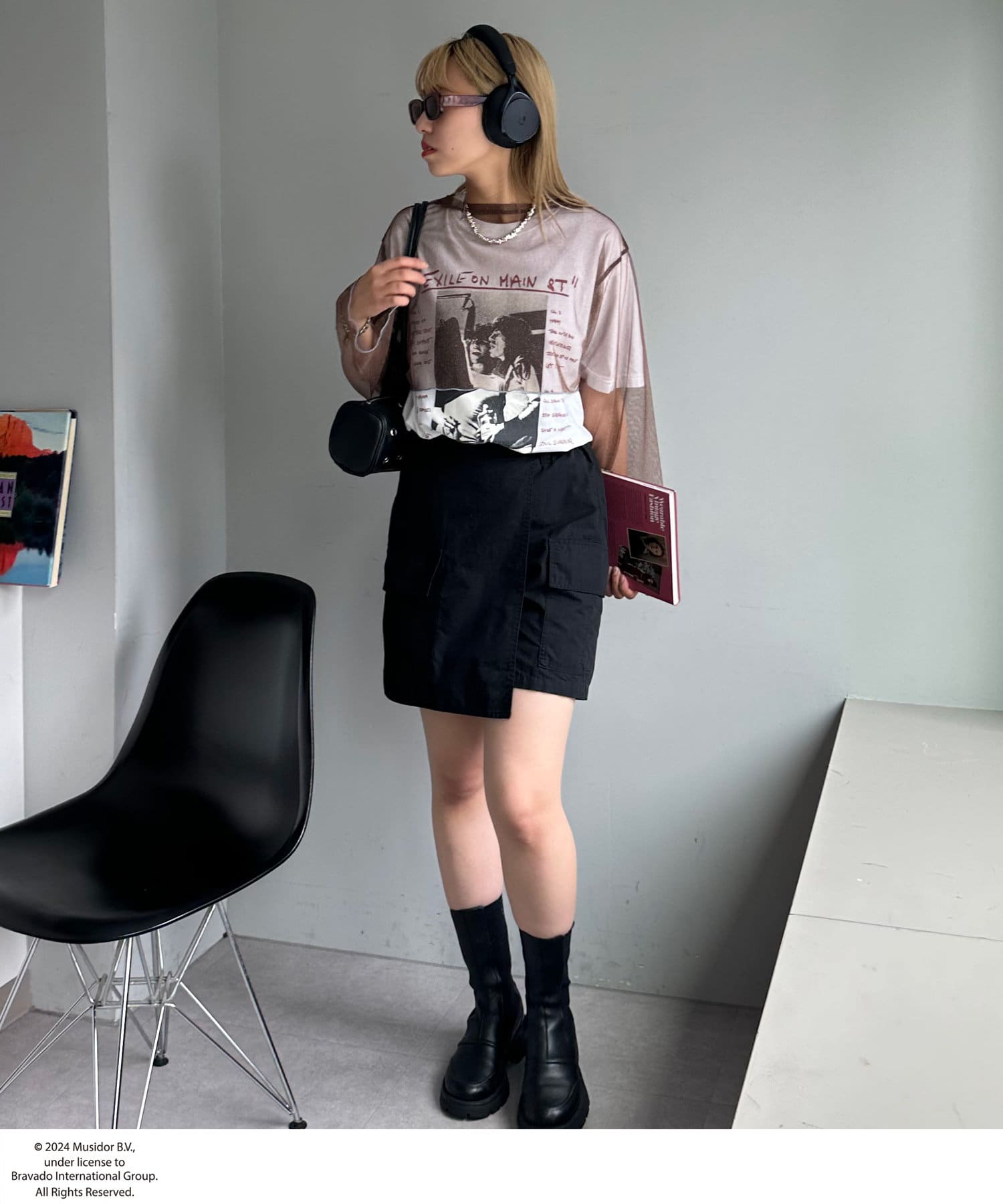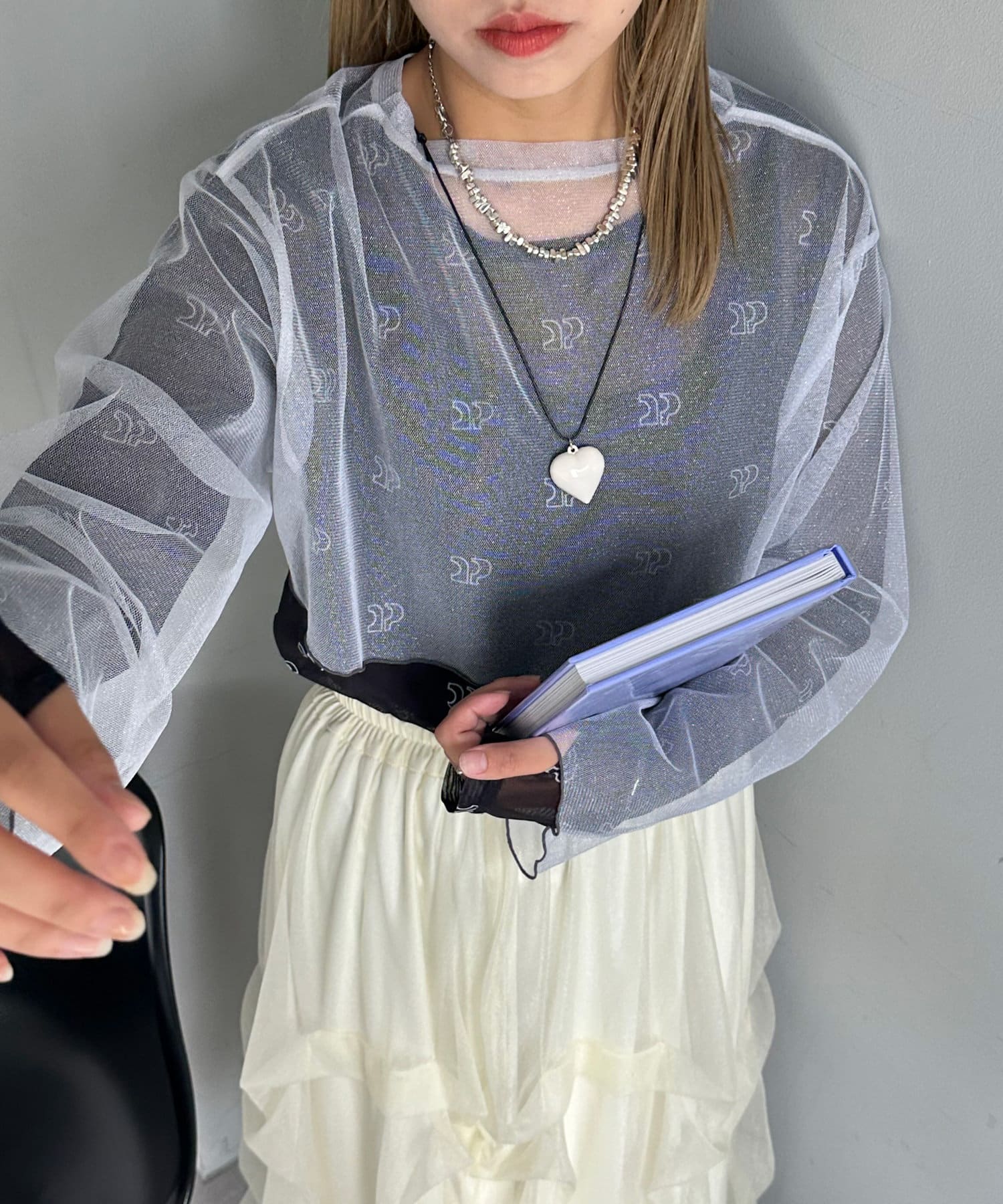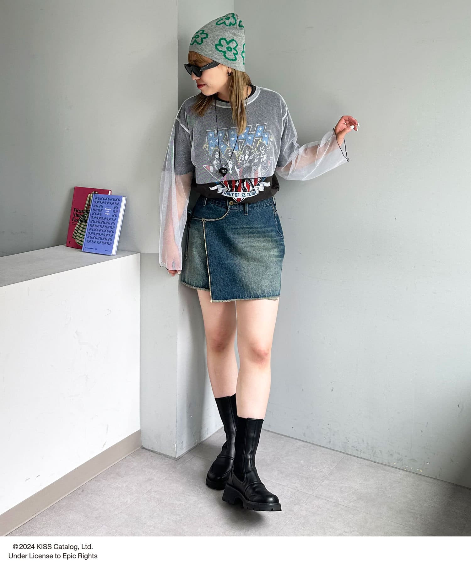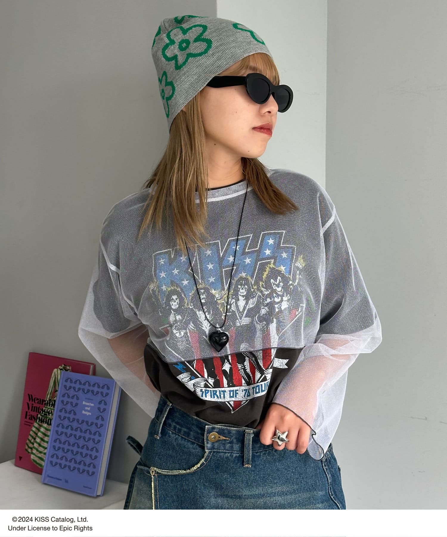 完全に下に着ているものが透ける素材なので、Tシャツなどのトップスの柄を活かしたコーディネートに。