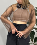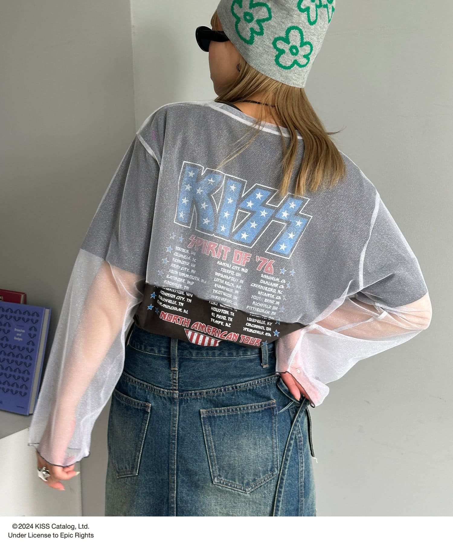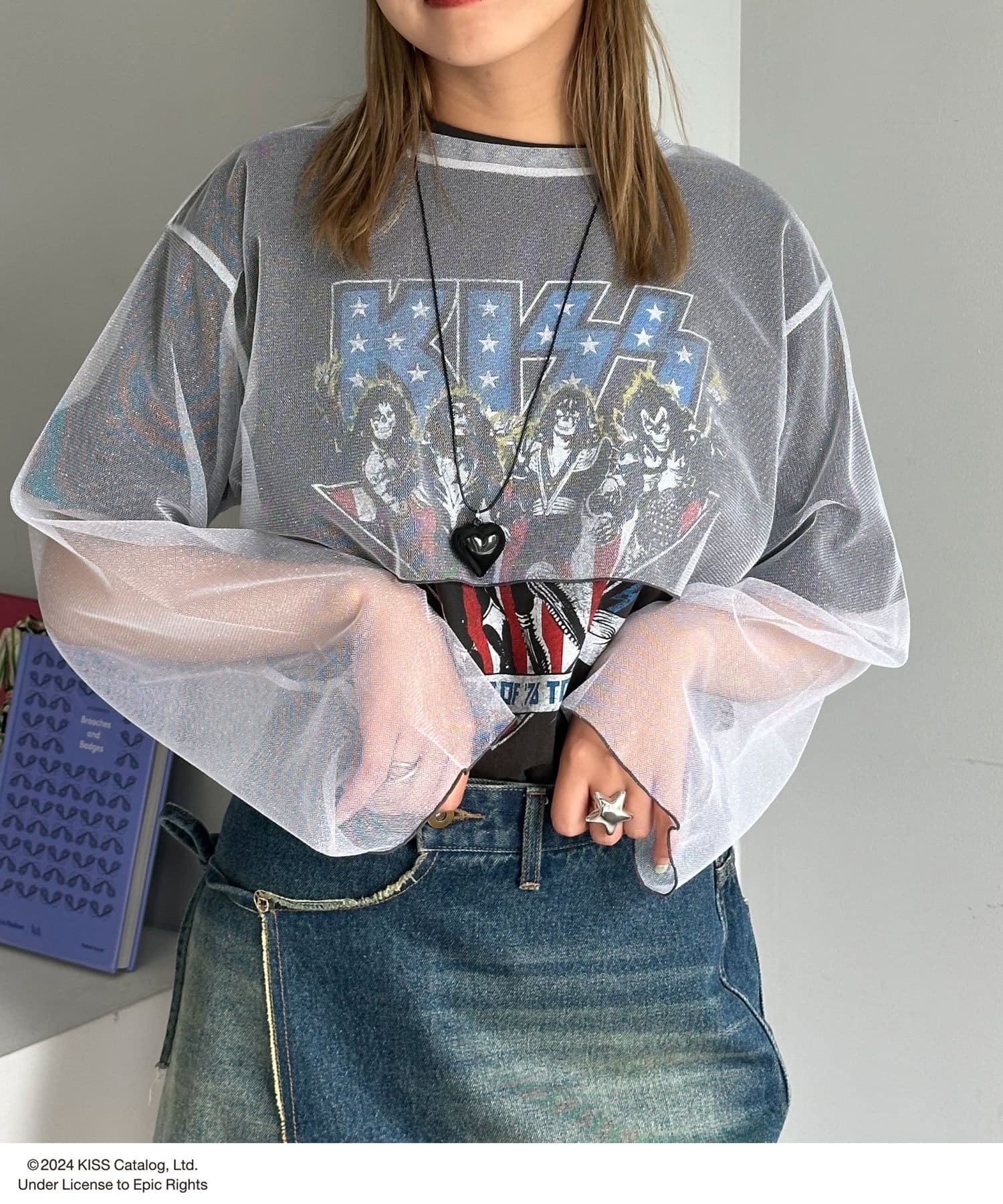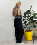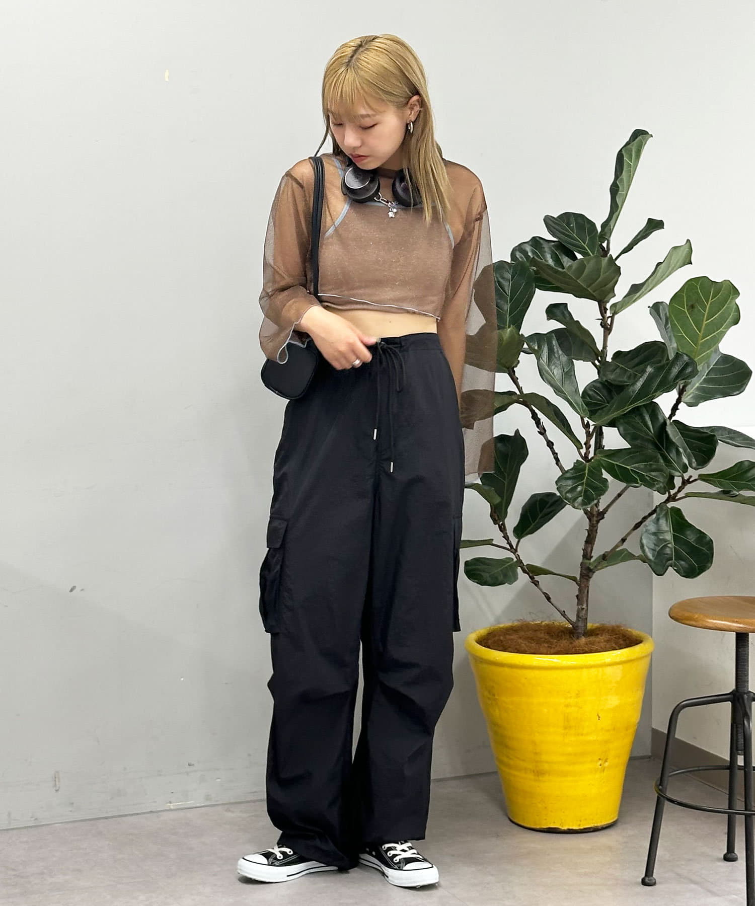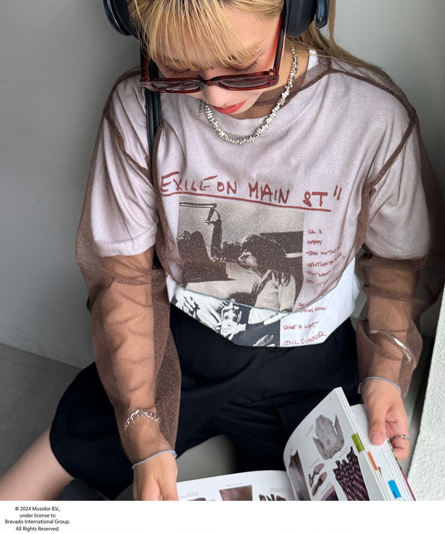 完全に下に着ているものが透ける素材なので、Tシャツなどのトップスの柄を活かしたコーディネートに。