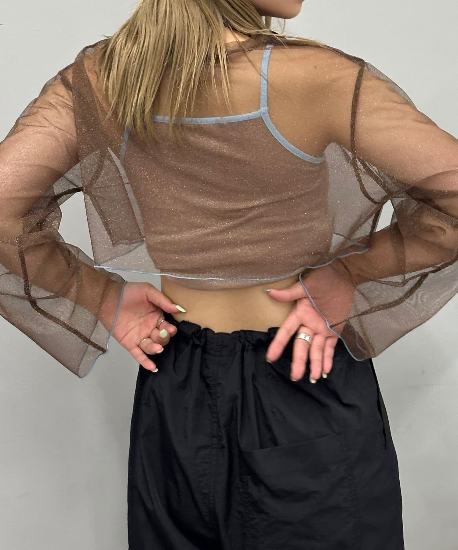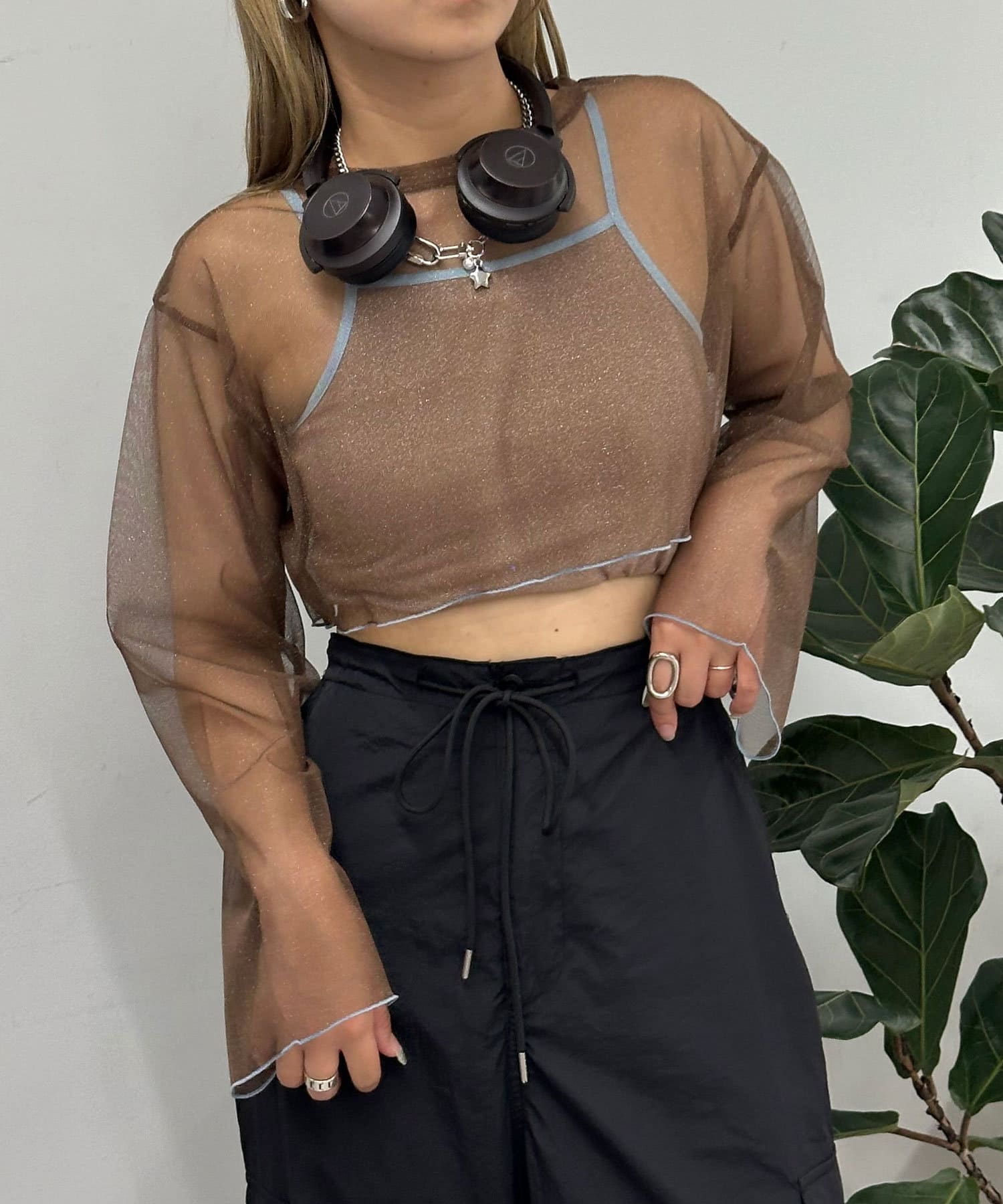 レイヤードが楽しめるショート丈ラメクルーシアートップス