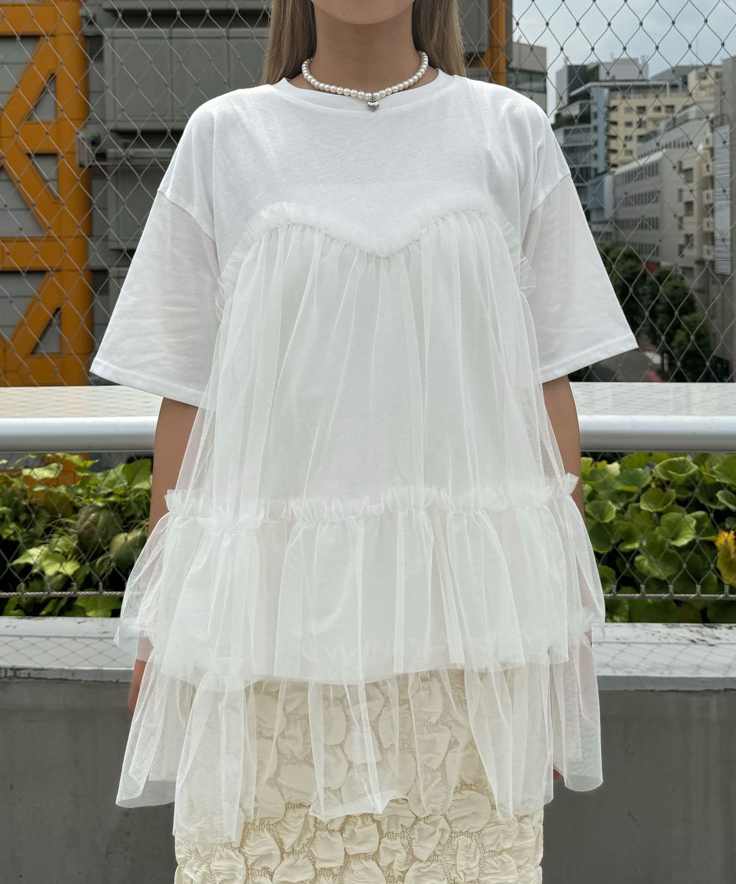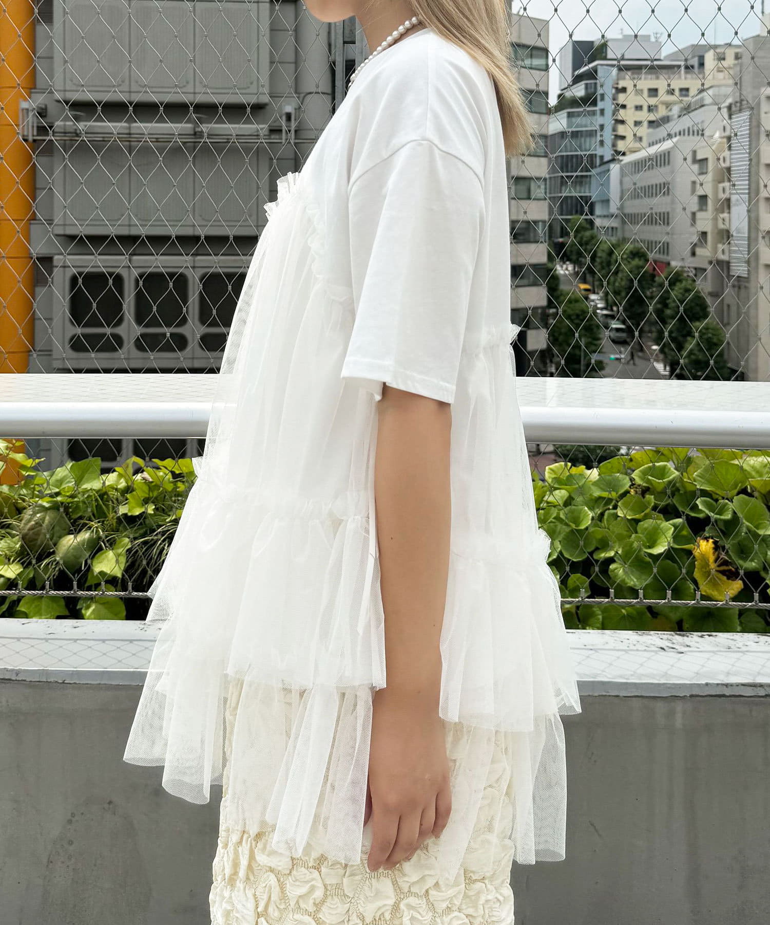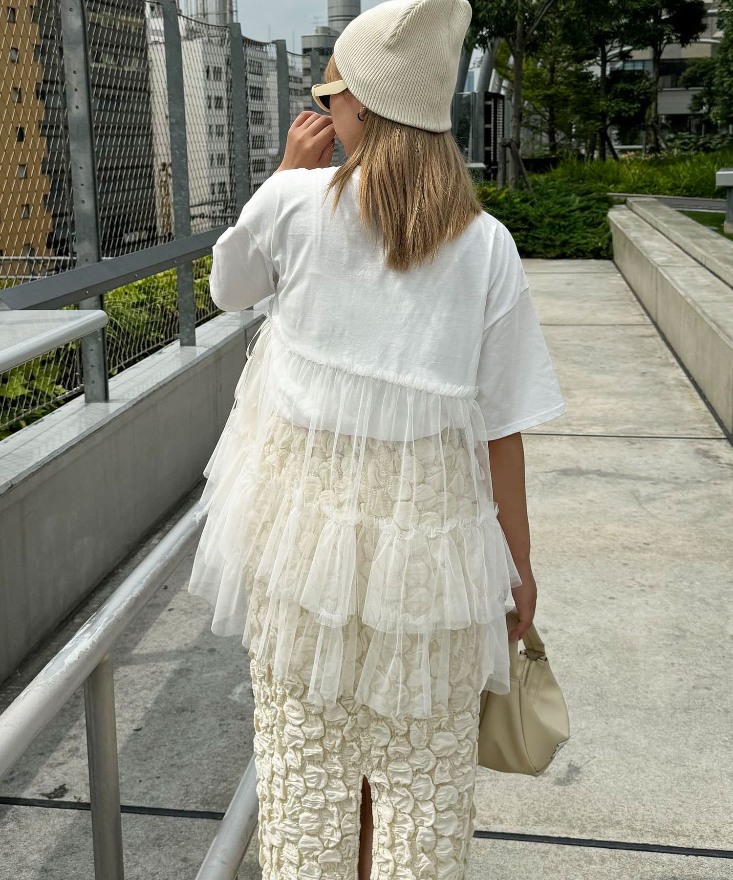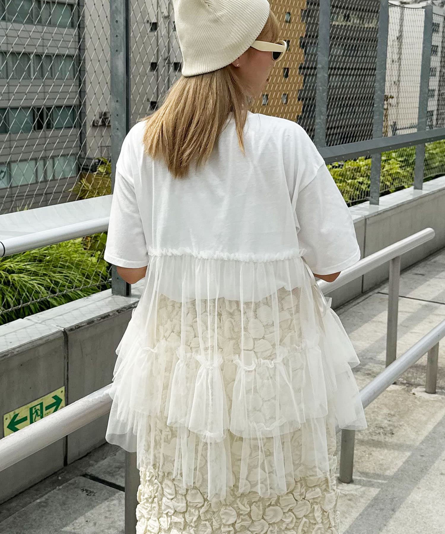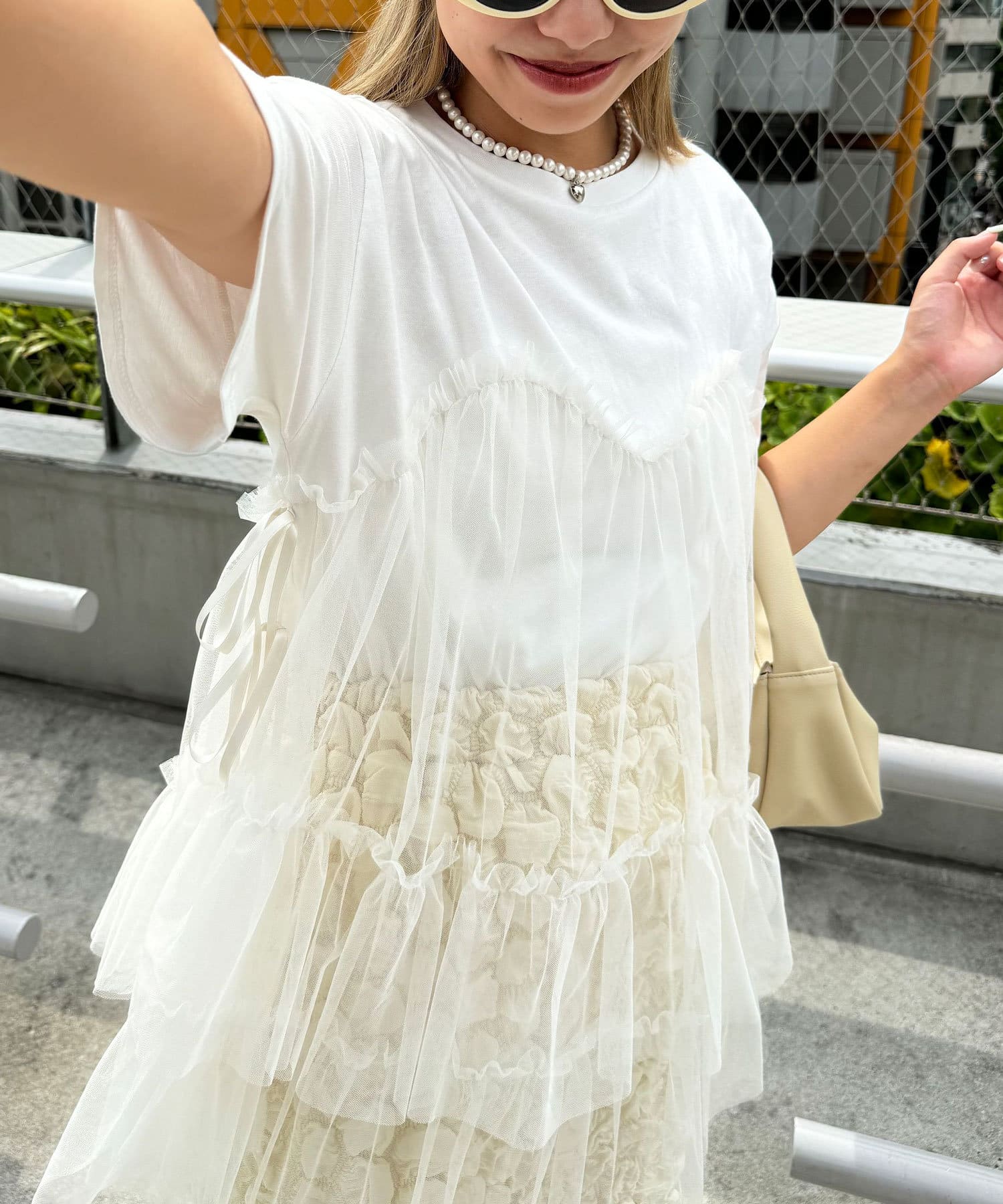 チュール素材がエアリーで女性らしさを演出してくれます。