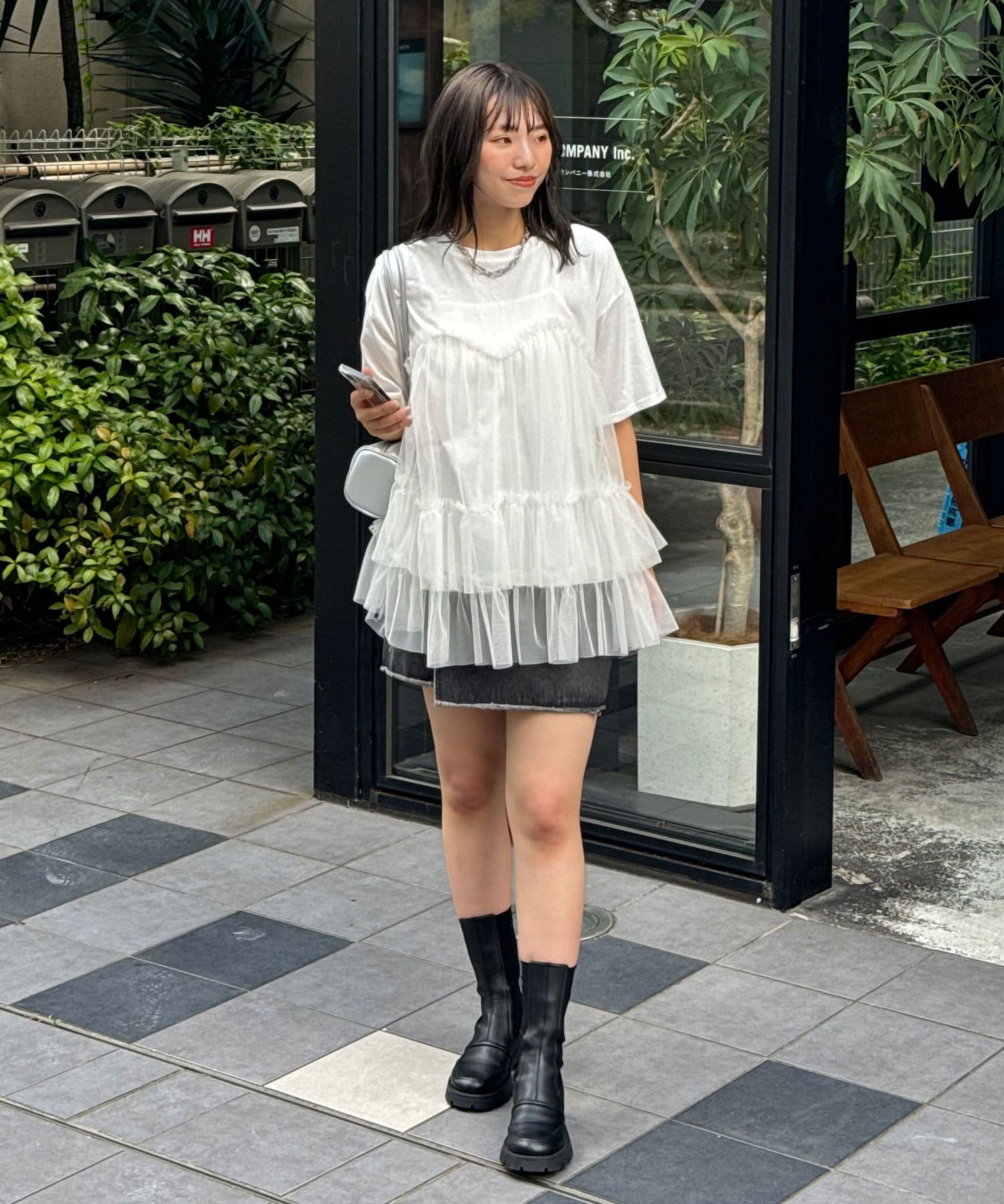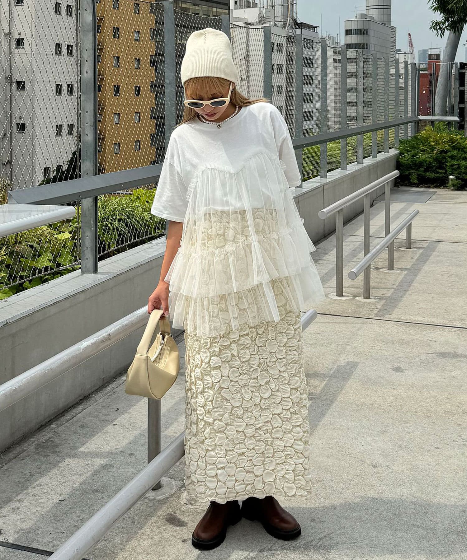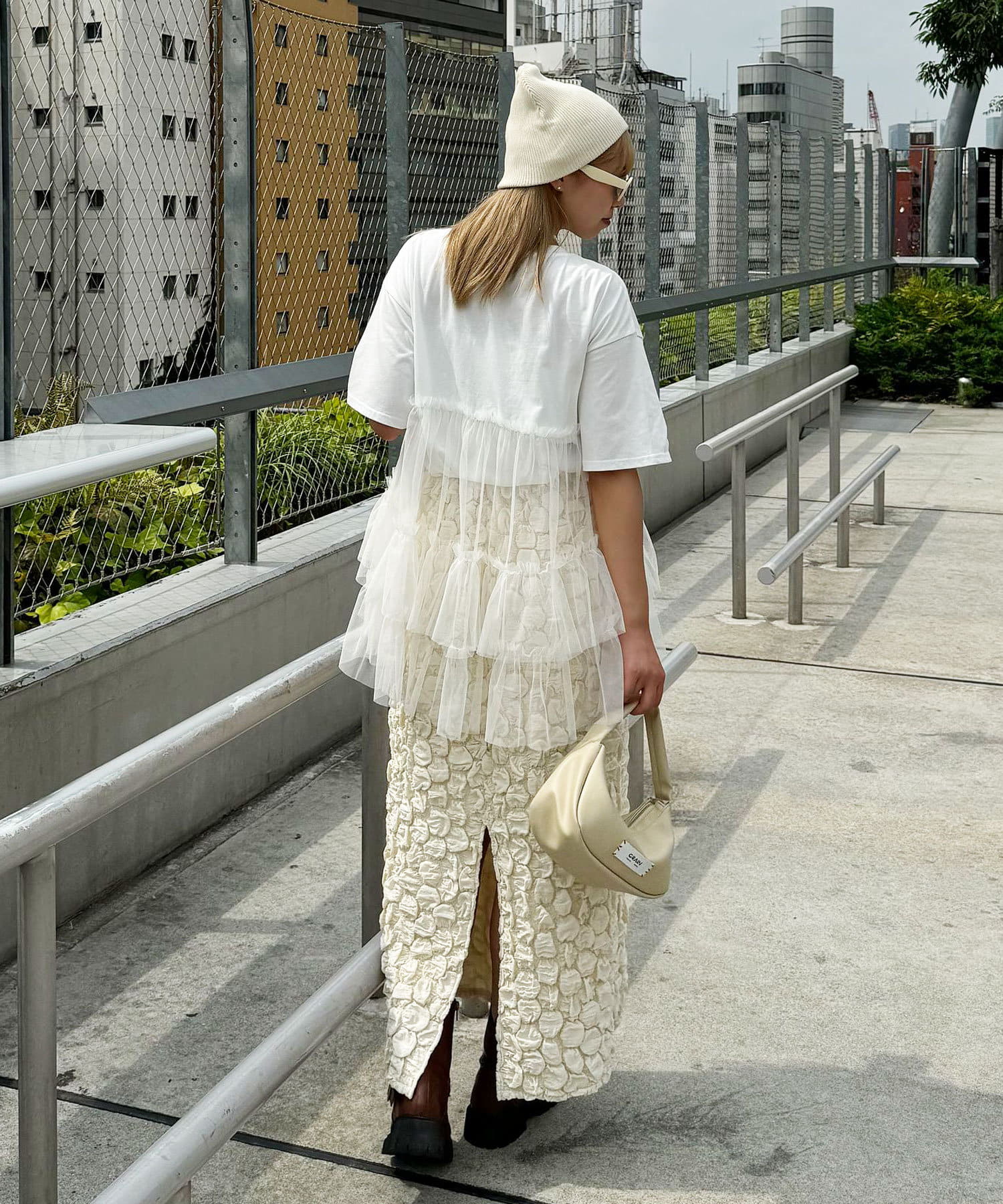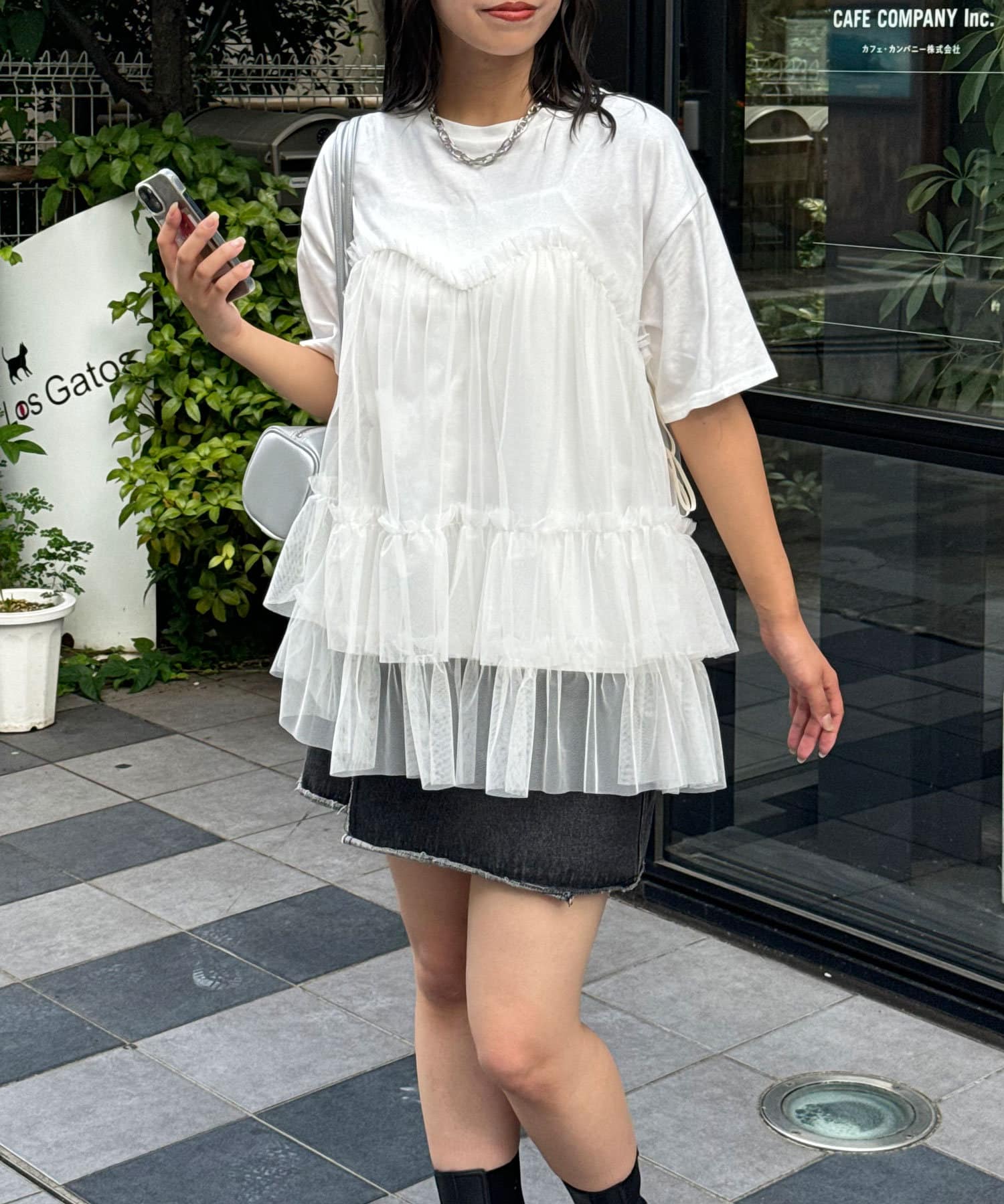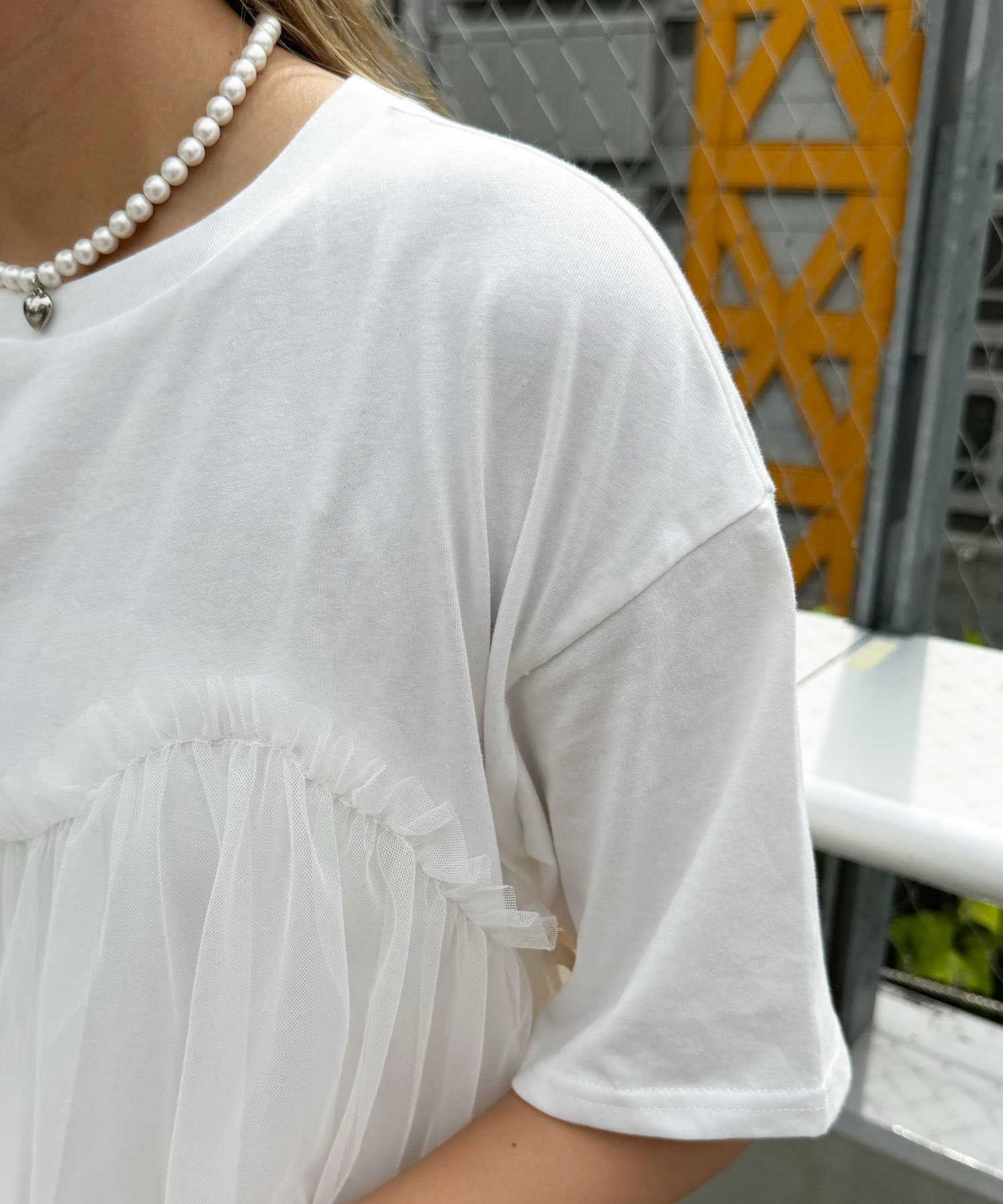 チュール素材がエアリーで女性らしさを演出してくれます。