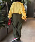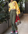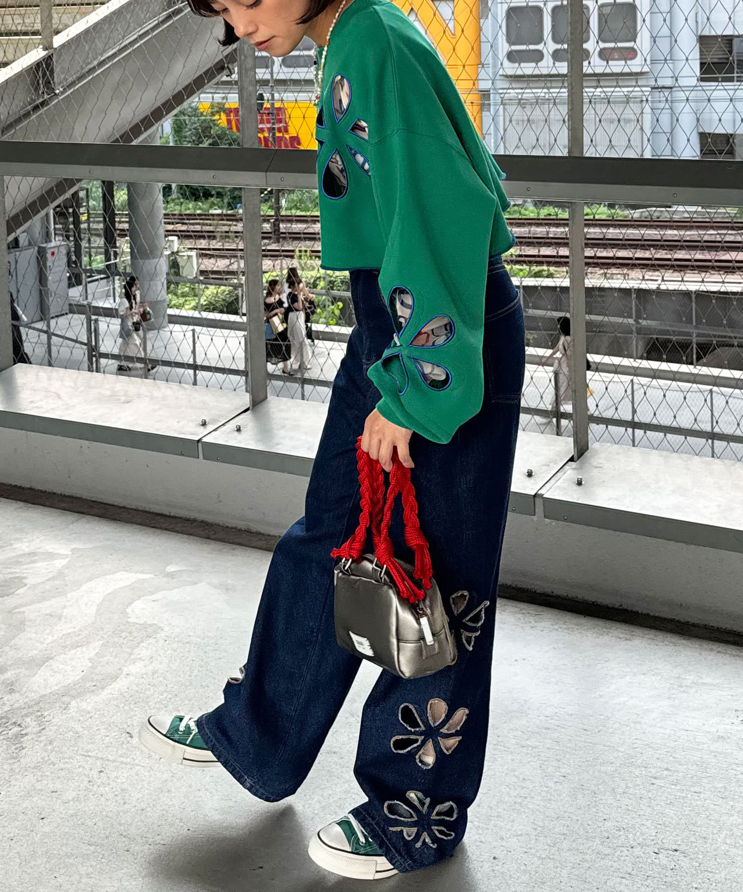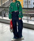 ボトムスはデニムパンツ合わせでカジュアルに、スカート合わせでガーリーな着こなしまで幅広く着まわせます。
