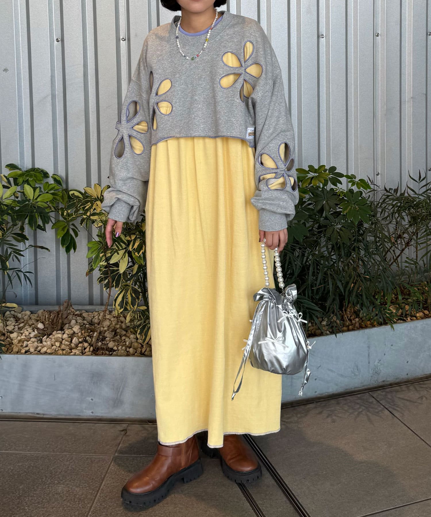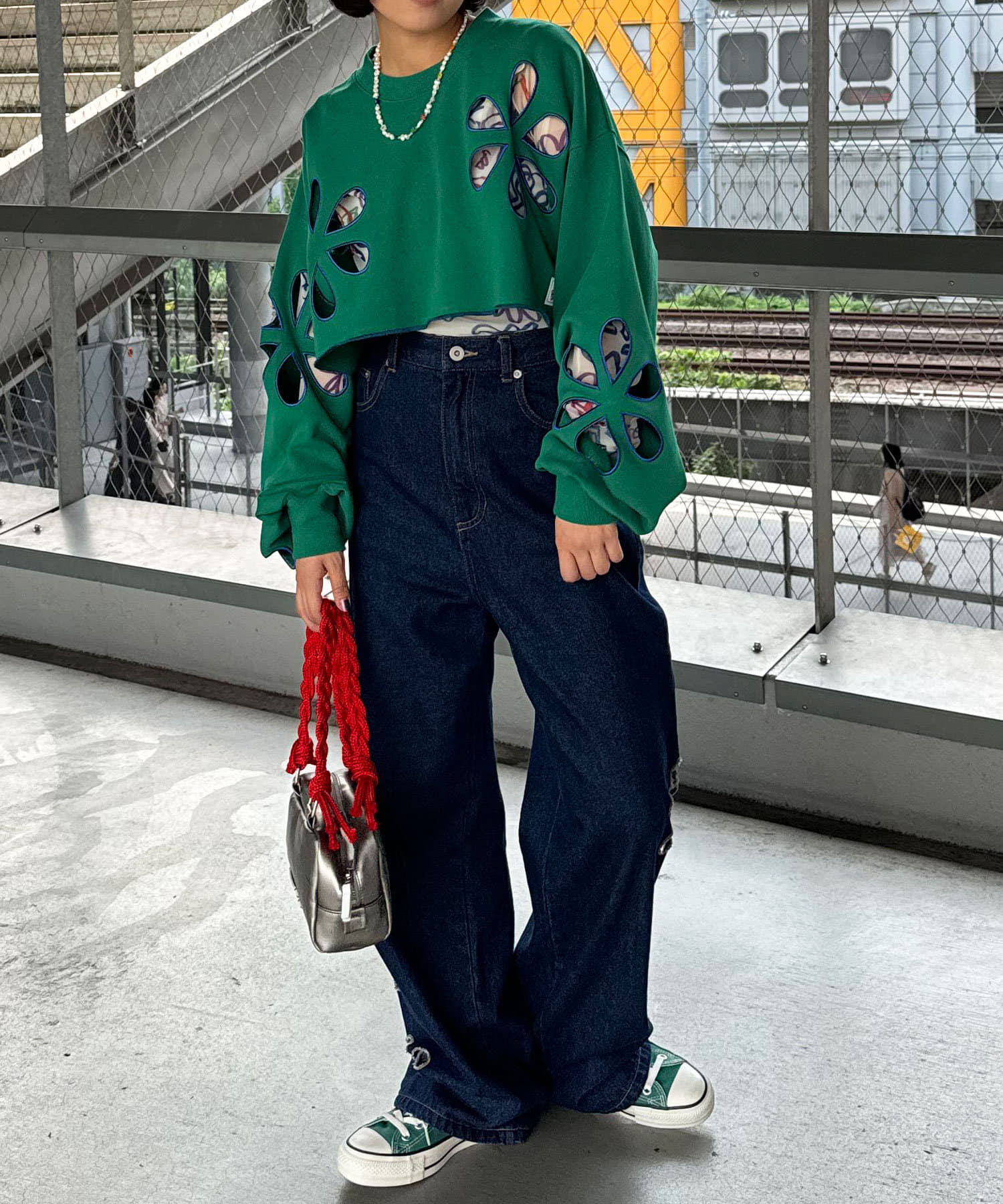 【HELLO.SANFRANCISCO/ハローサンフランシスコ】フラワーカットアウトクロップドスウェット