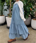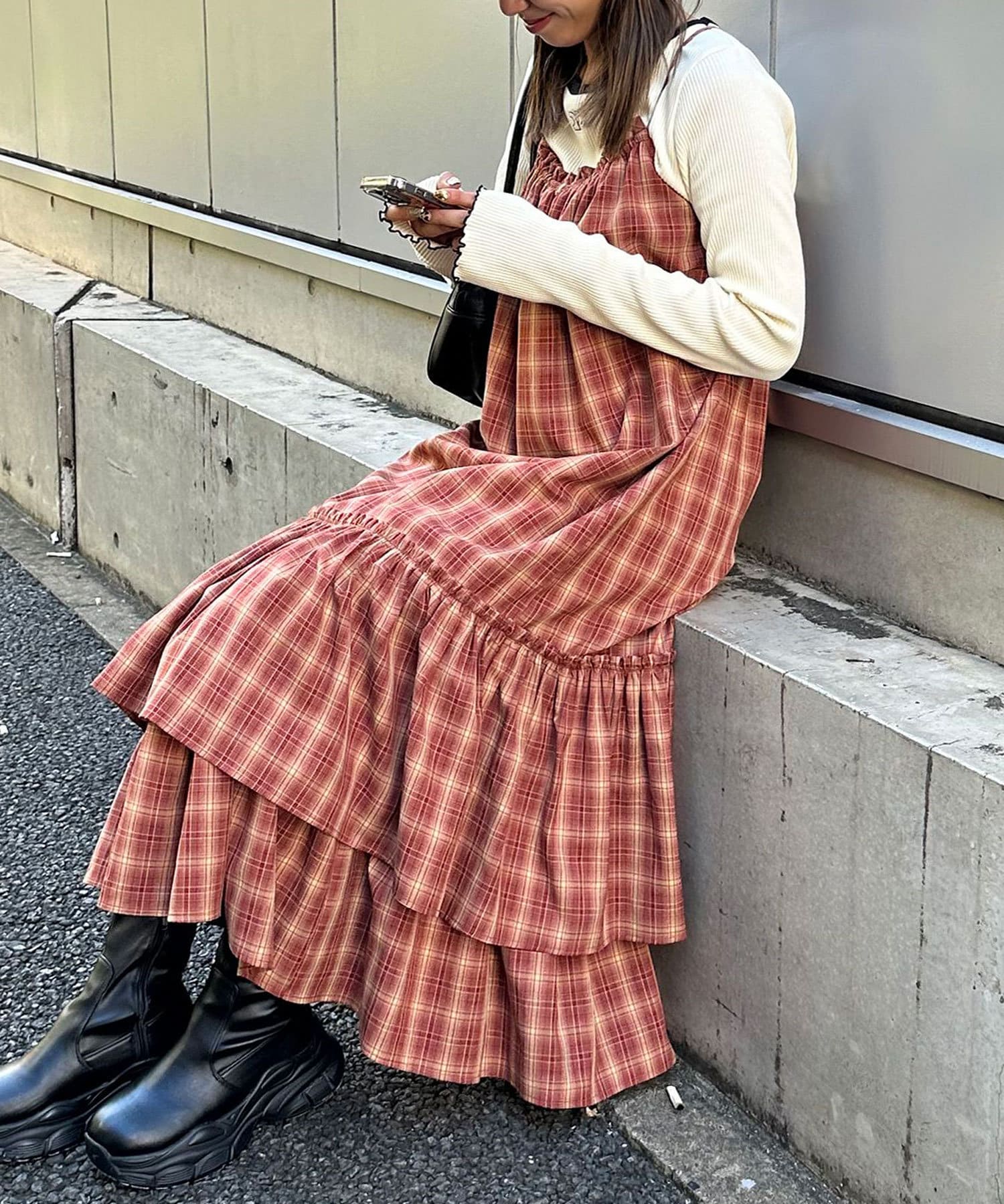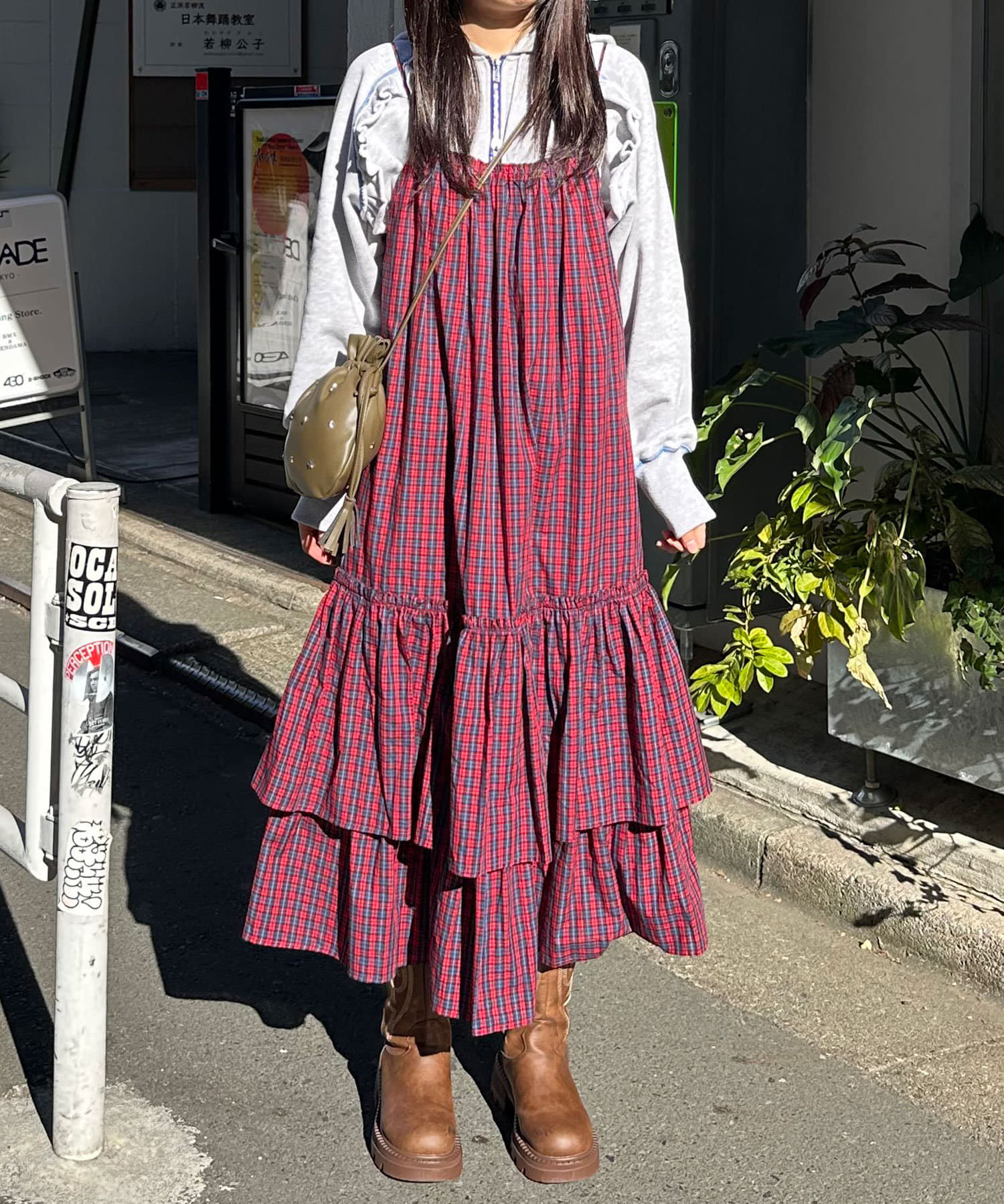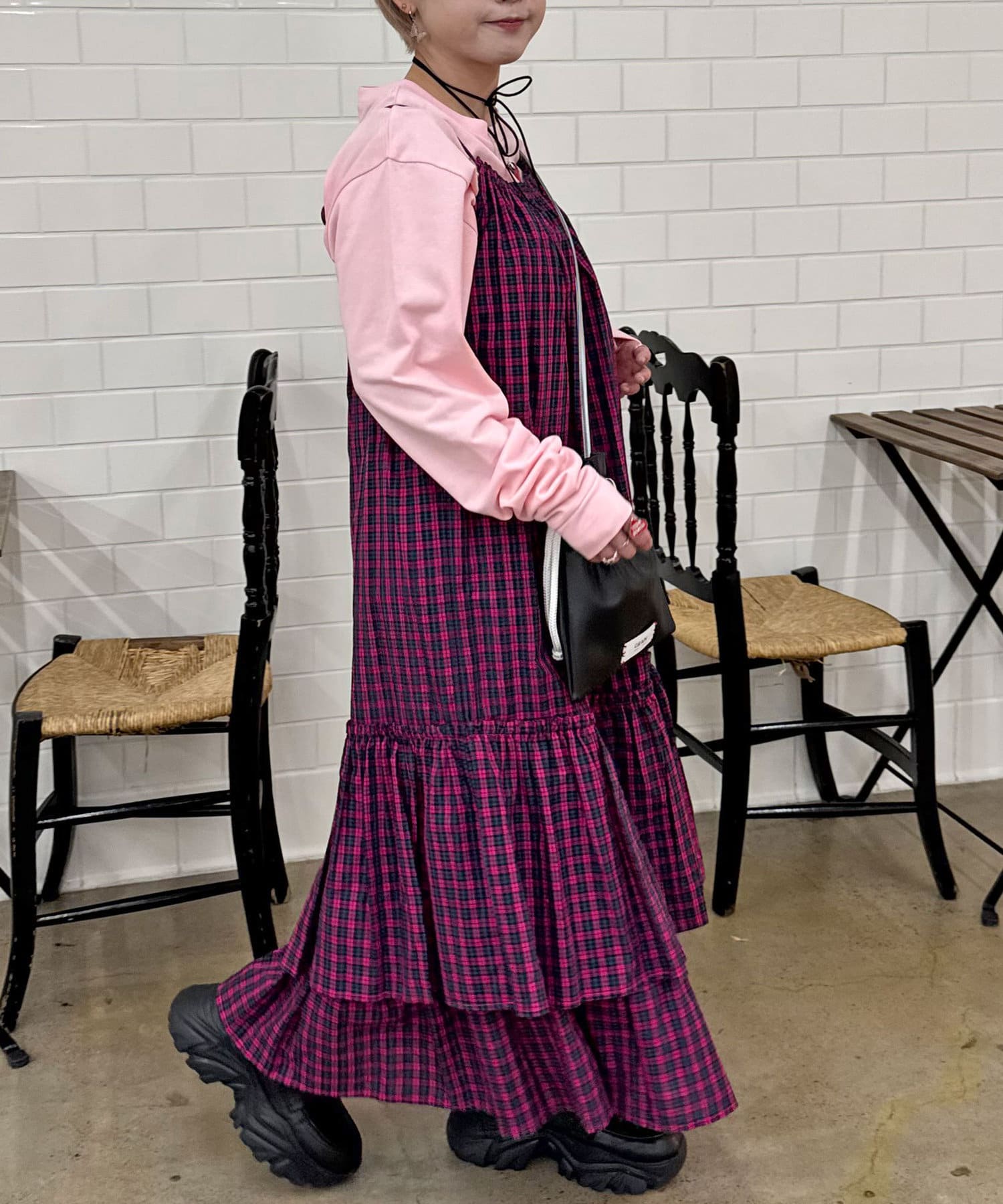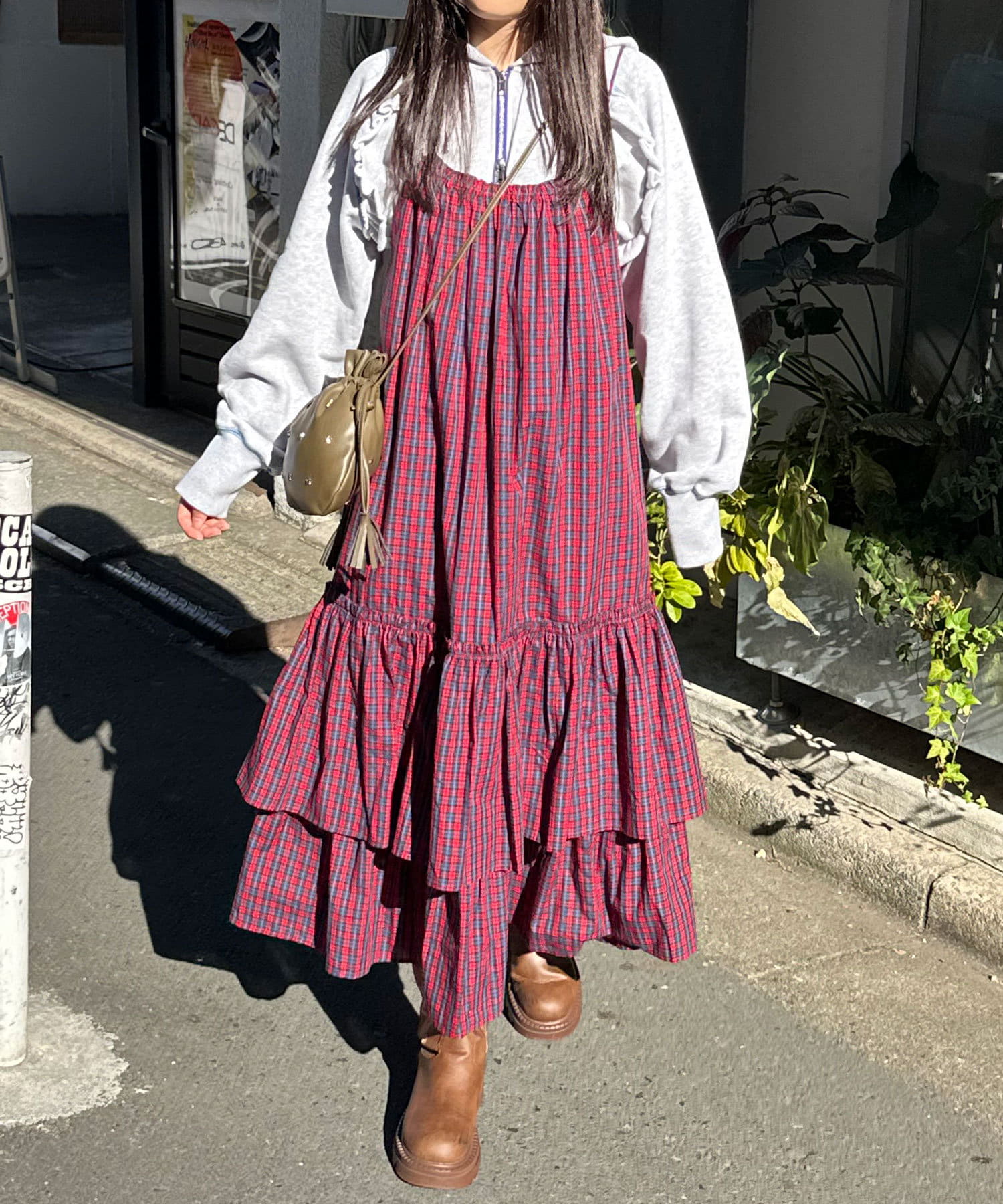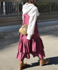 ワンピースの上にパーカーやジャケットを重ねて、スカート風に仕上げたレイヤードコーデもおすすめ◎