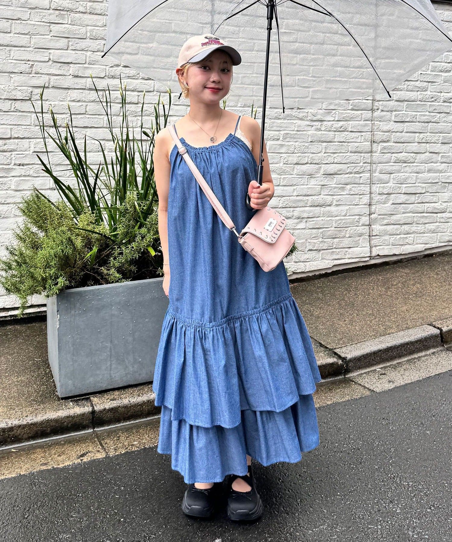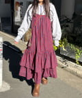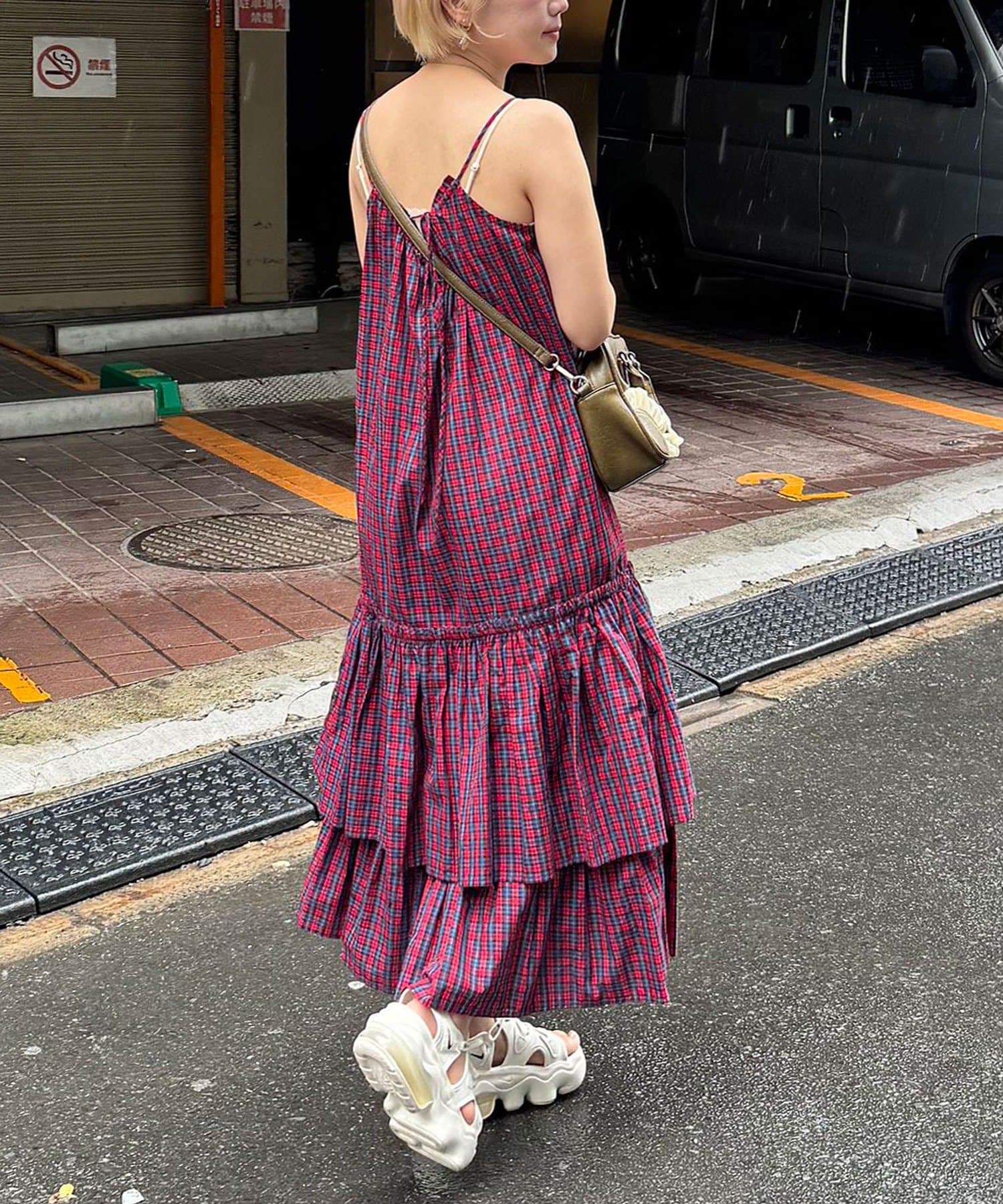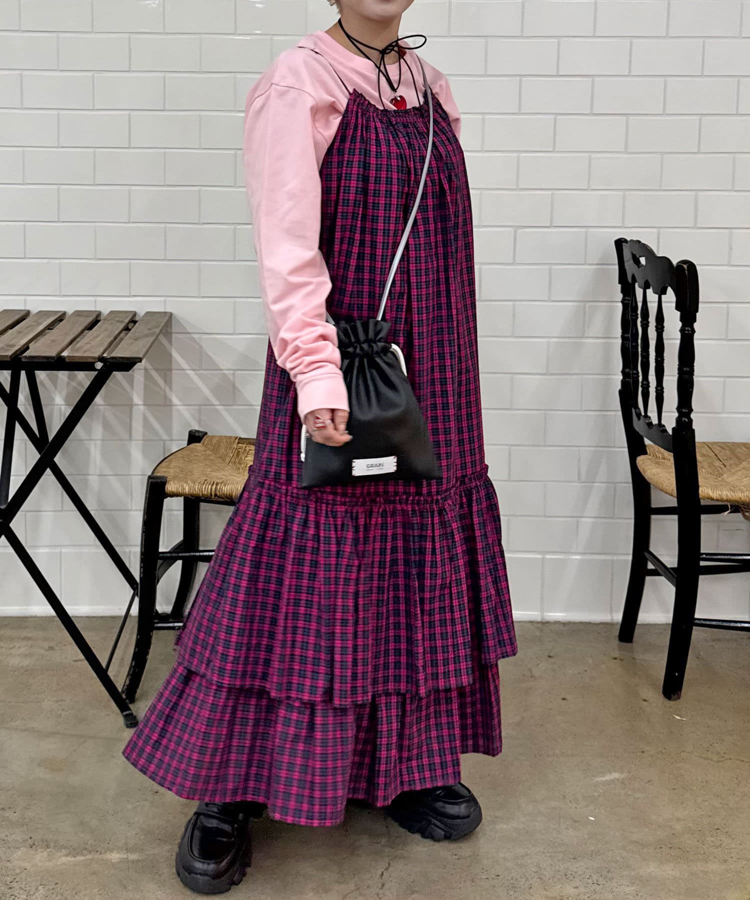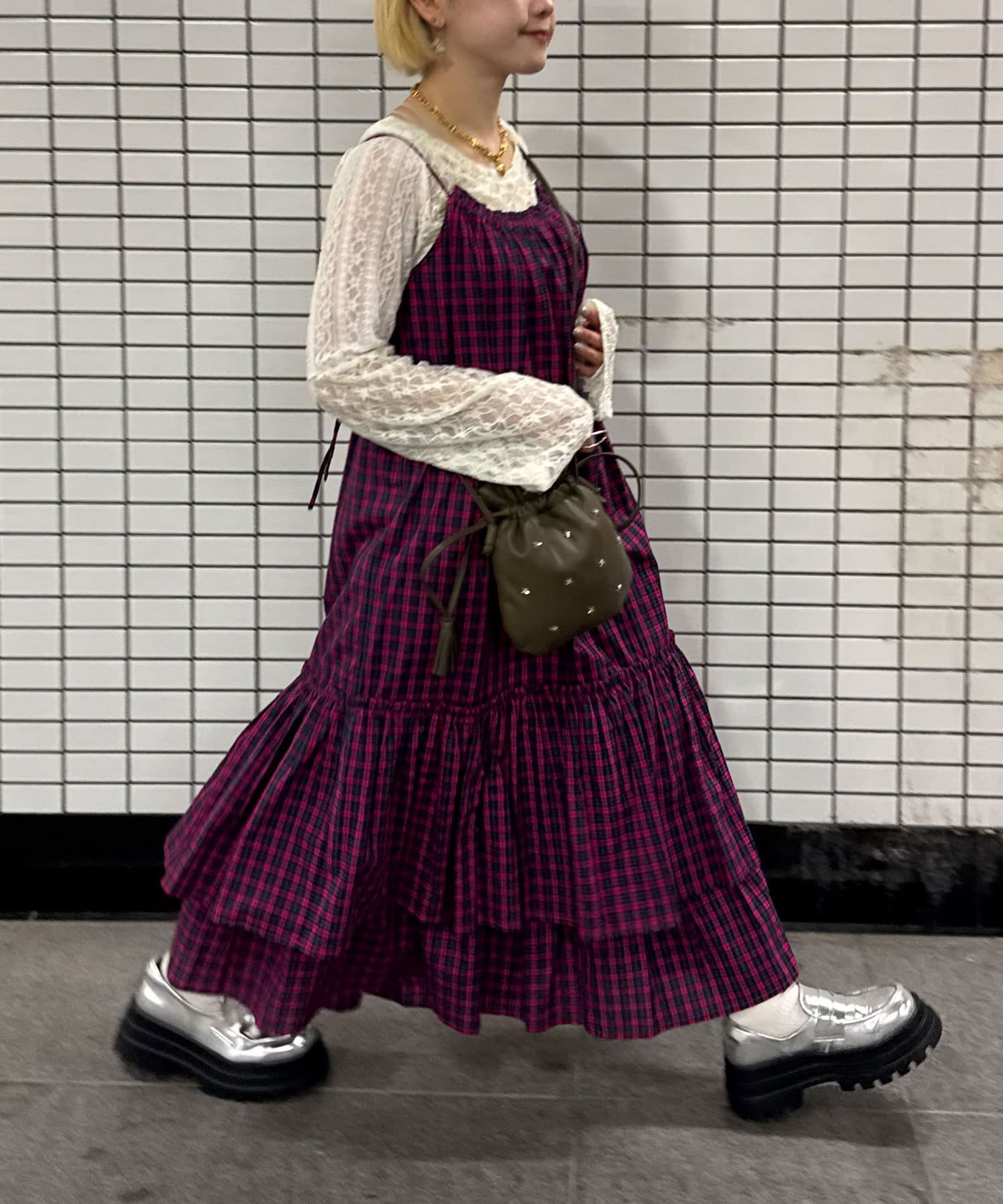 フロントのギャザーを調整すれば、華奢見えが叶う女性らしいシルエットに。