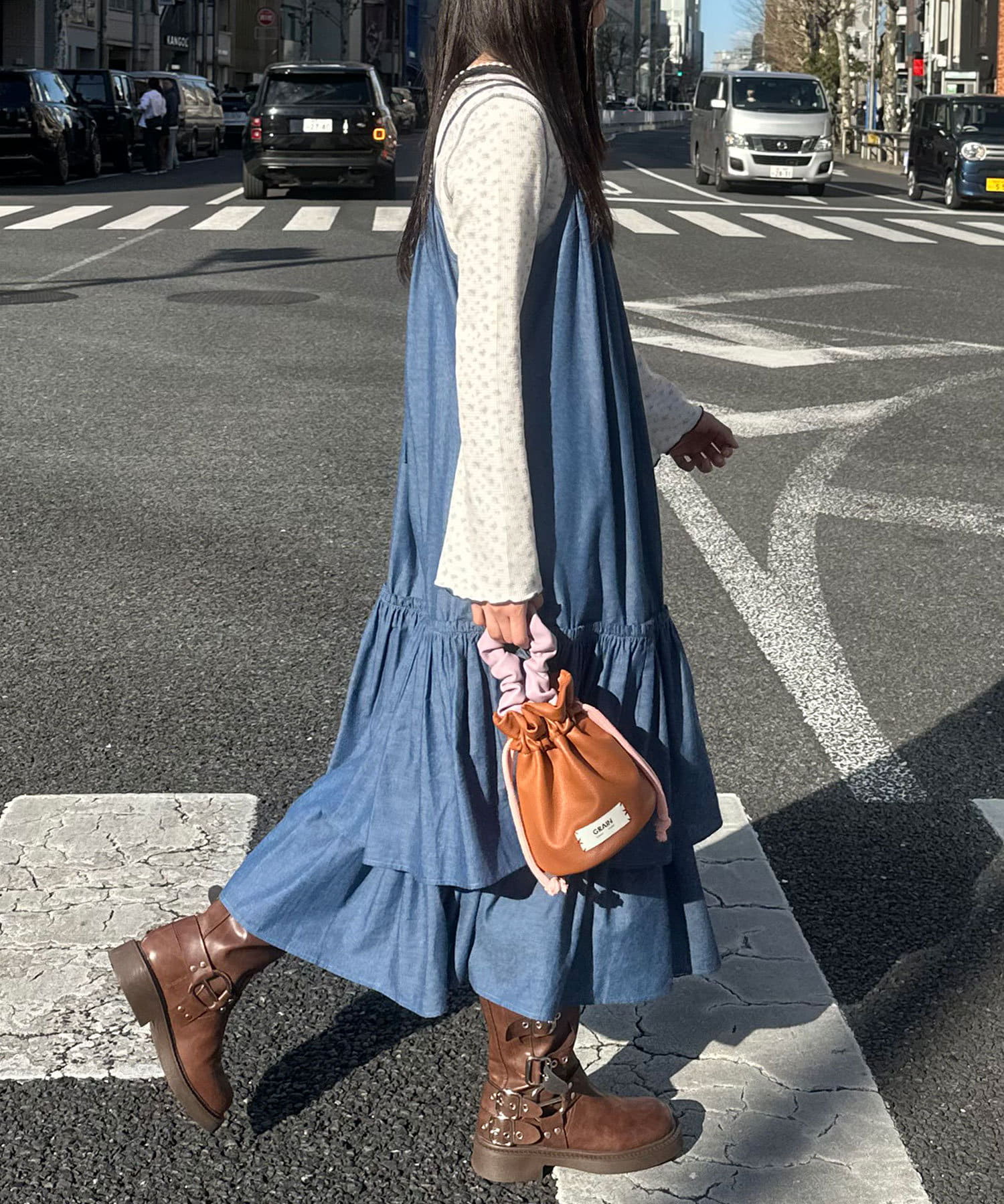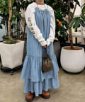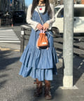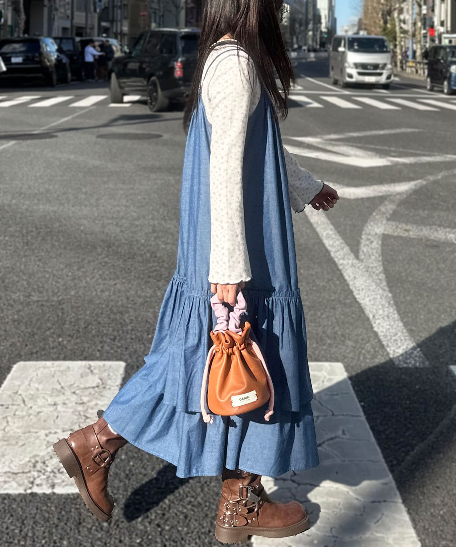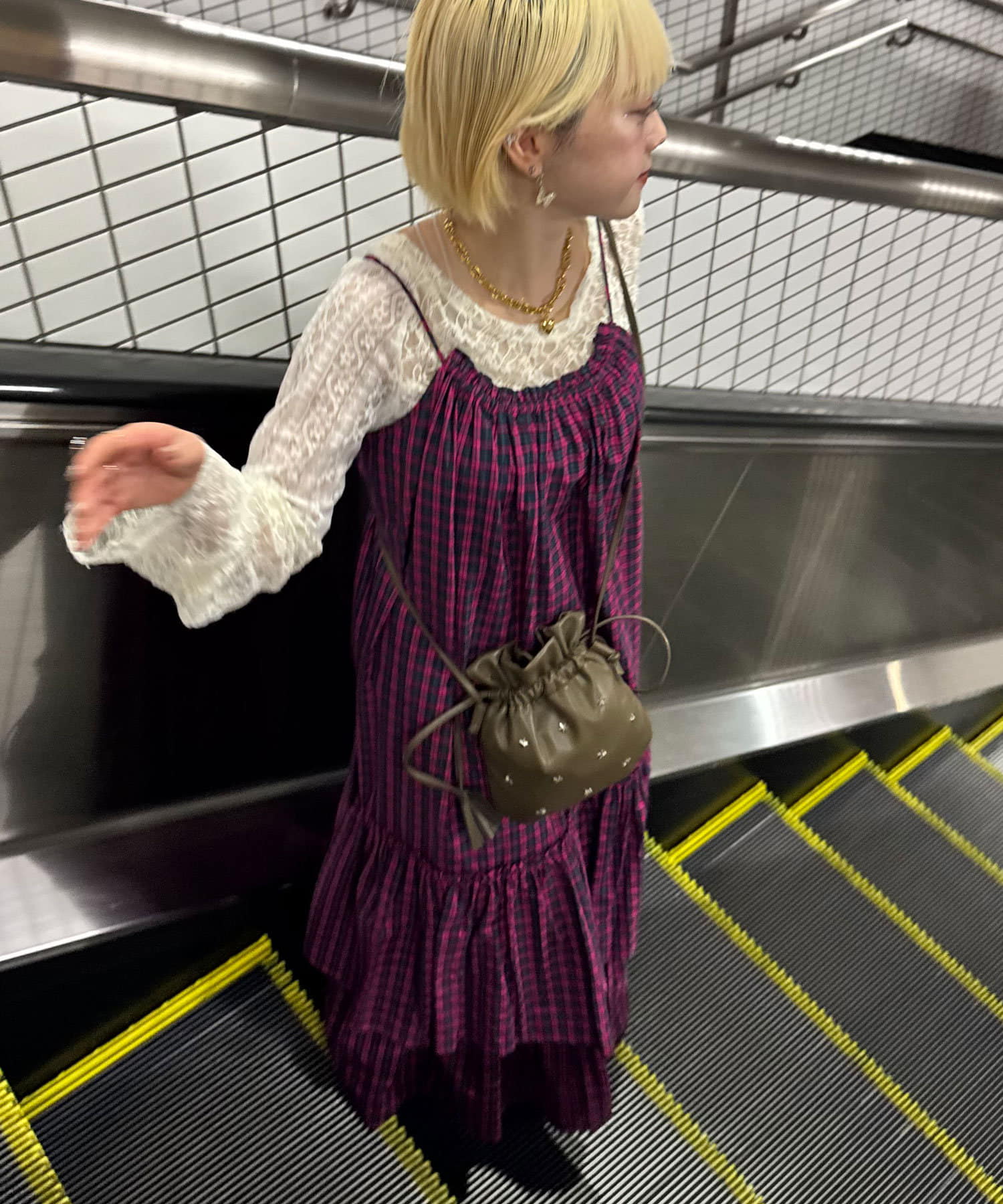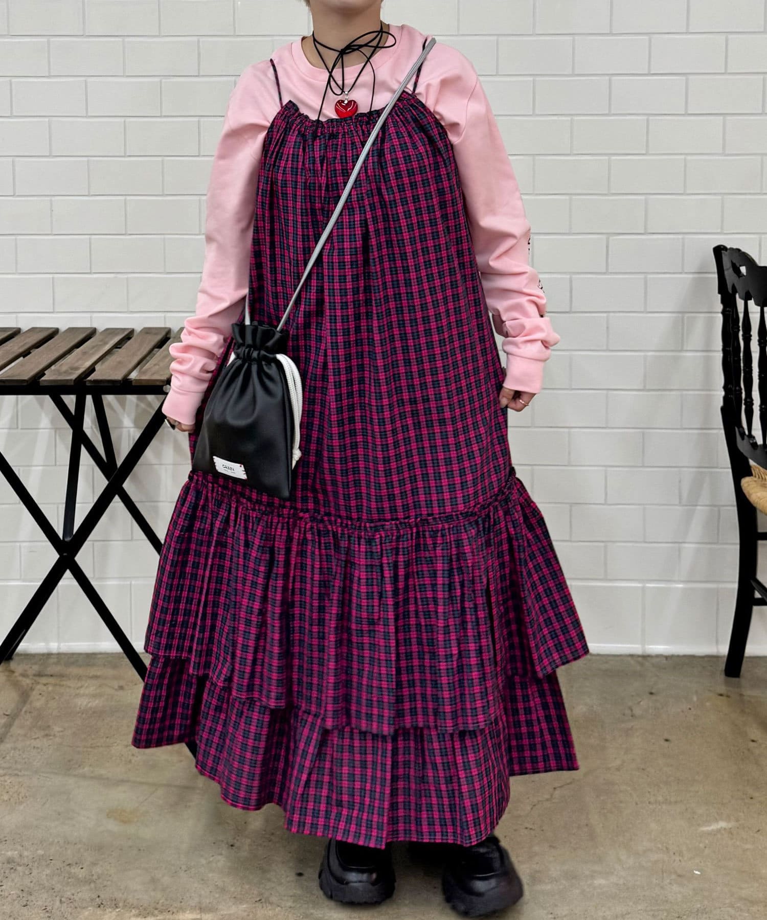 フロントのギャザーを調整すれば、華奢見えが叶う女性らしいシルエットに。