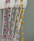 ぷっくりとした立体感のある、お花が連なったデザインのビーズスマホショルダー。