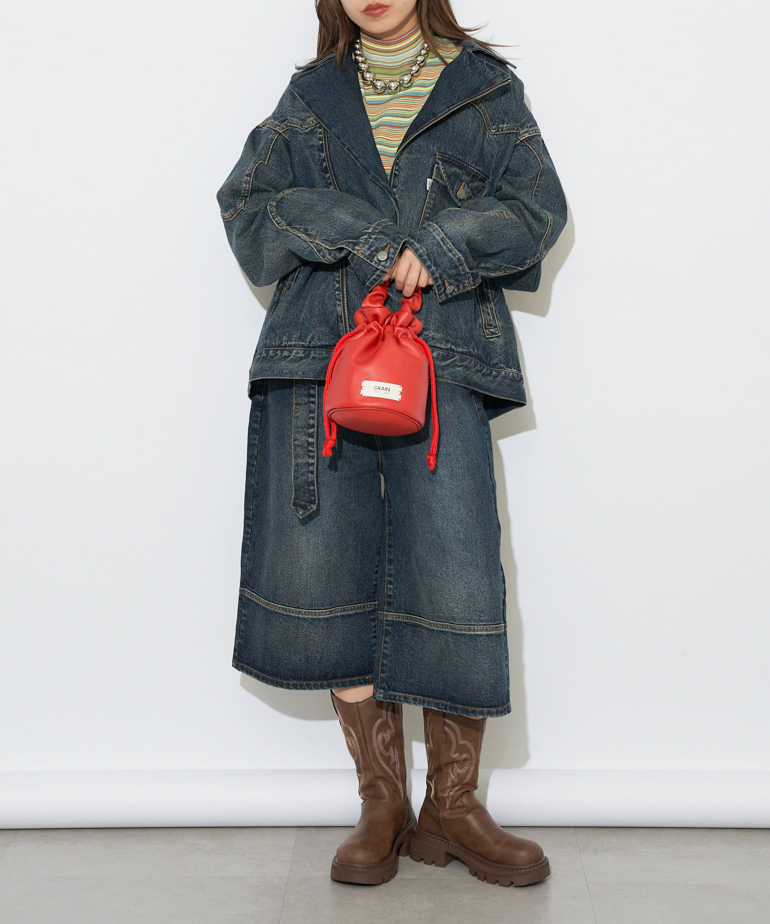 【GRAIN/グレイン】ギャザーハンドル巾着ラウンドバッグ #Loon