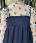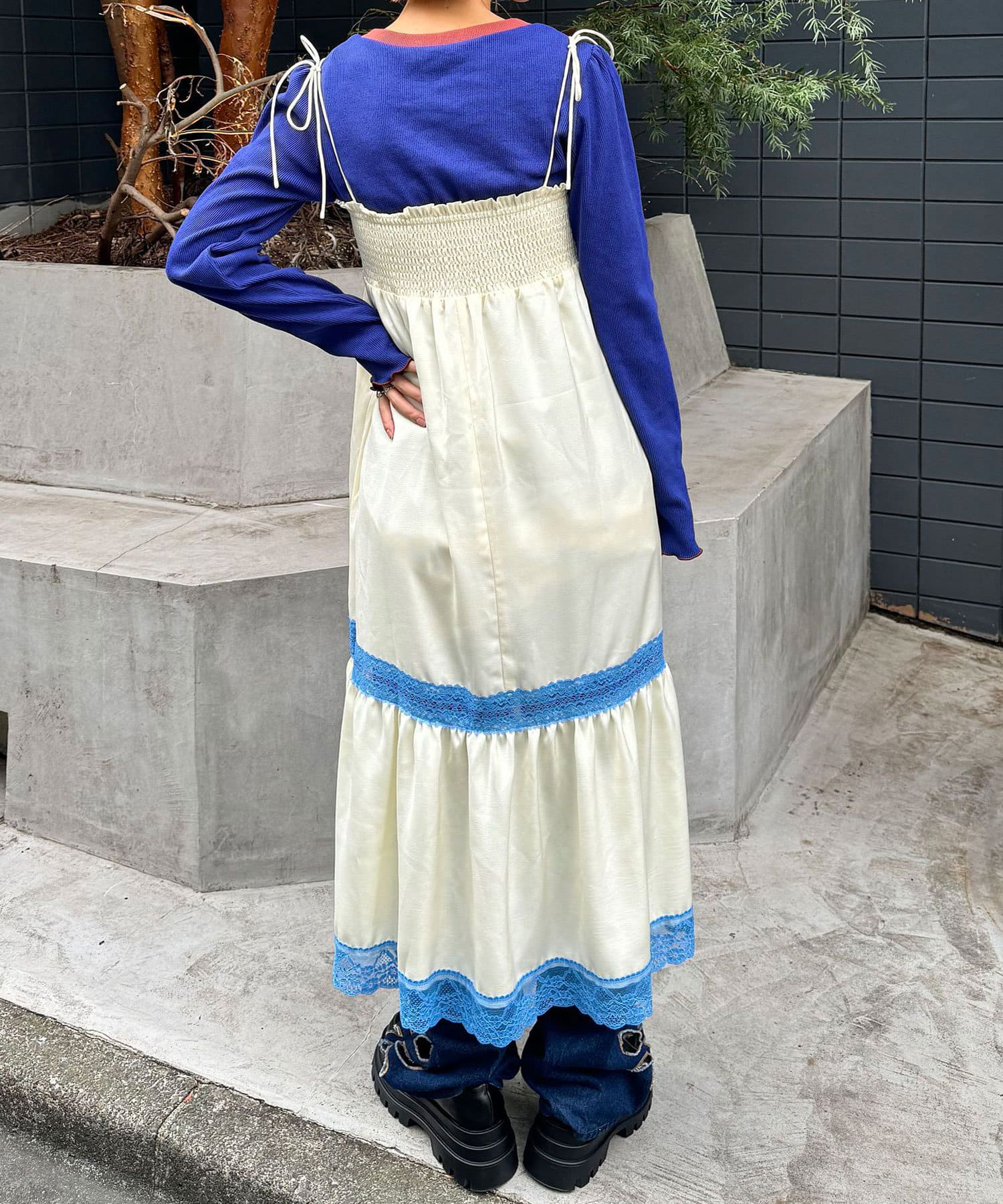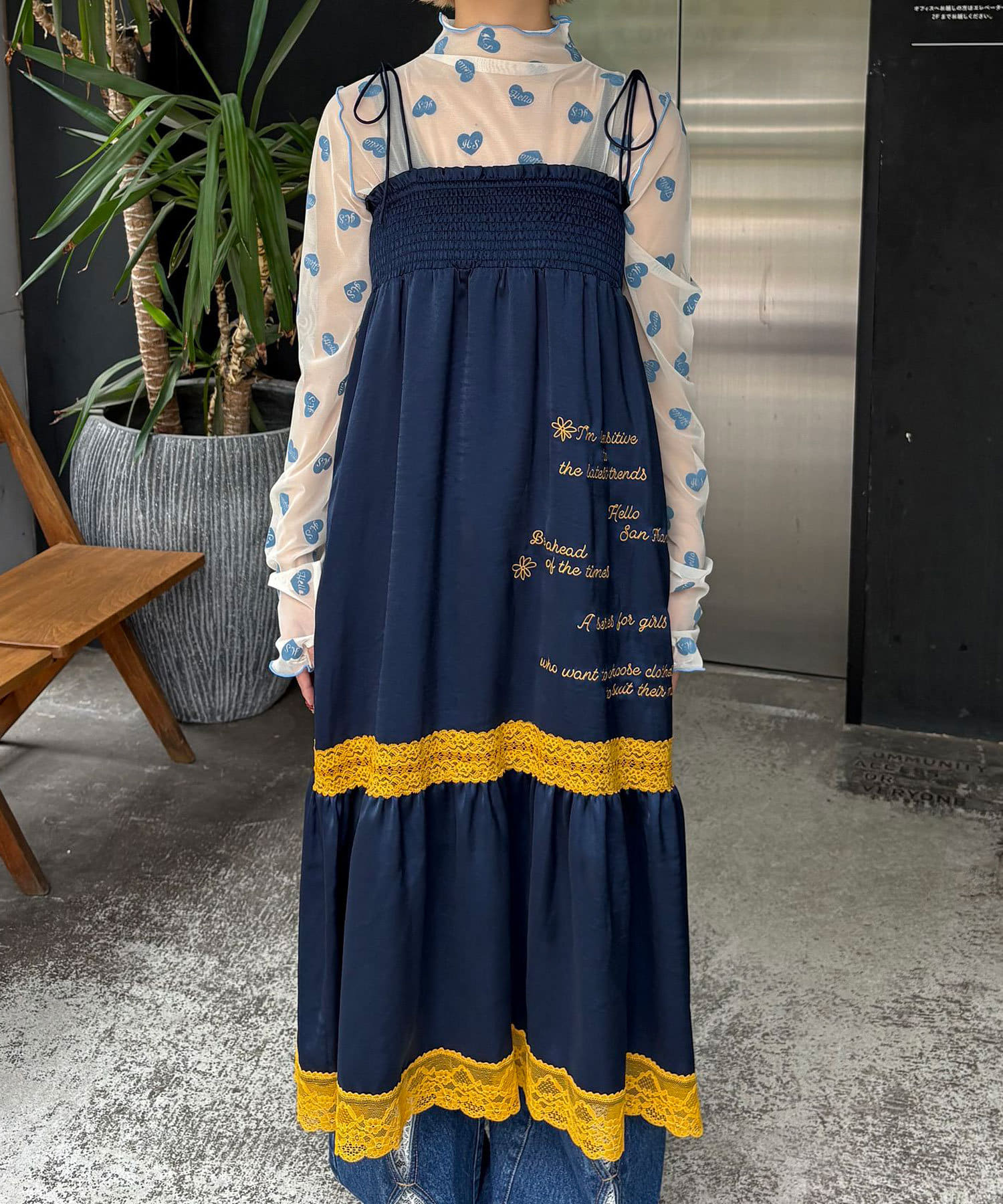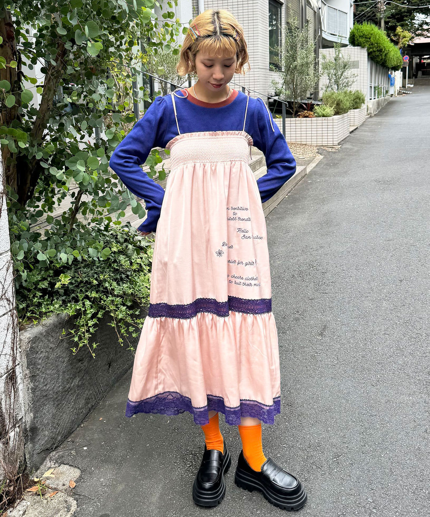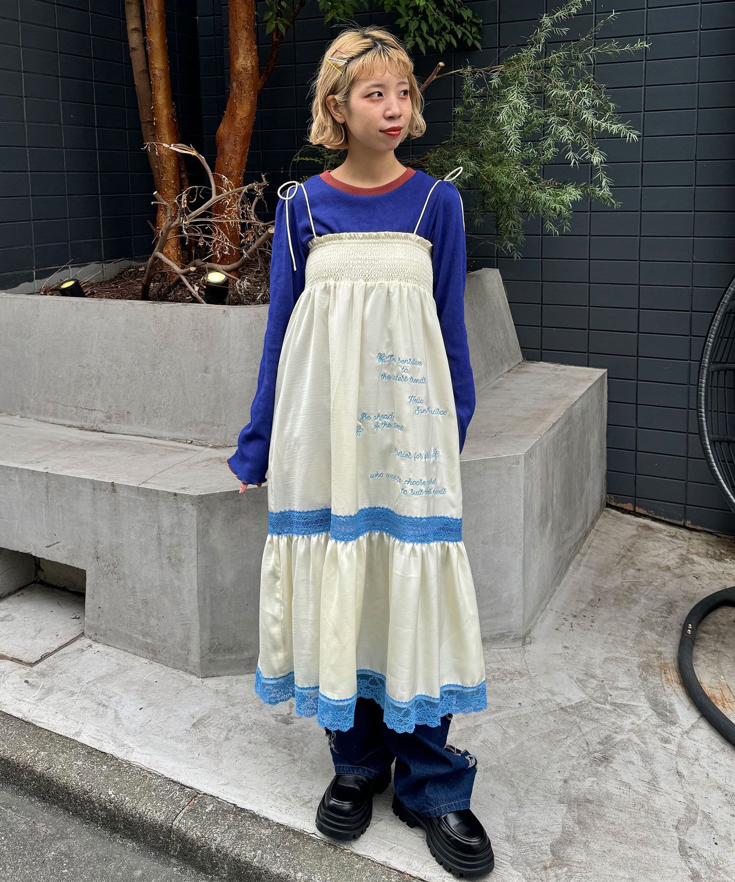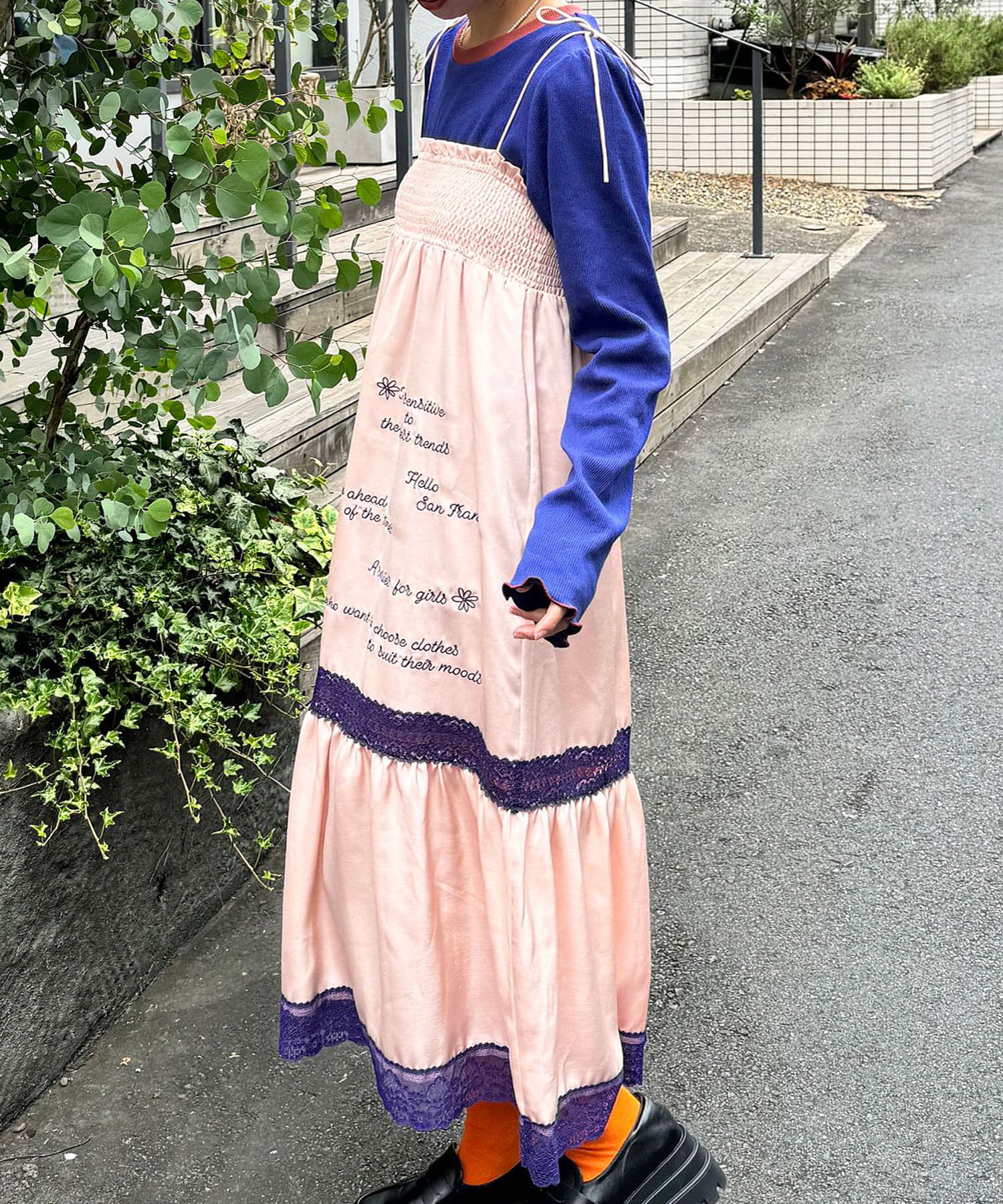 ウエストはシャーリングデザインで、スカートとしてもワンピースとしても着用できる2WAYデザインが魅力です。
