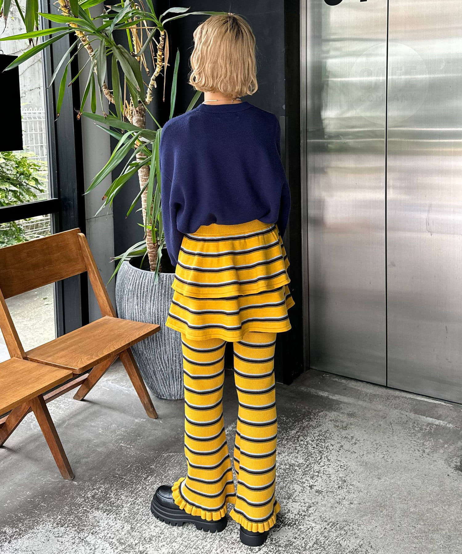 マルチボーダーニットフレアパンツ