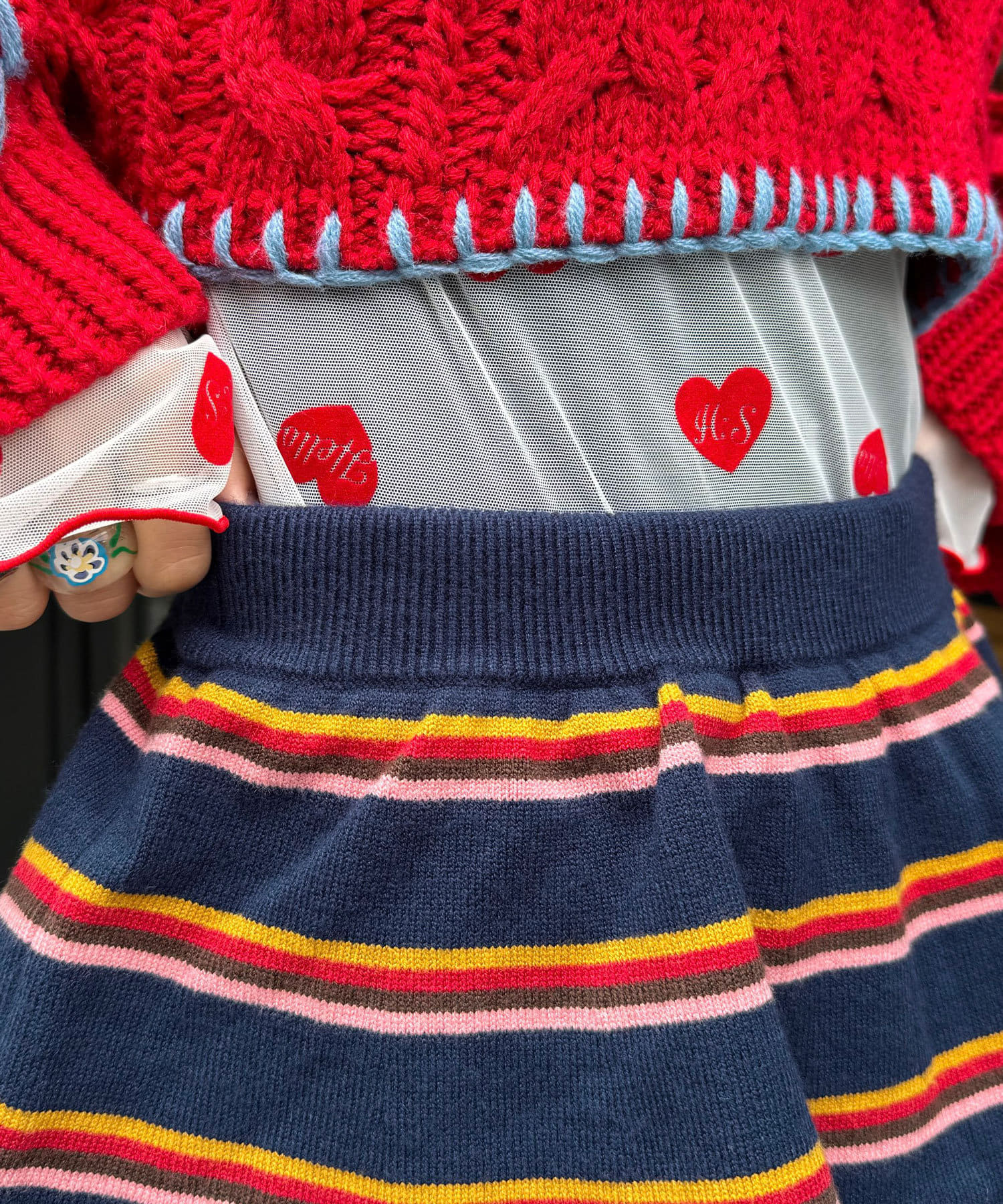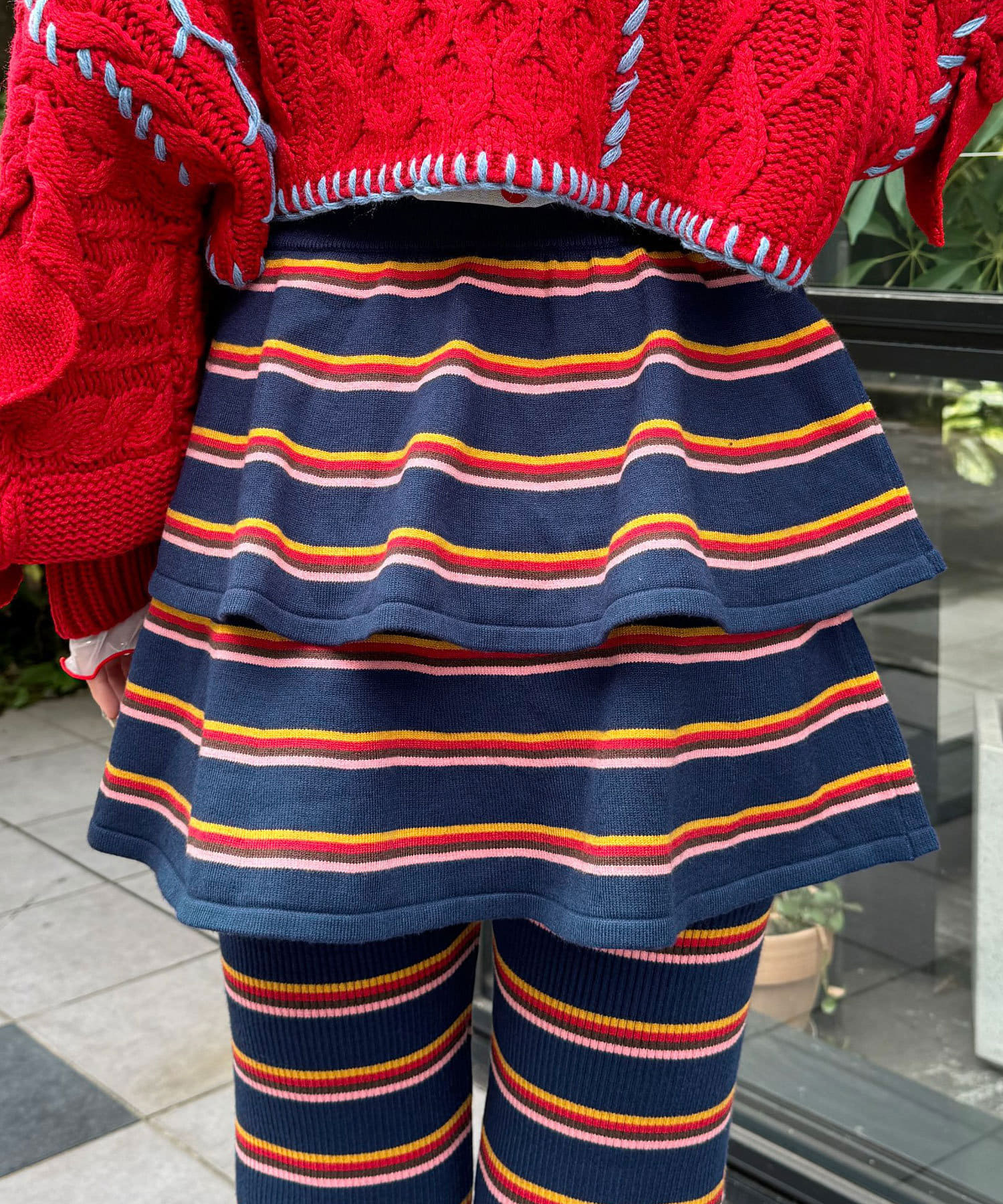 カラフルボーダーが目を惹くニットミニスカート