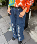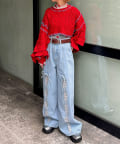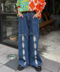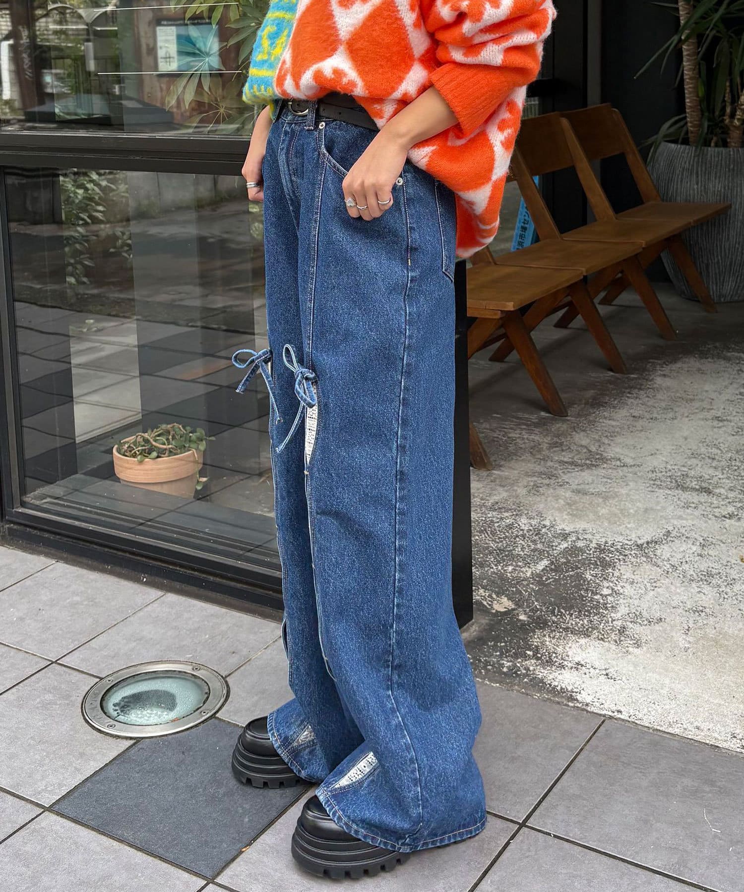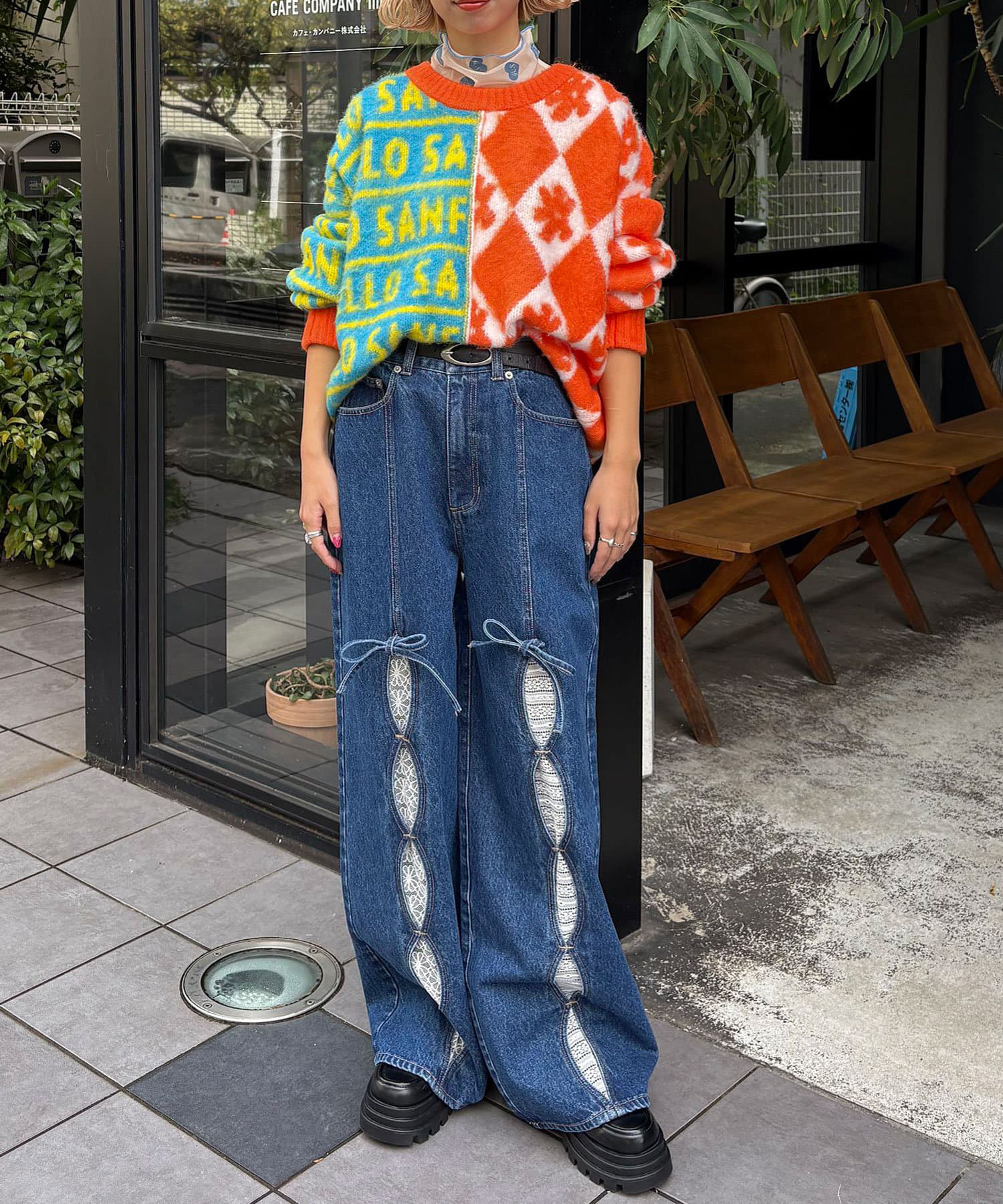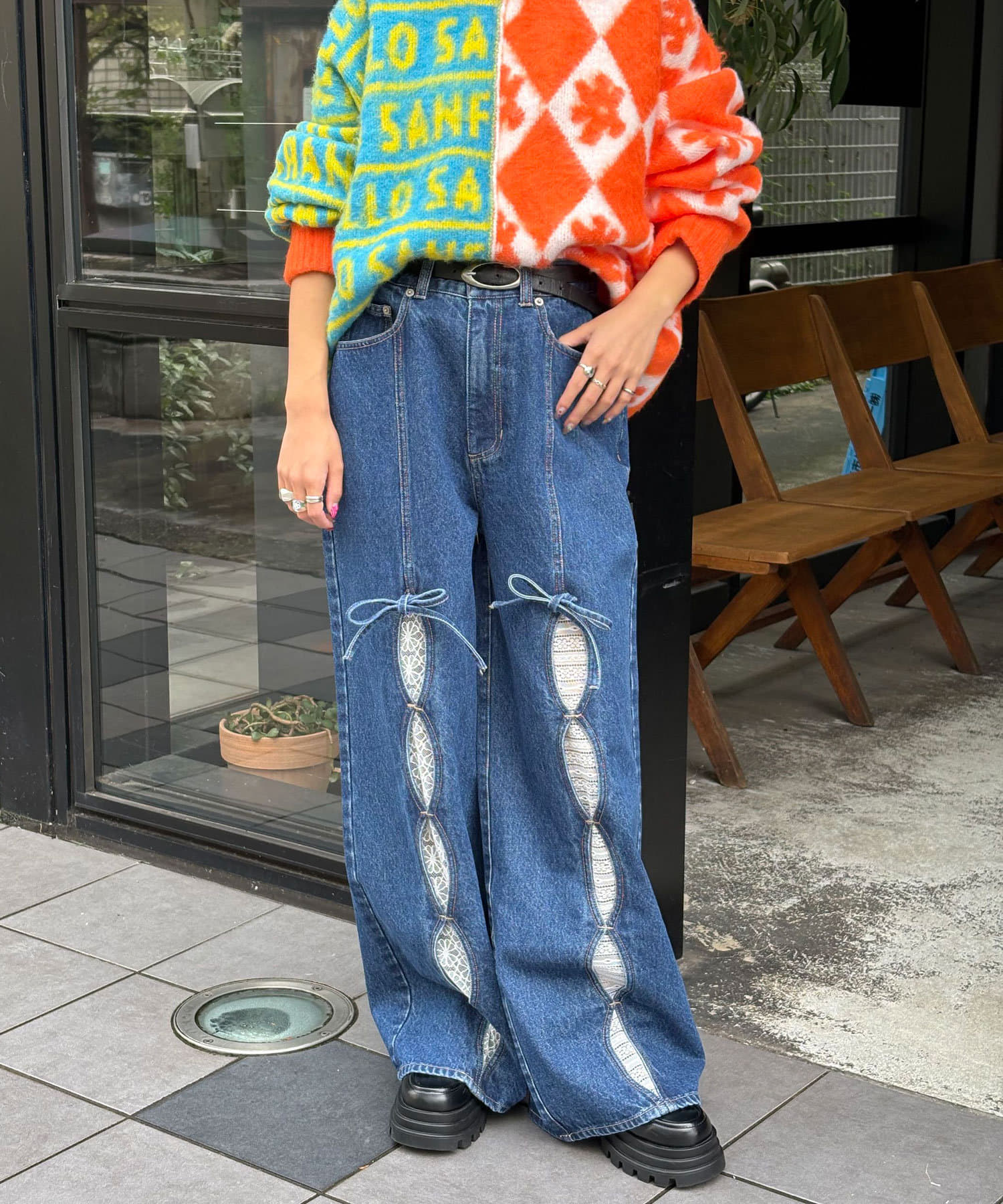 【HELLO.SANFRANCISCO/ハローサンフランシスコ】レースカットアウトワイドデニムパンツ