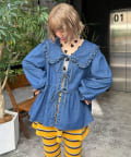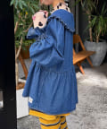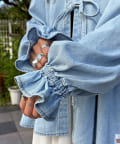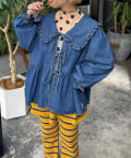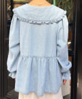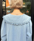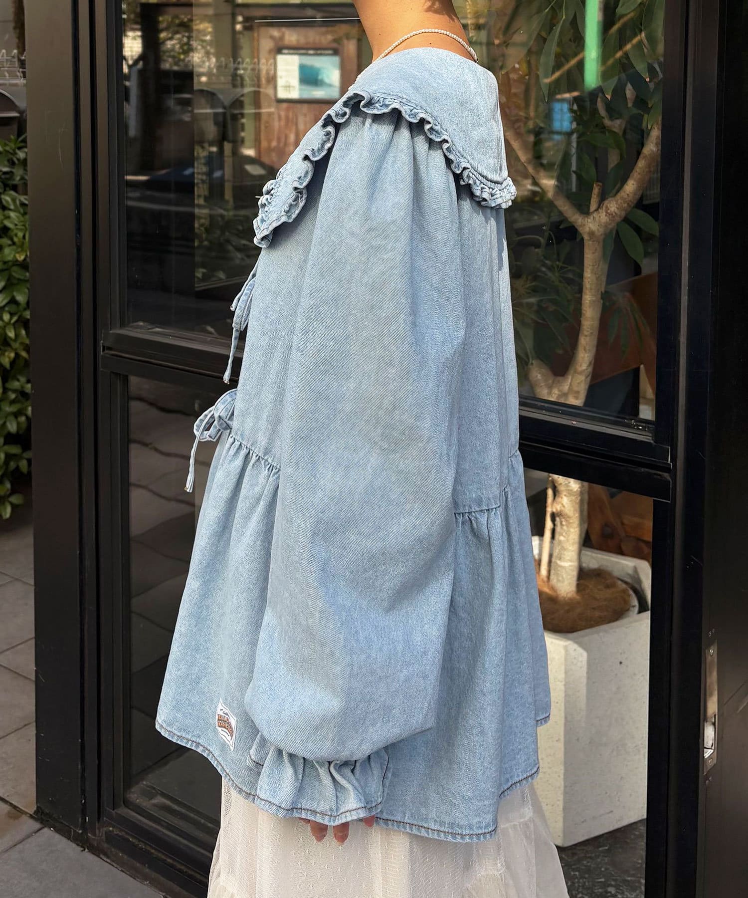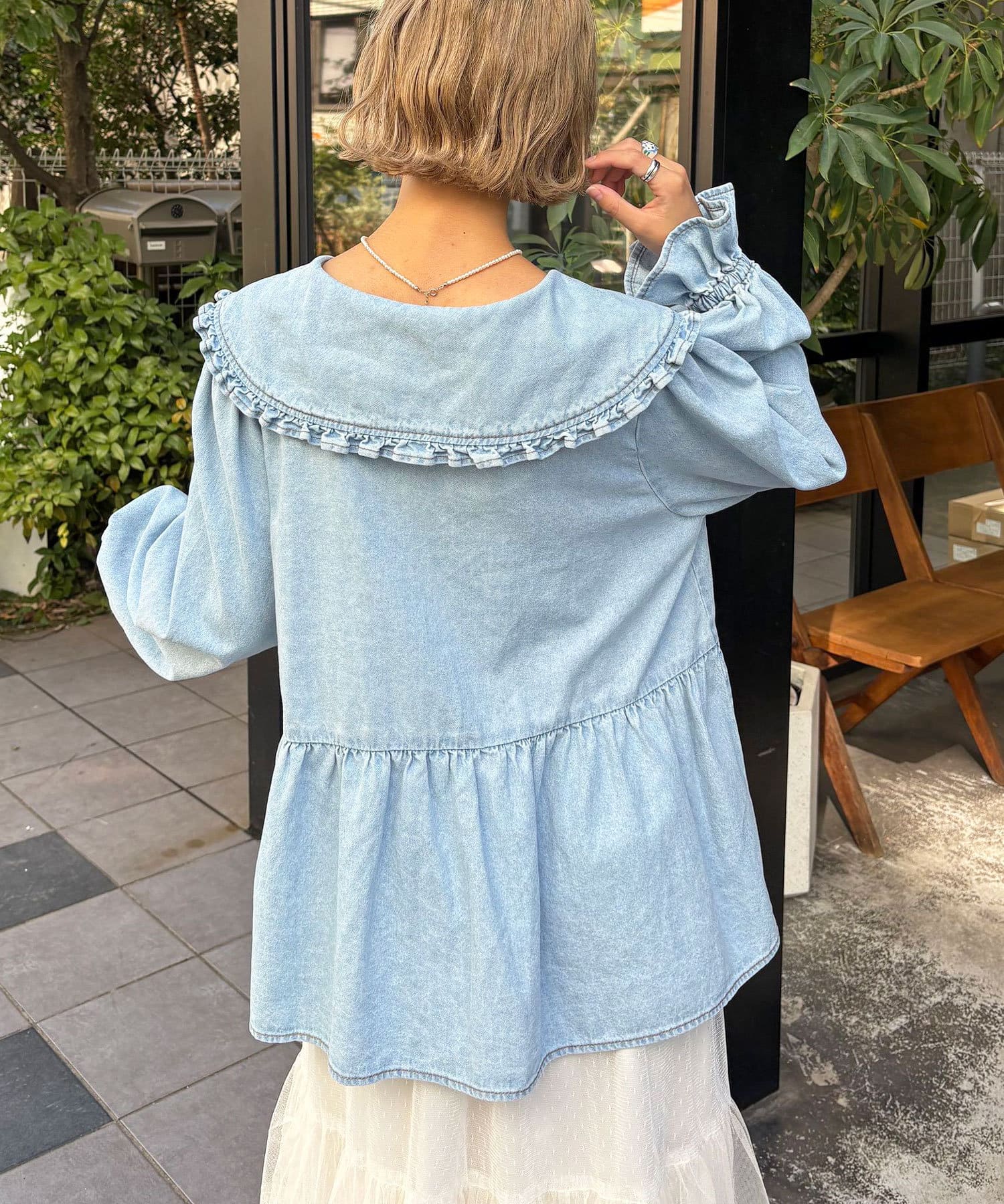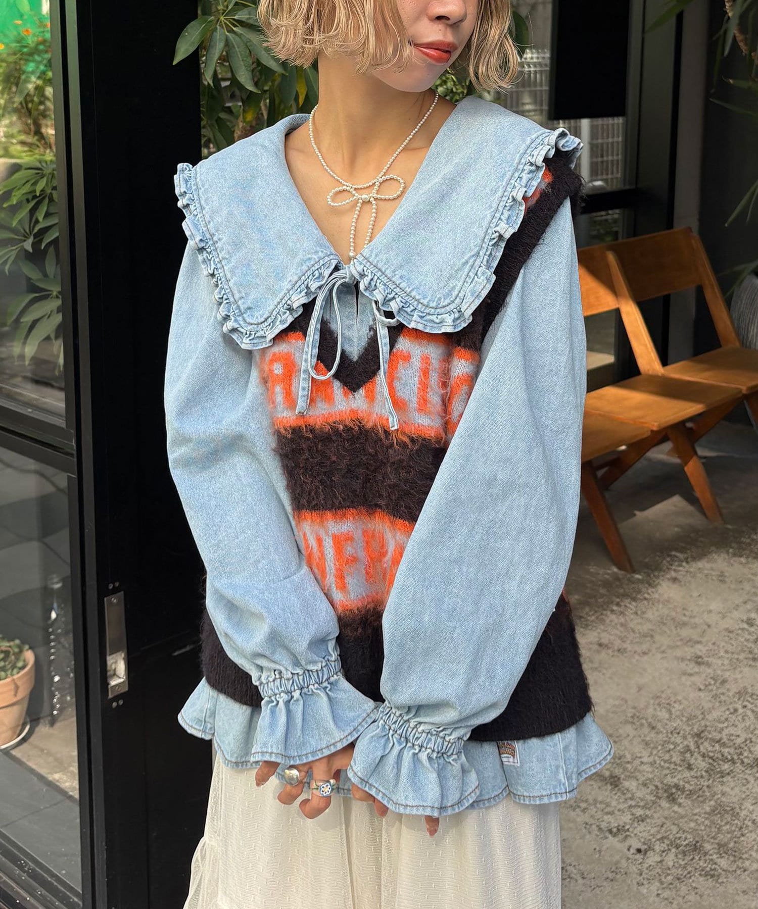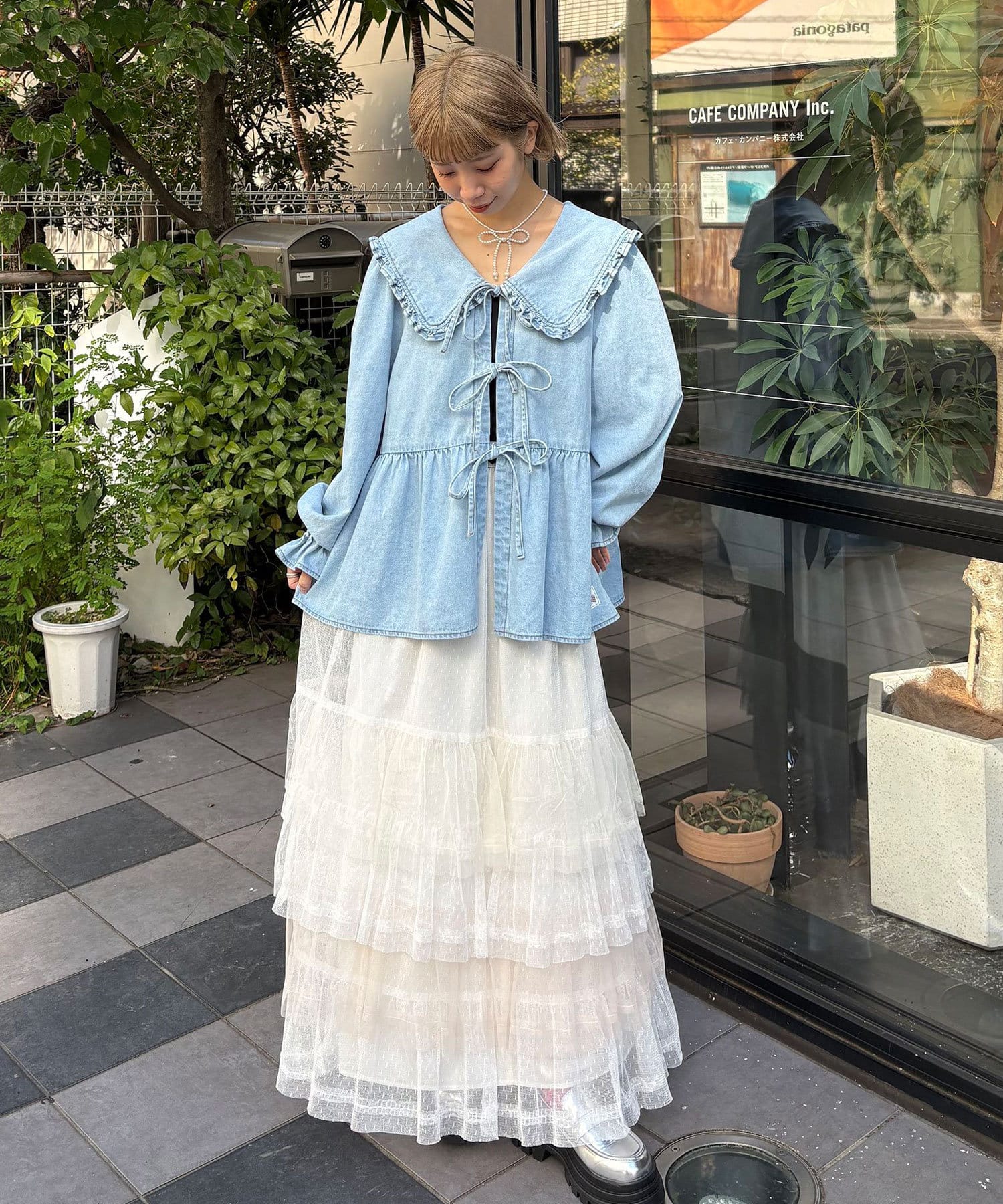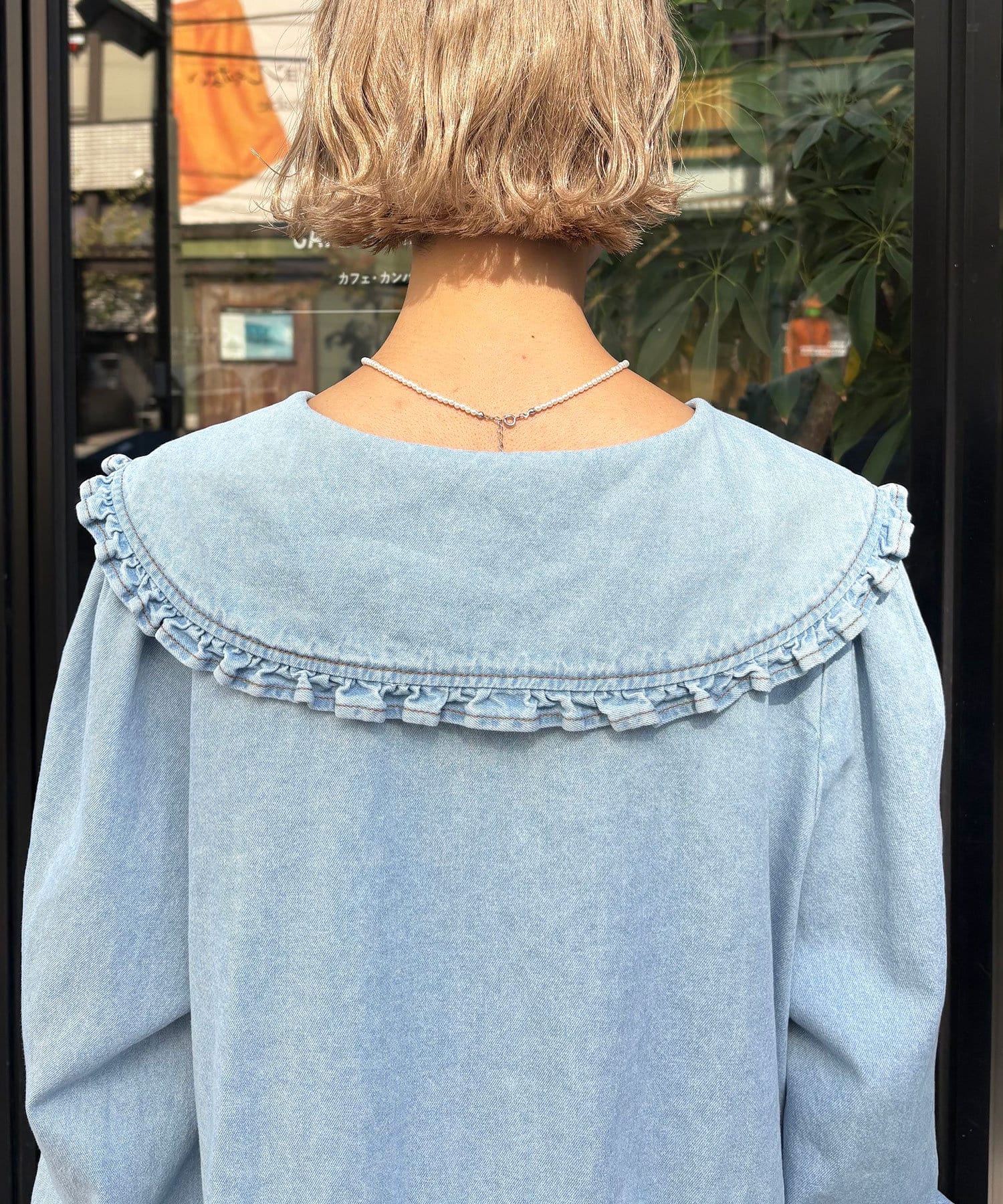 つけ襟風デザインが可愛いリボンデニムシャツ