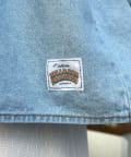 パっと目を惹くビックカラーデザインが魅力のデニムシャツ。
