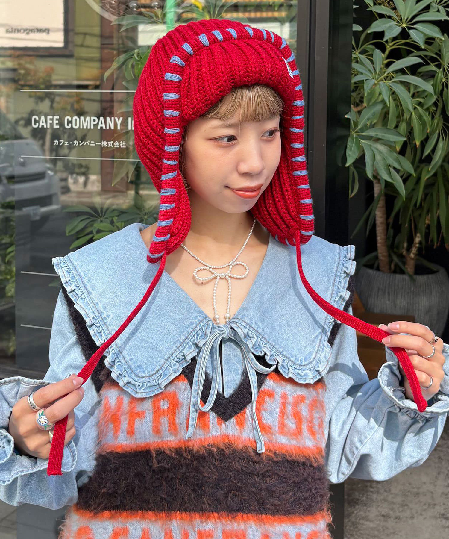 鮮やかなカラーリングとハンドステッチが個性的なフライトキャップ