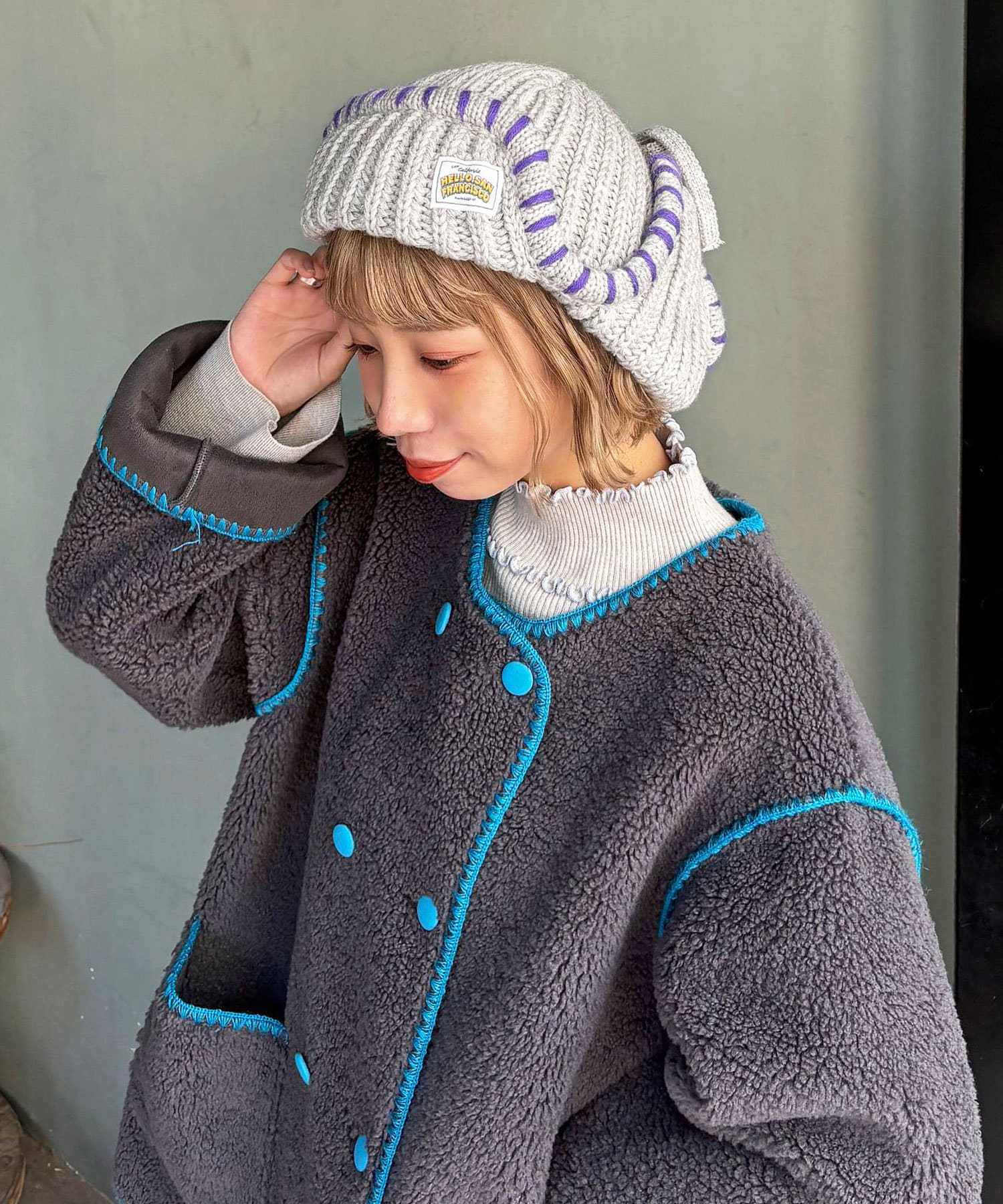 両畔編みのデザインが立体感を生み出し、ふわふわした柔らかな印象に◎