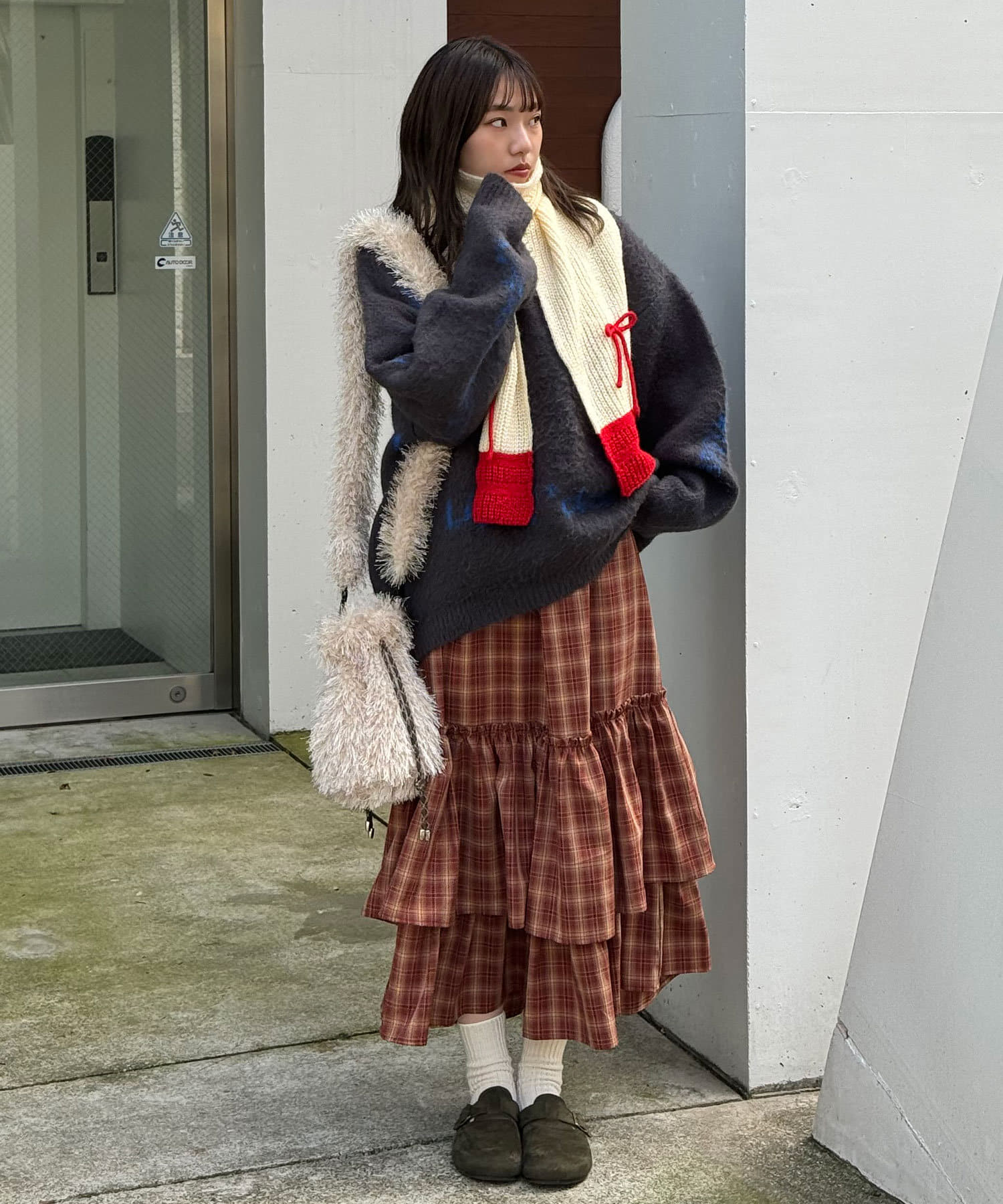 大判なマフラーなので巻き方のアレンジも楽しめます。