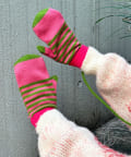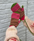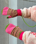 しっかりと手を包んで暖かさをキープするボーダー柄の手袋。