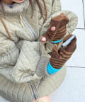 親指・人差し指が指空き仕様なので、ミトンを外さずにスマホ操作が可能です。