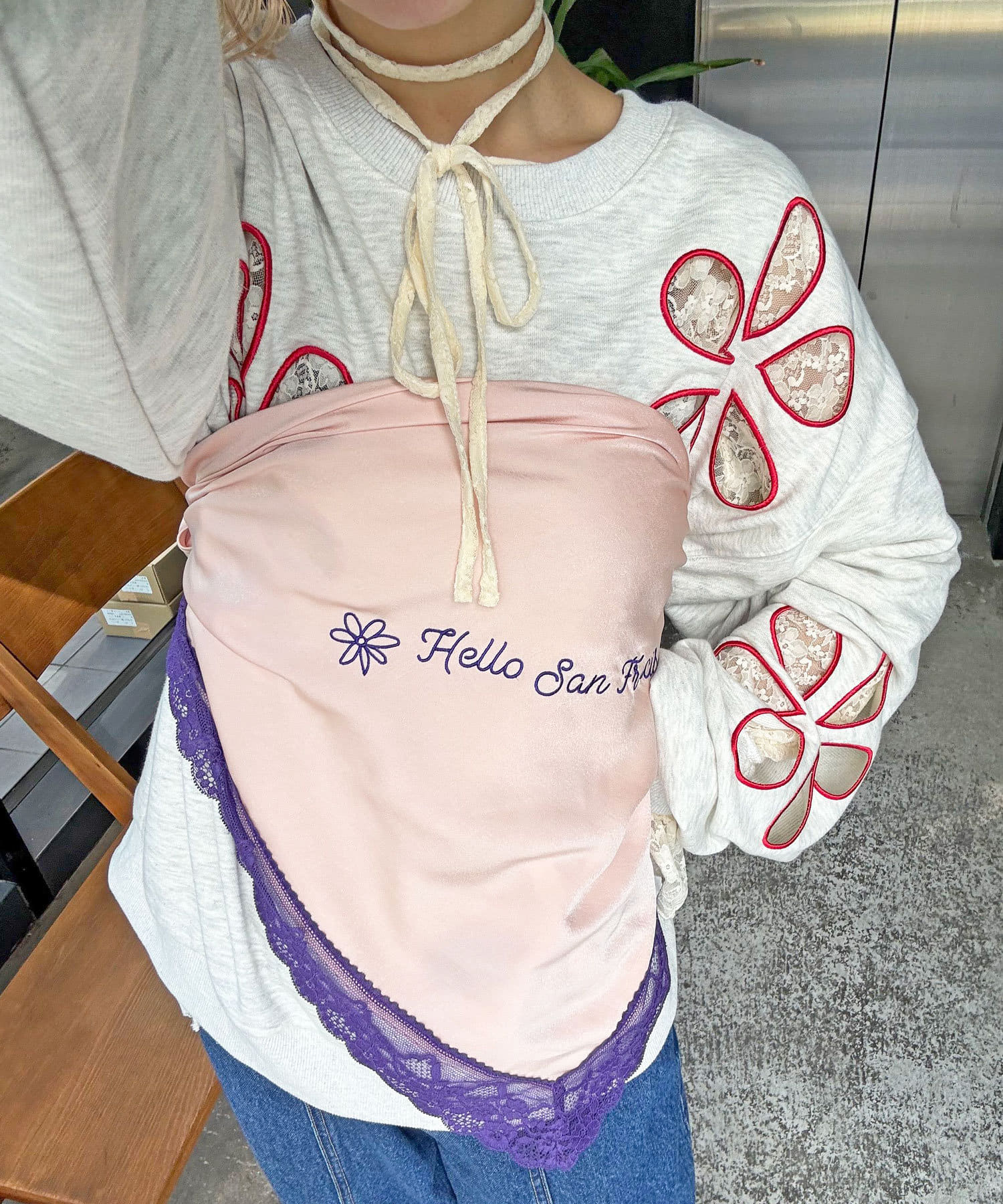 【HELLO.SANFRANCISCO/ハローサンフランシスコ】刺繍レーススカーフ