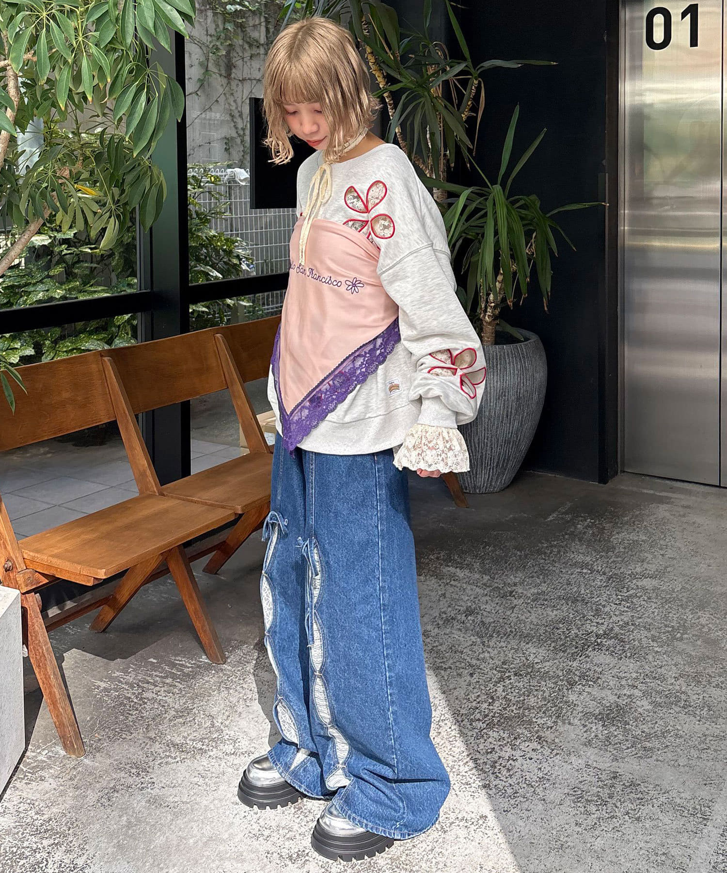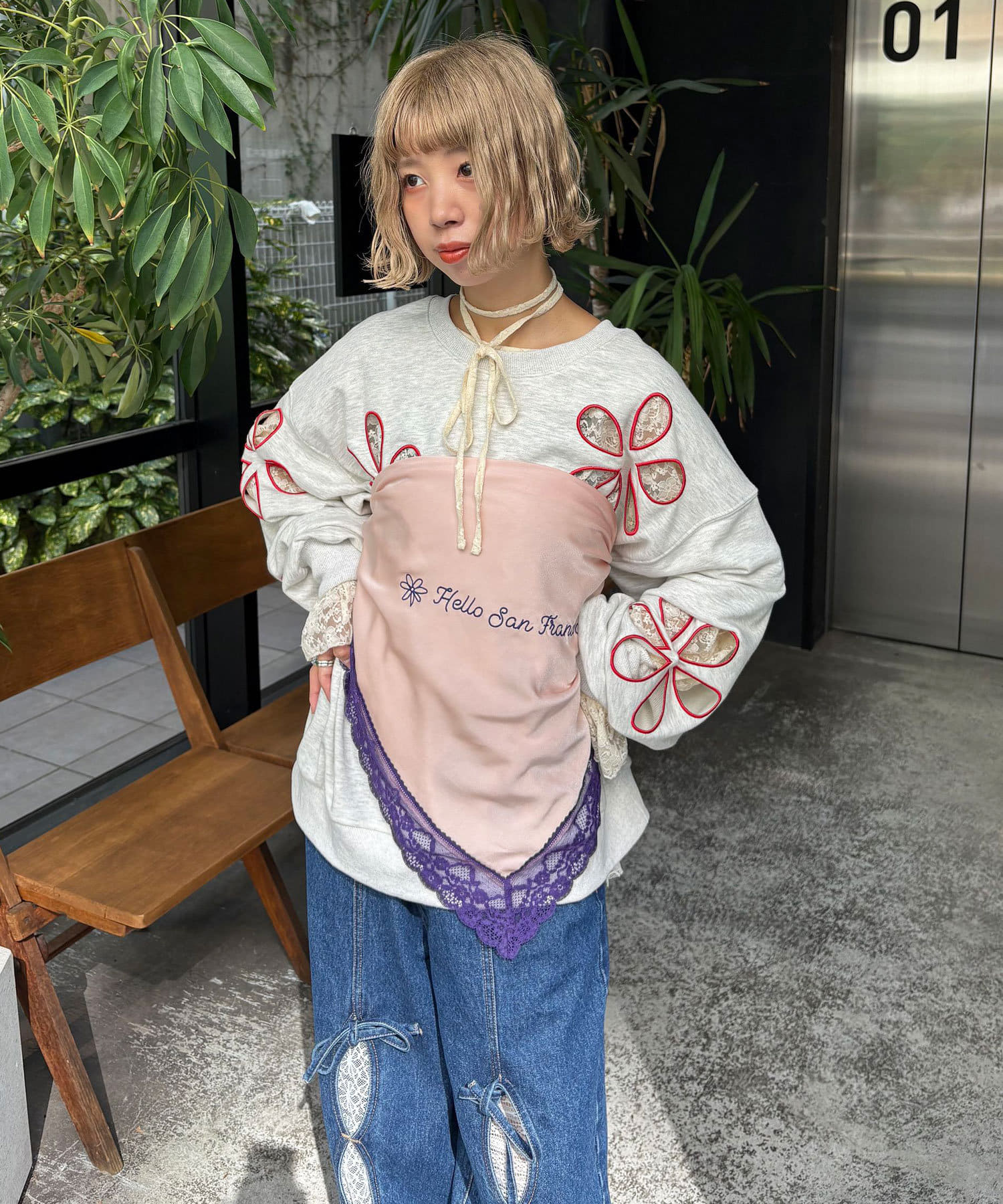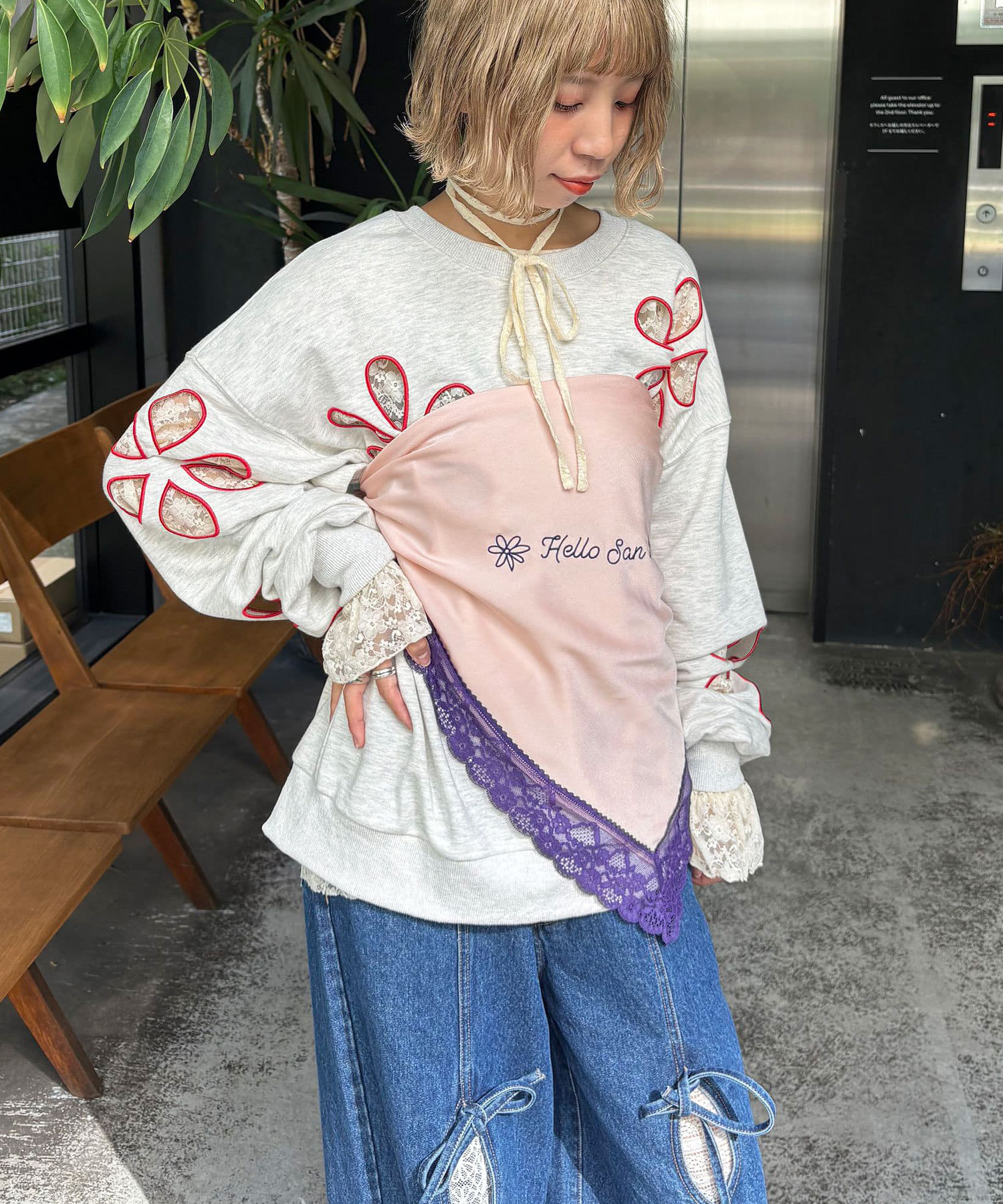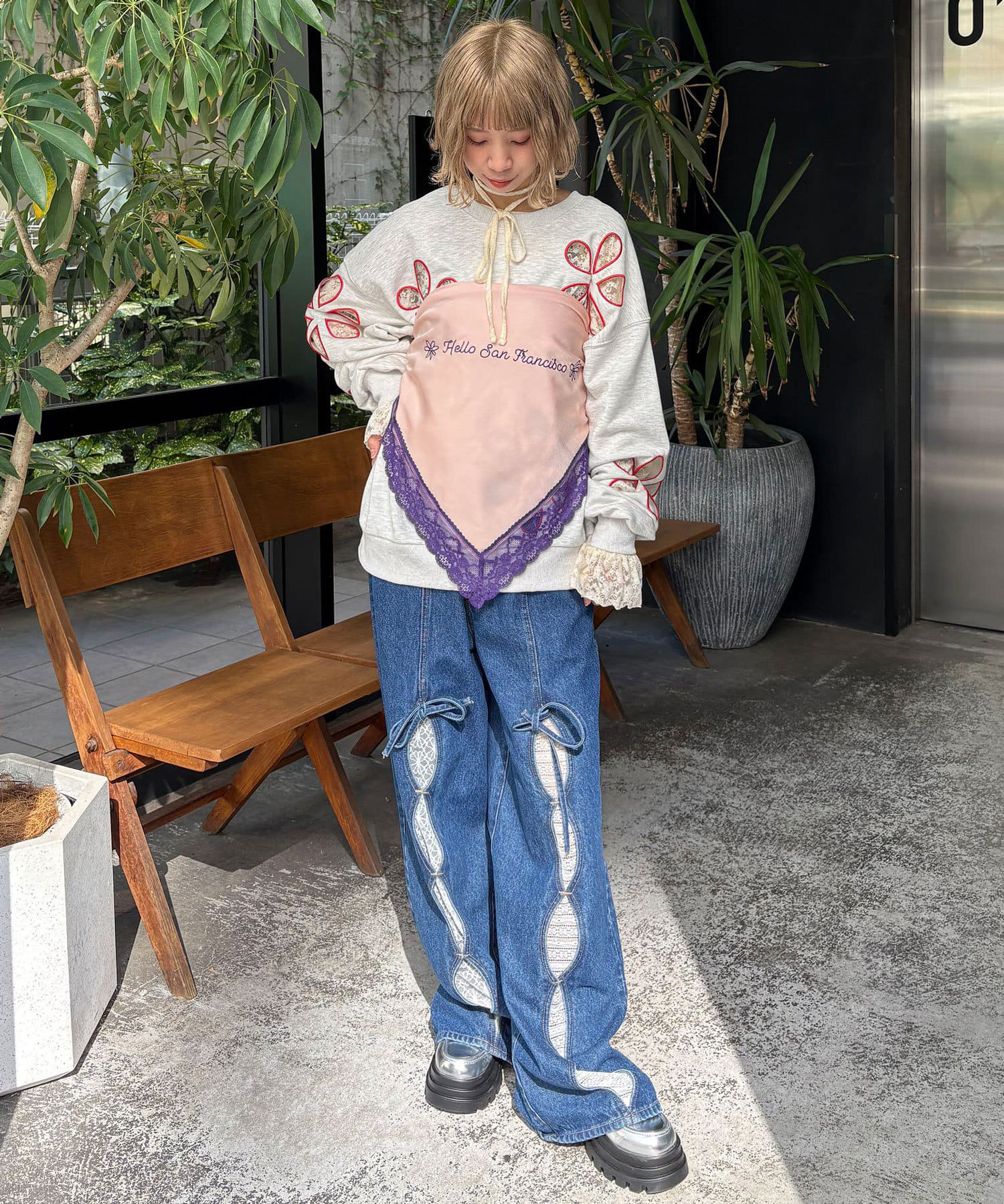 カラーレースとオリジナルの刺繍が目を惹くハロサンらしいデザインです。