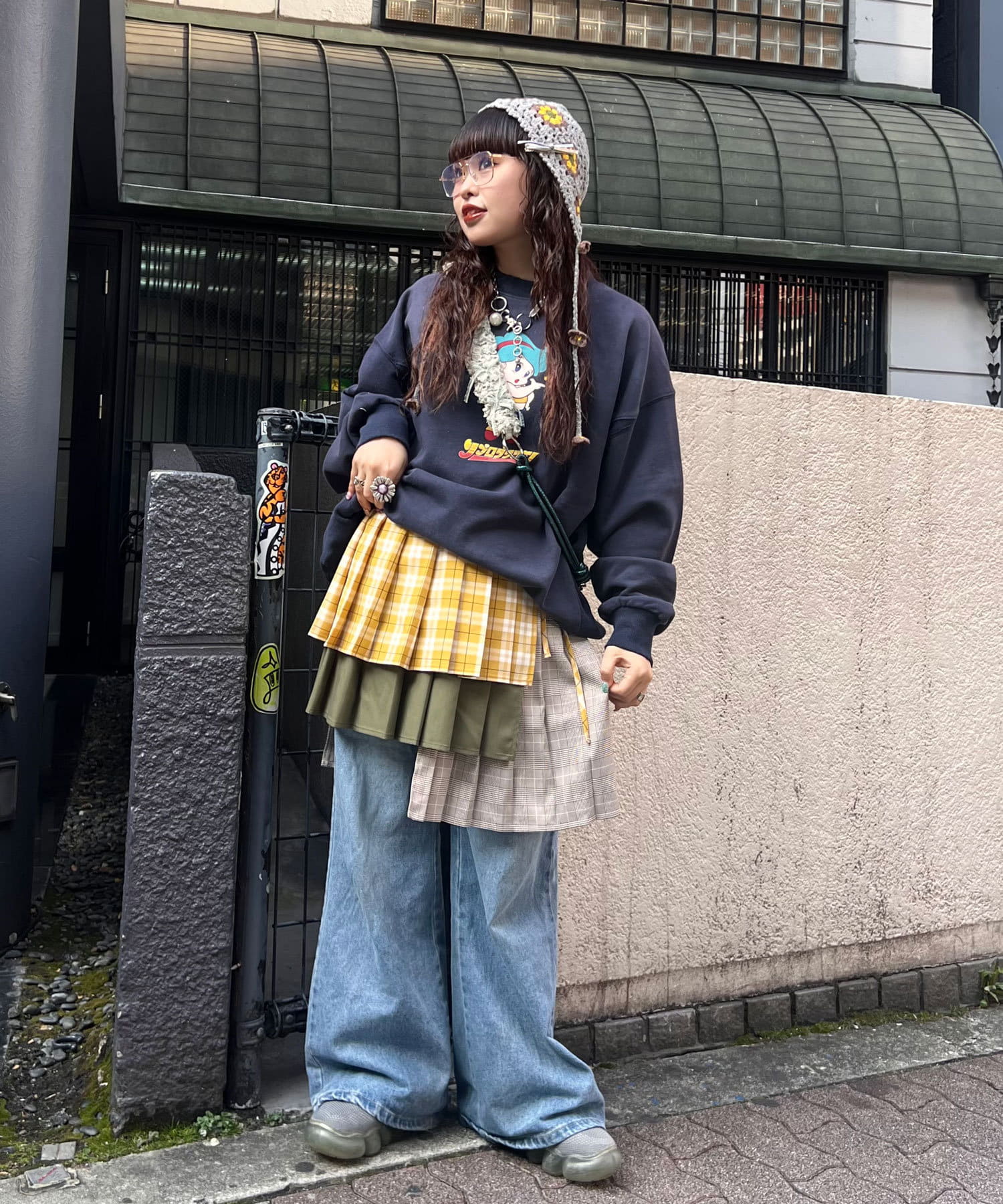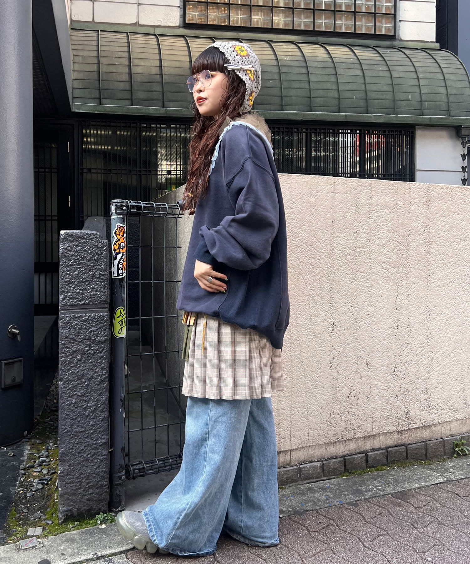 デニムやラインパンツなどボトムスとのレイヤードコーデがおすすめです。