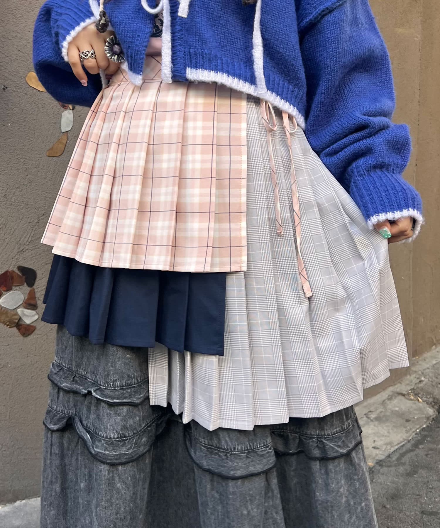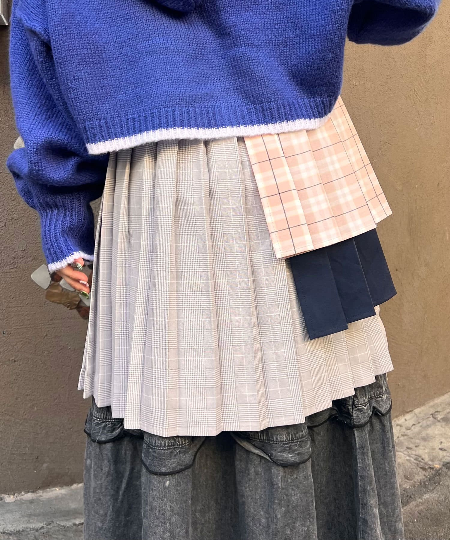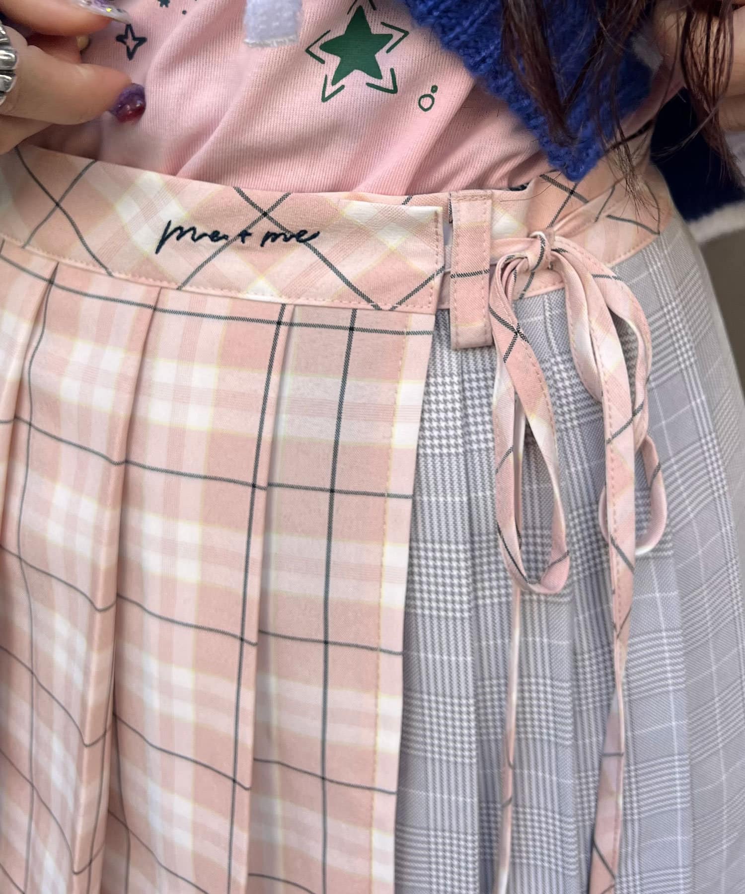 【Me+Me/ミープラスミー】 アシンメトリーチェック柄プリーツ巻きスカート