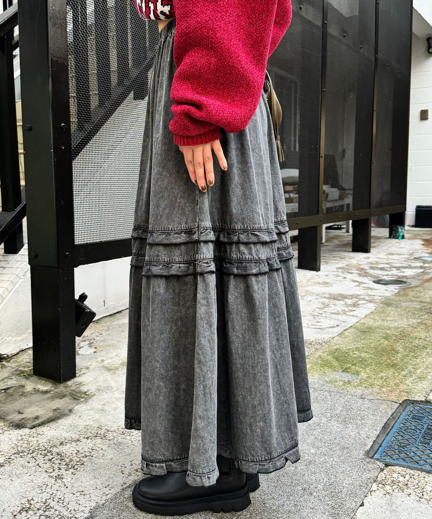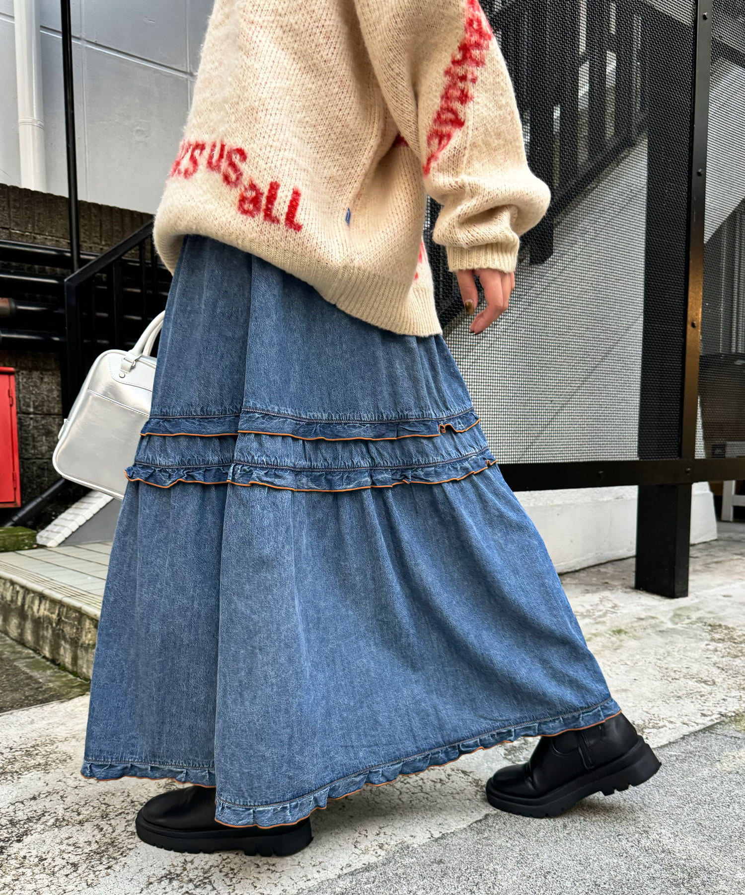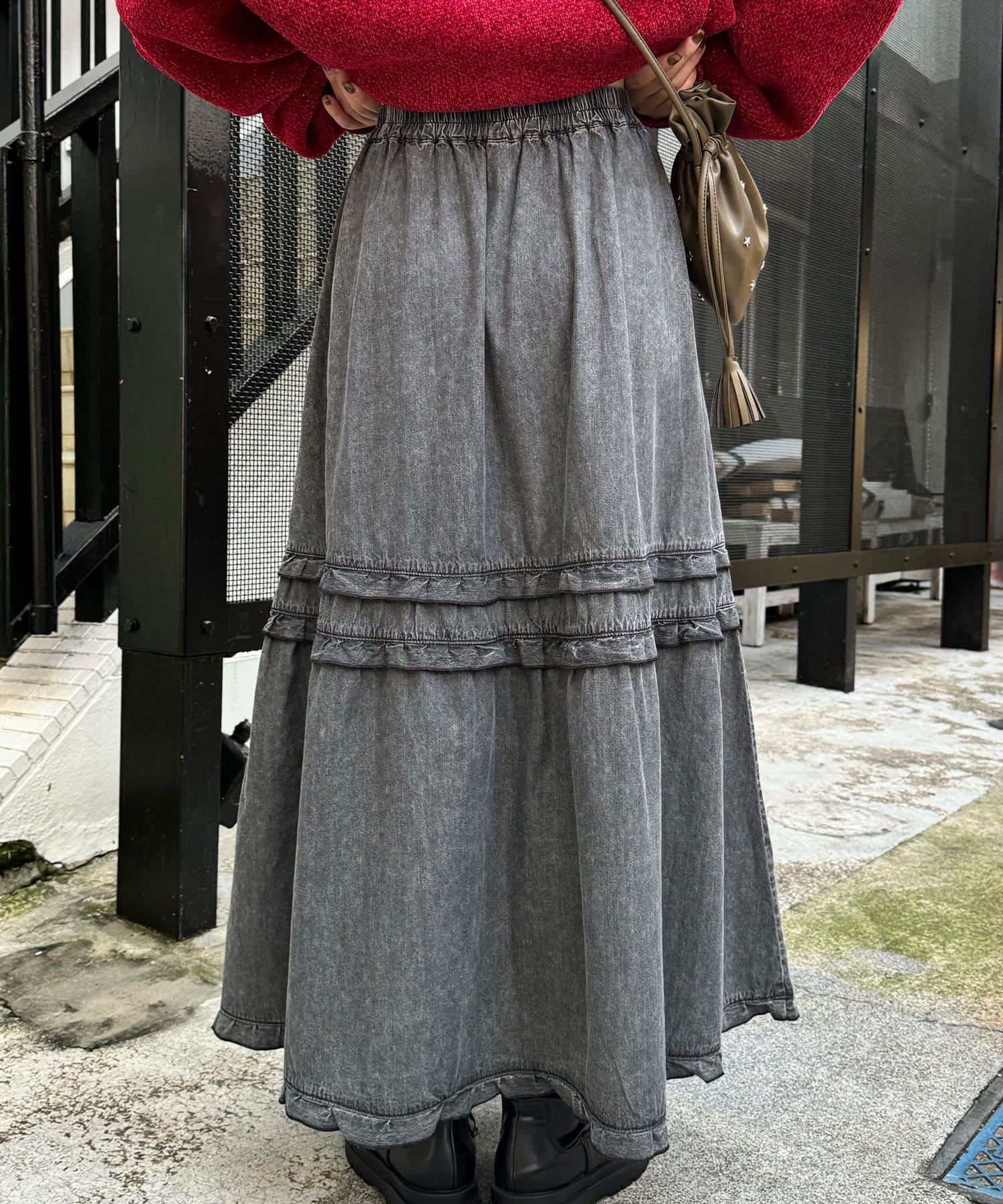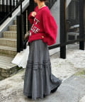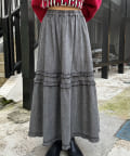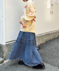ビンテージライク加工デニムティアードスカート